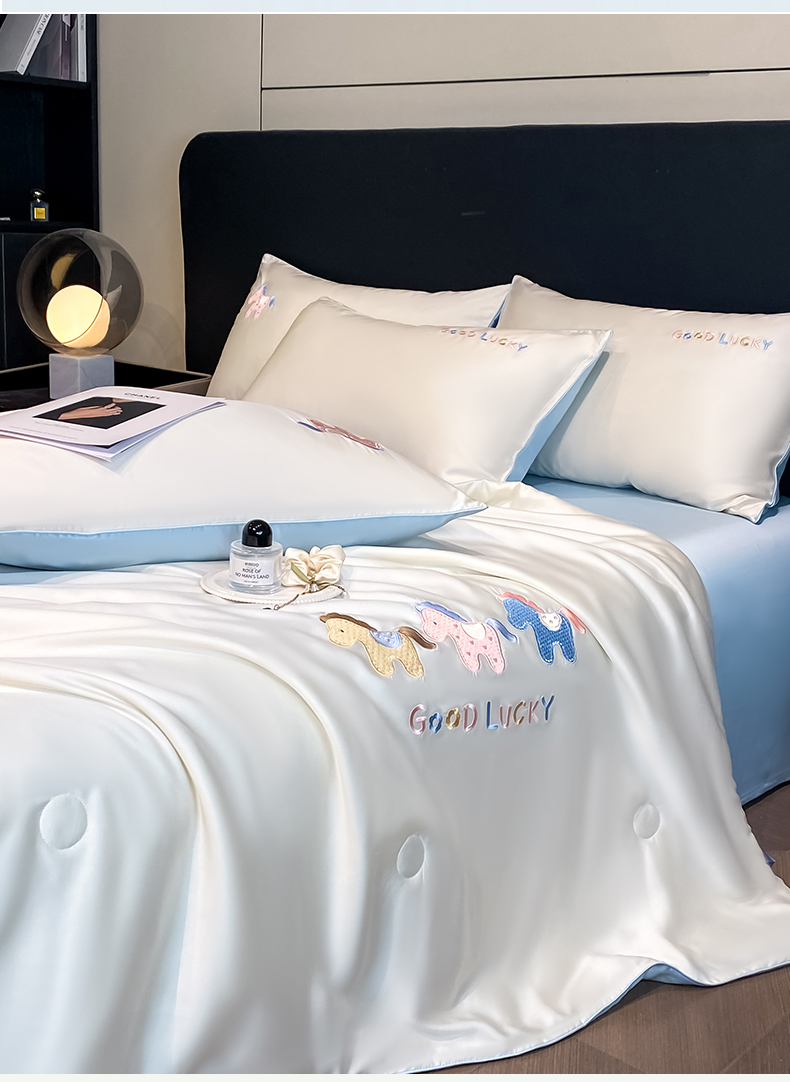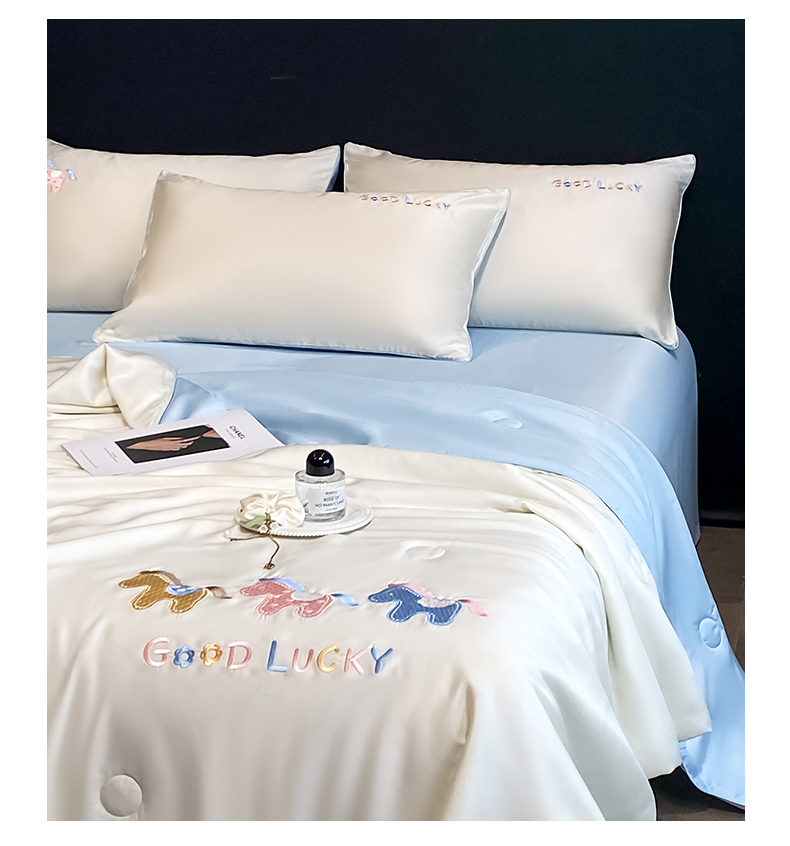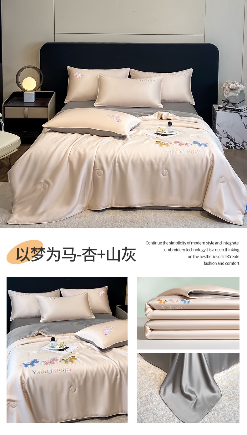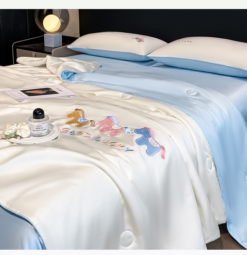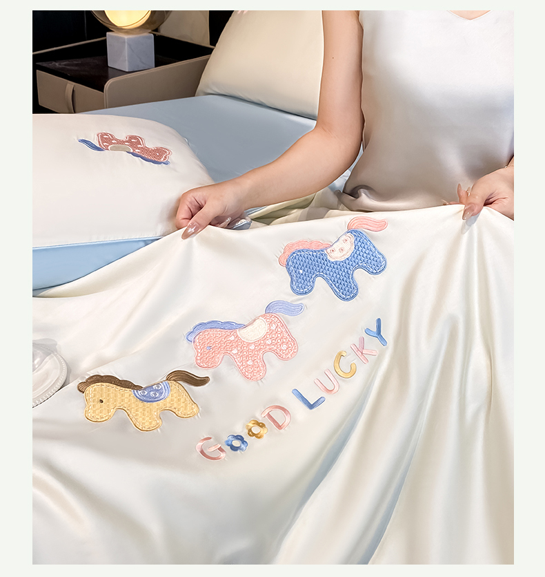 【品牌直发】加倍生活 A类水洗仿真丝刺绣小马元素刺绣夏被四件套-以梦为马系列 8色可选