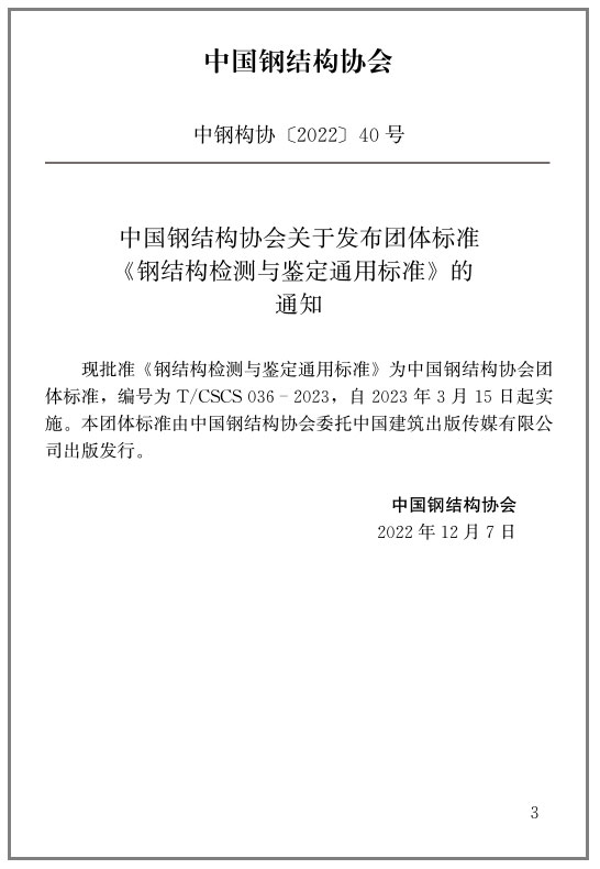 书名:钢结构检测与鉴定通用标准T/CSCS 036-2023