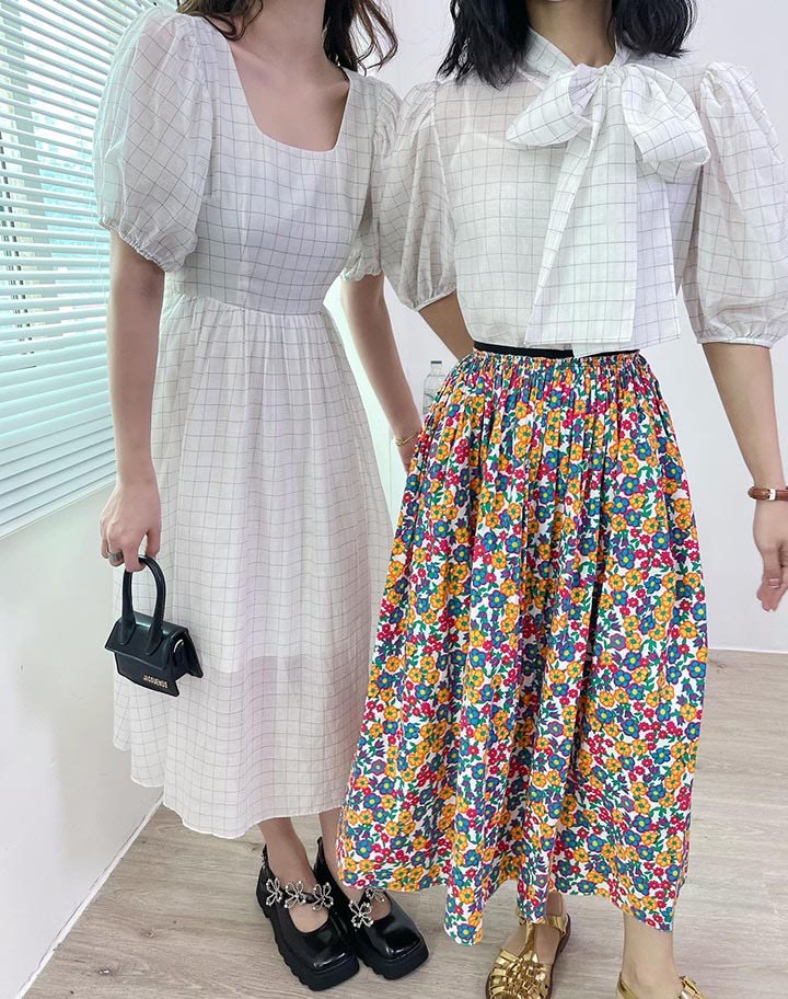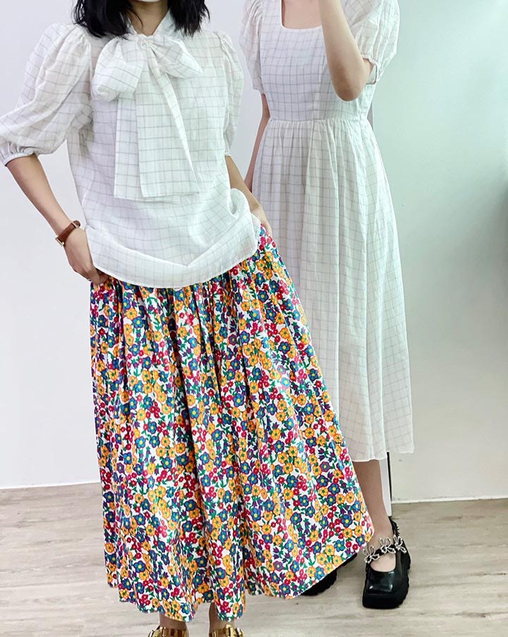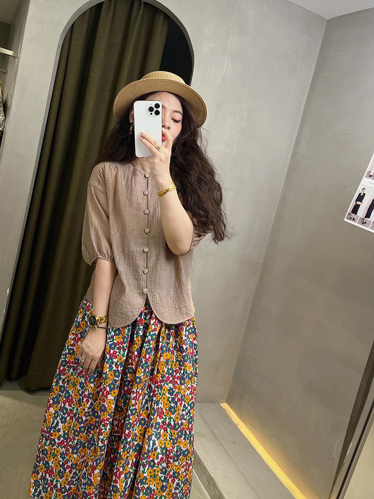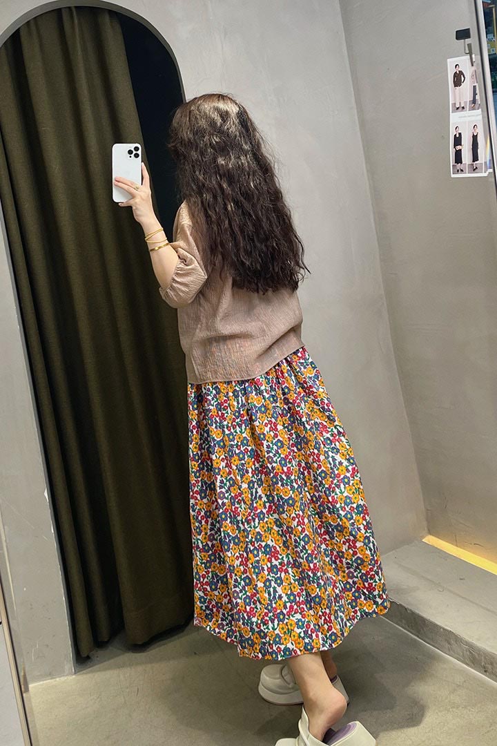 洛诗琳45540气质压褶半身裙2025夏季新款碎花A字摆印花裙3156