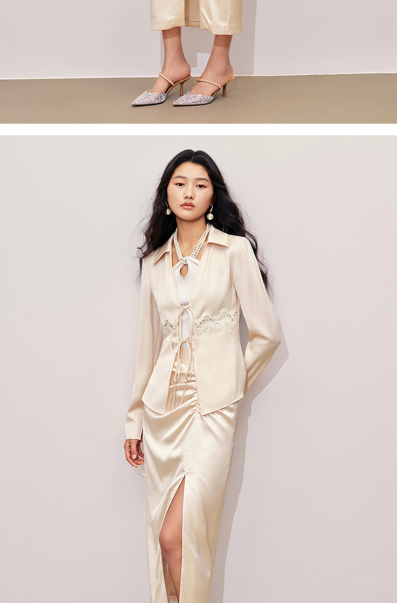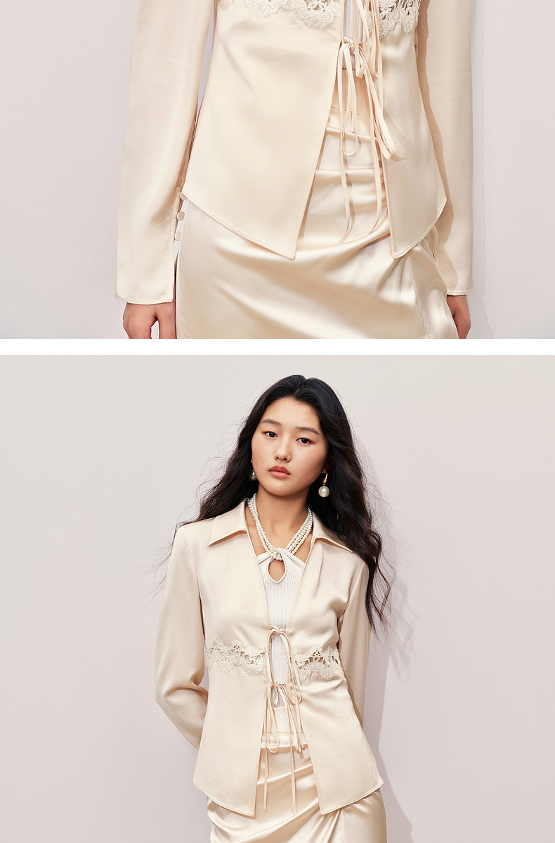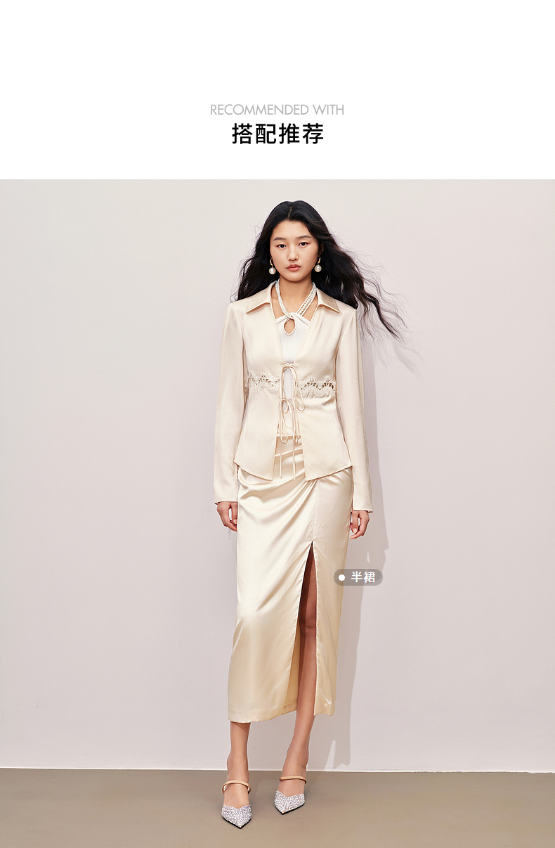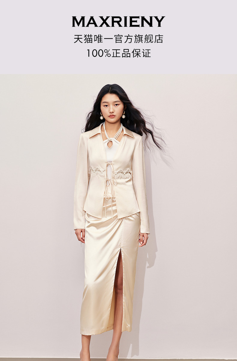 玛克门店发货:MAXRIENY浪漫都市风醋酸外套蕾丝装饰系带24秋冬新款(货号:MC85JA282)