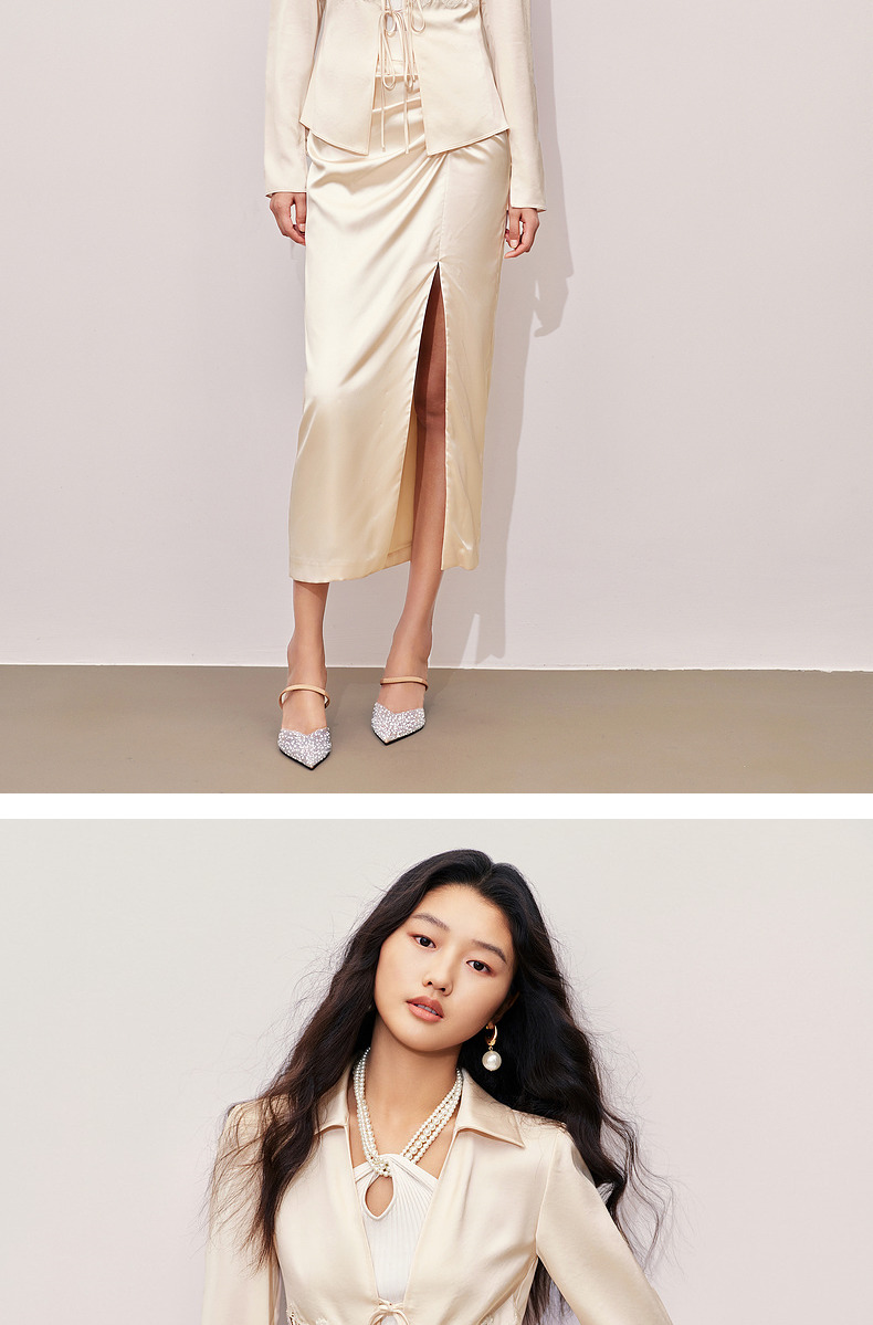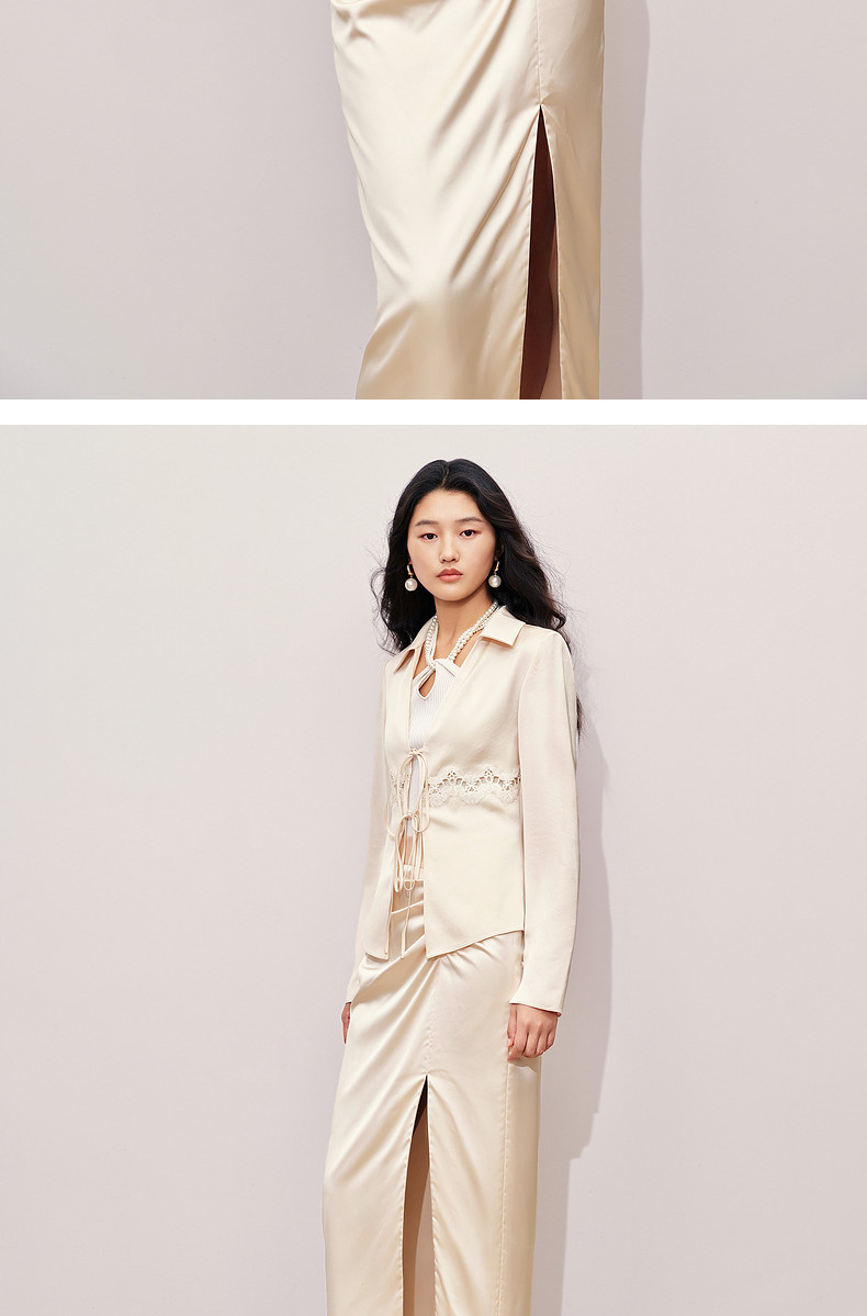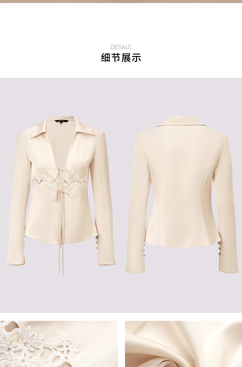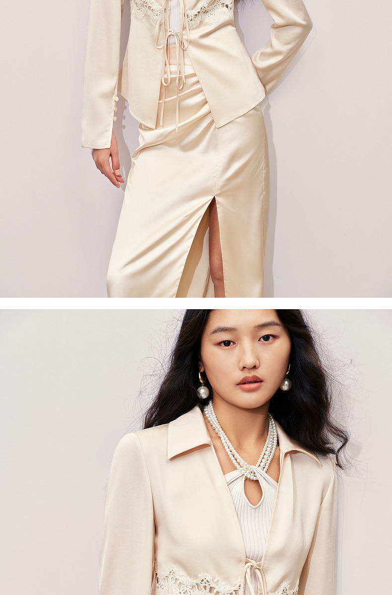 玛克门店发货:MAXRIENY浪漫都市风醋酸外套蕾丝装饰系带24秋冬新款(货号:MC85JA282)
