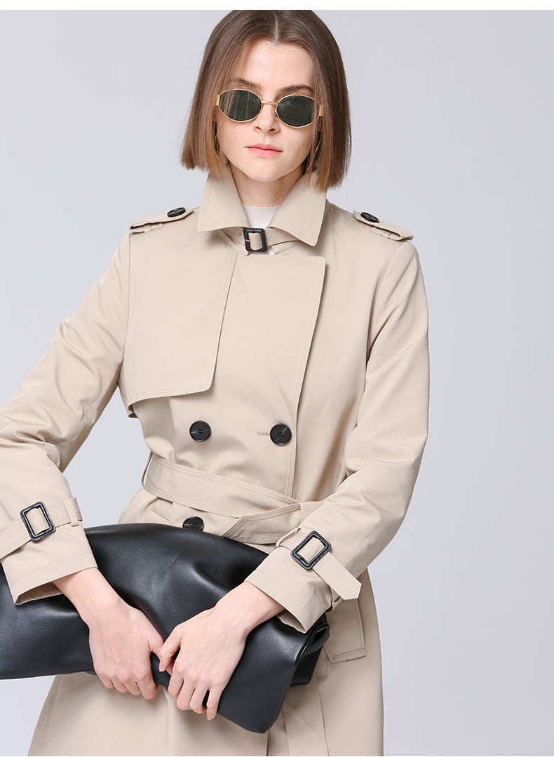 VIMAGE纬漫纪女装秋款经典翻领收腰中长款风衣女时尚外套V1404005DC
