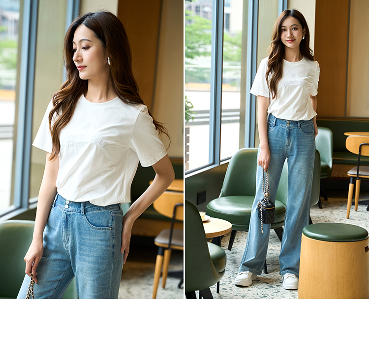 VIMAGE纬漫纪夏季新款纯色时尚修身微喇裤九分裤休闲裤裤子女V905513
