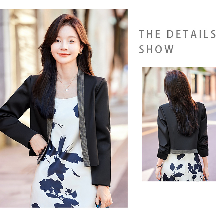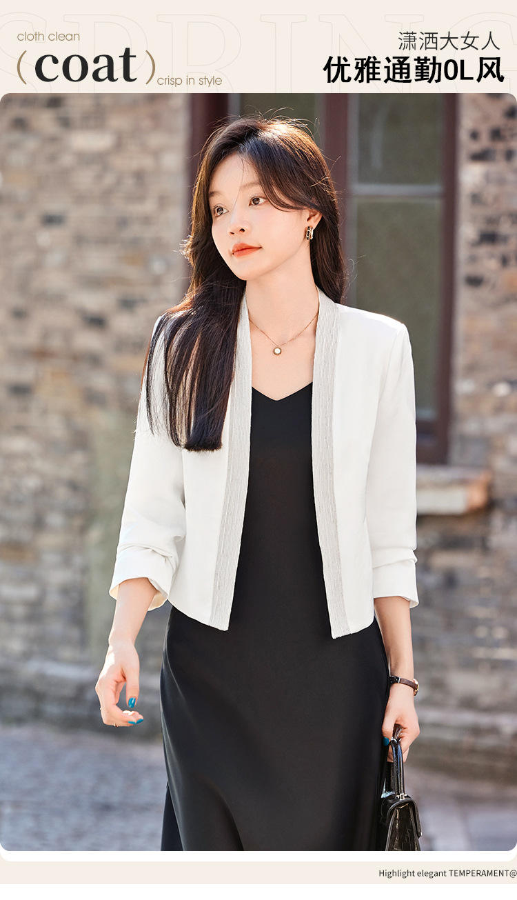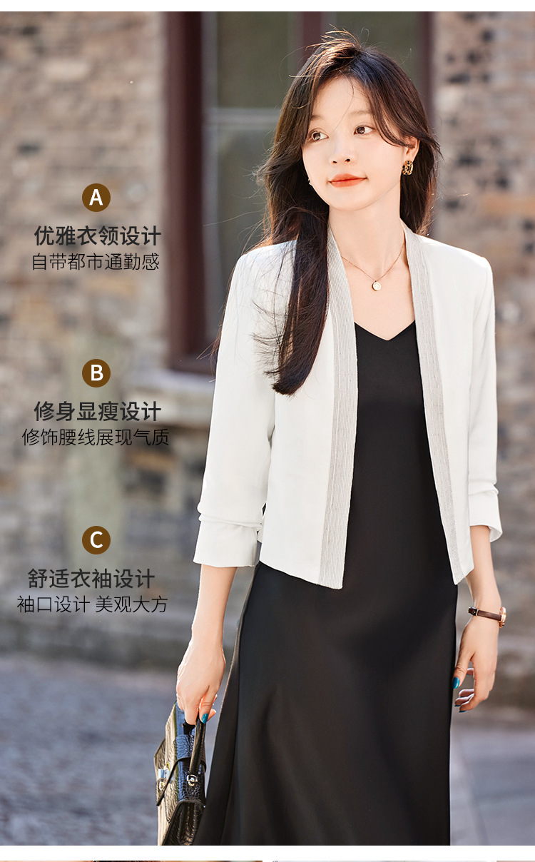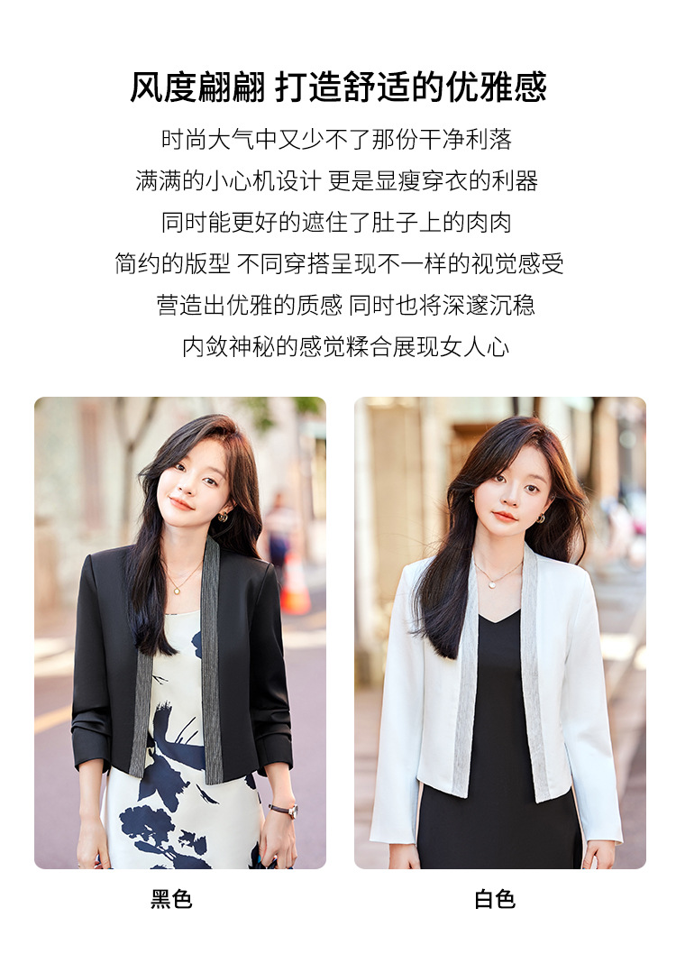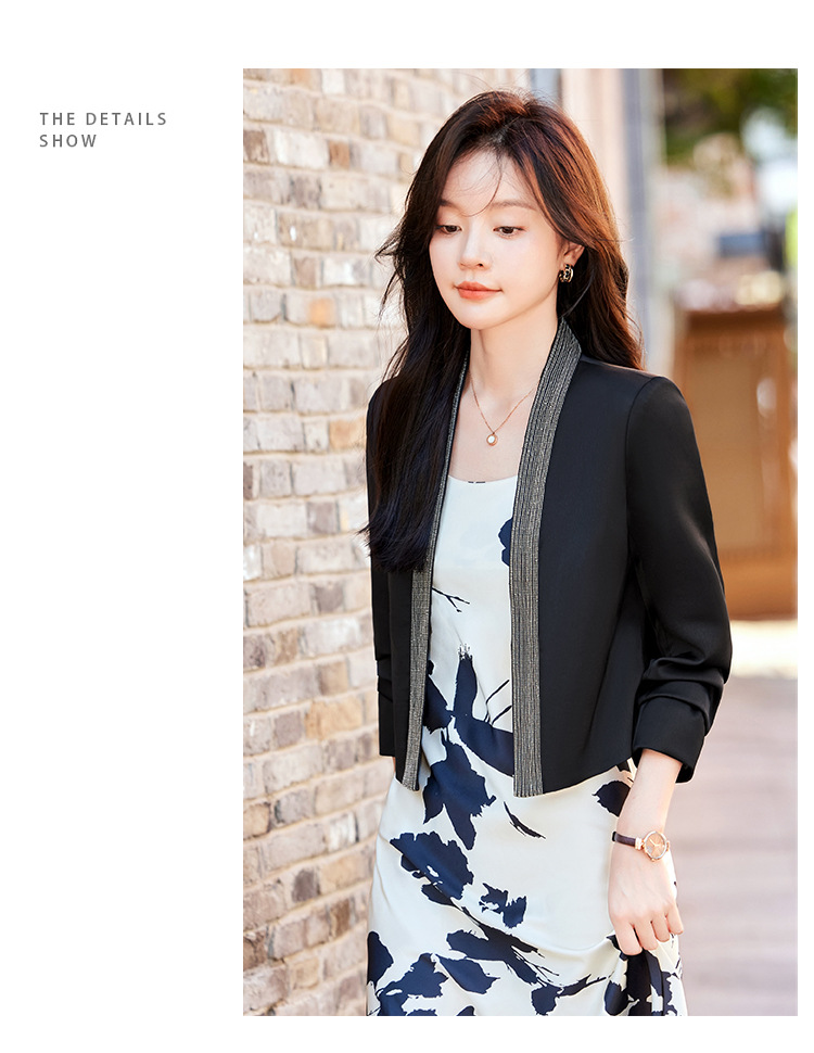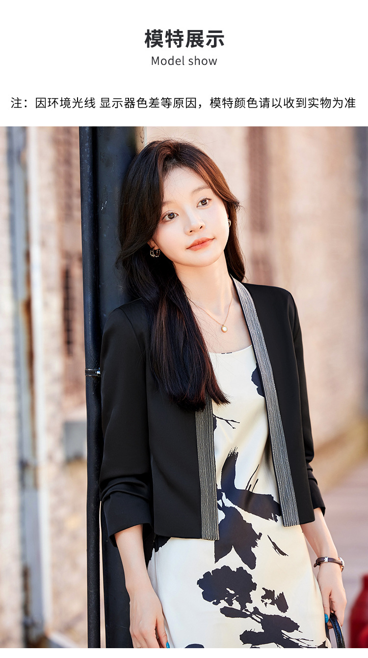 雀说高端仿醋酸缎面西装短外套新款小个子外搭无领西服上衣AL5205