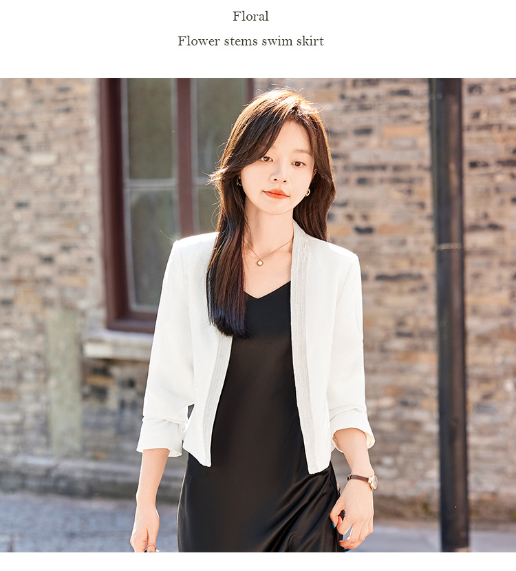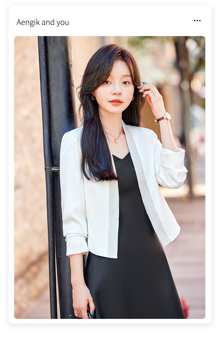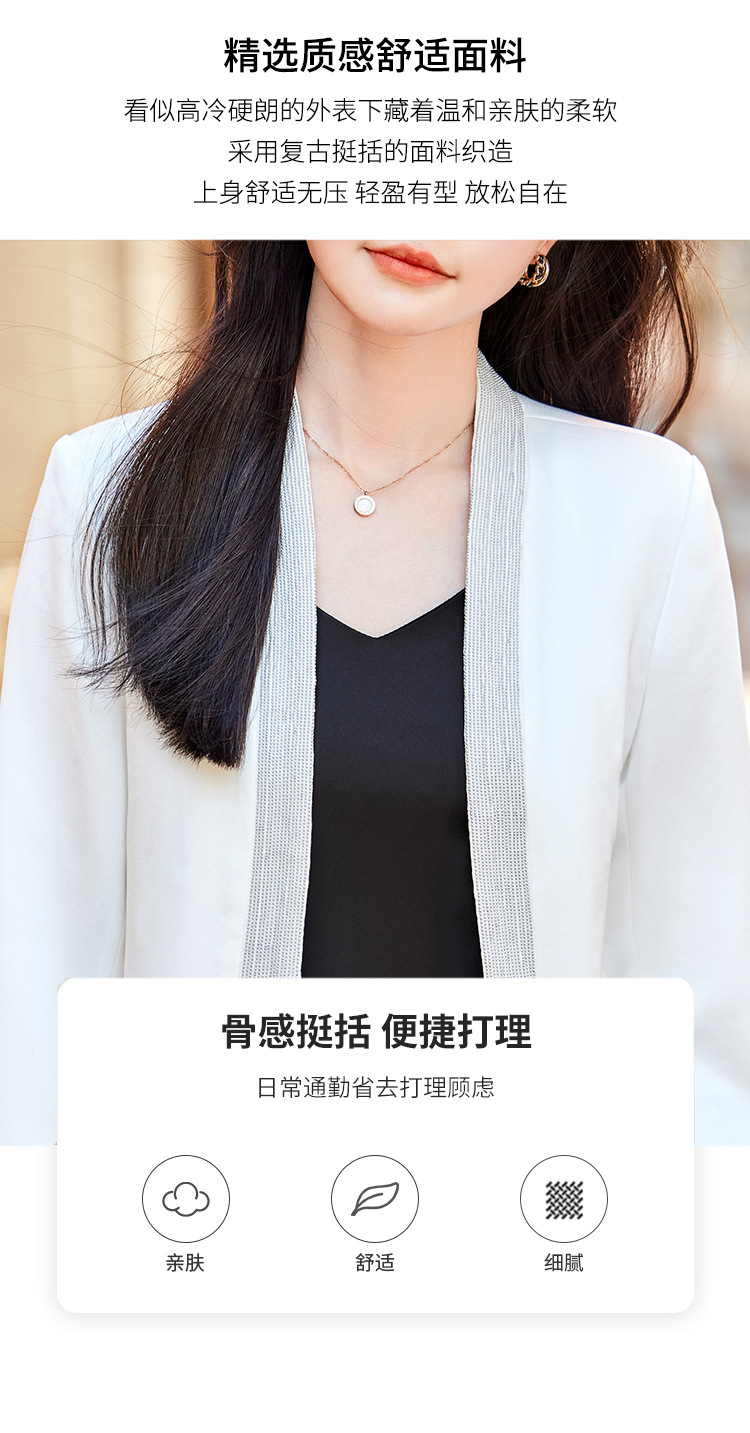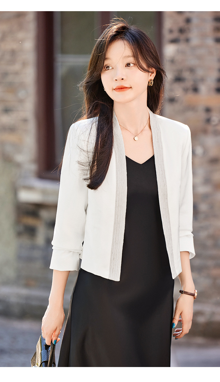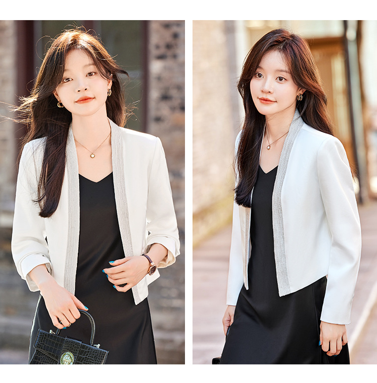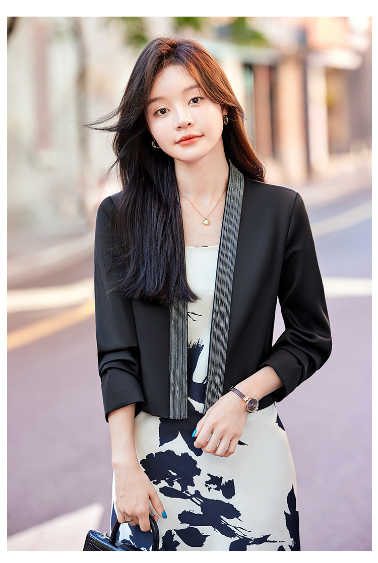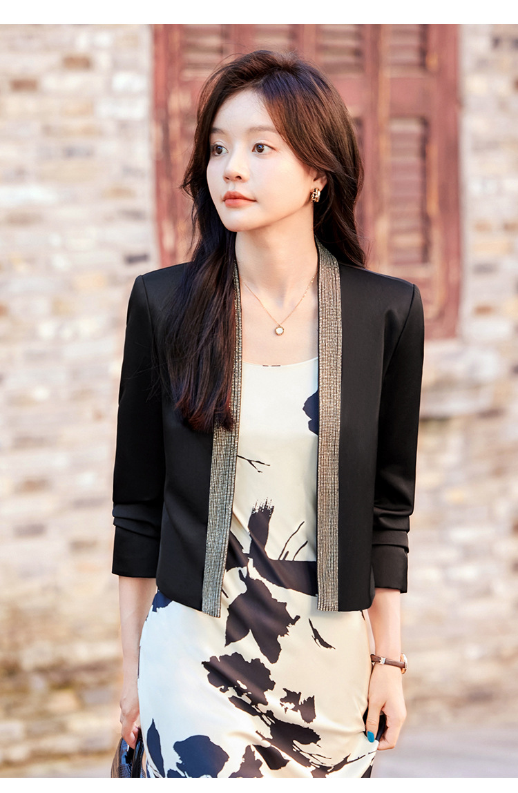 雀说高端仿醋酸缎面西装短外套新款小个子外搭无领西服上衣AL5205