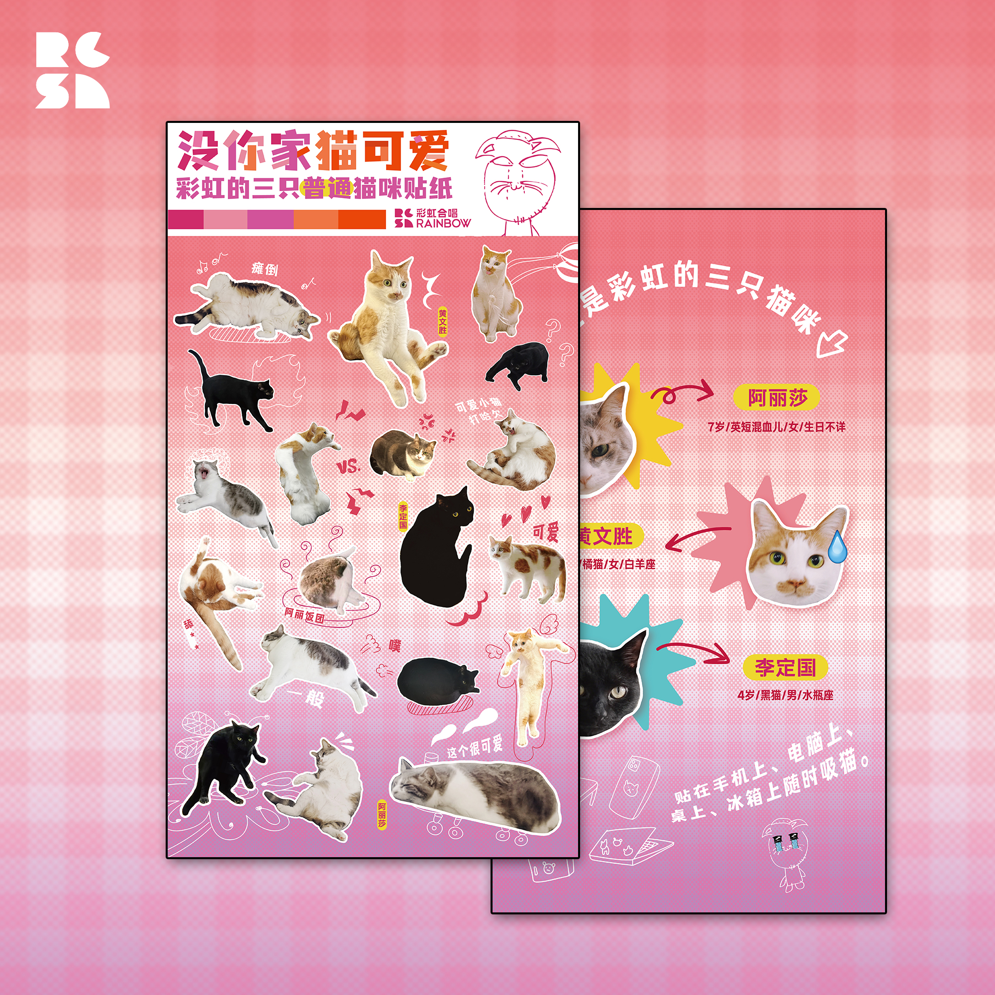 彩虹的三只普通猫咪贴纸