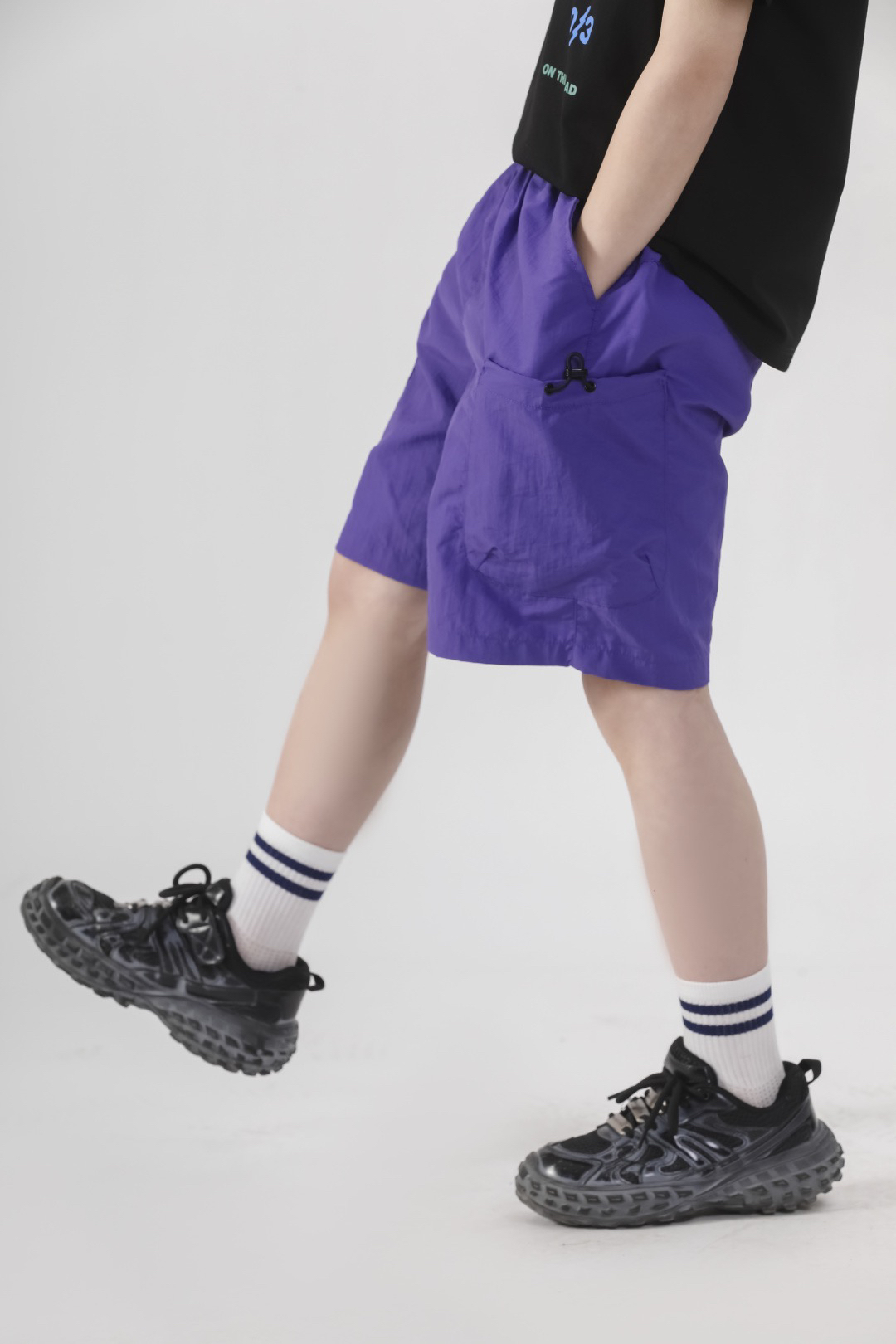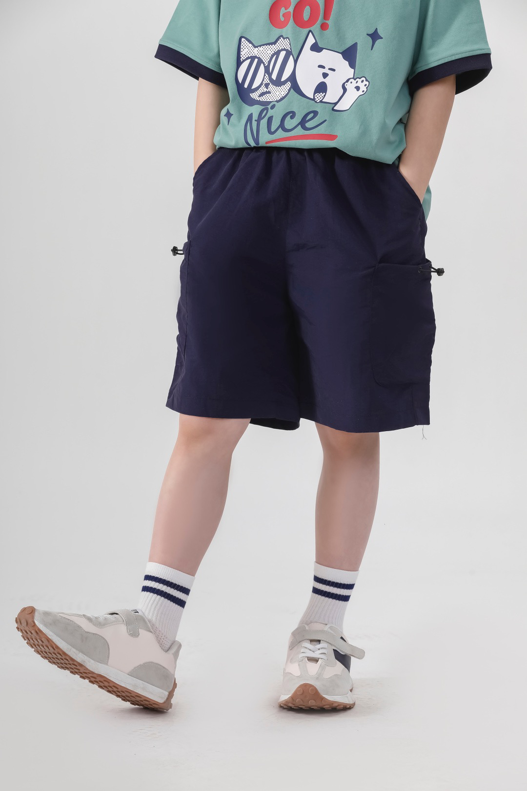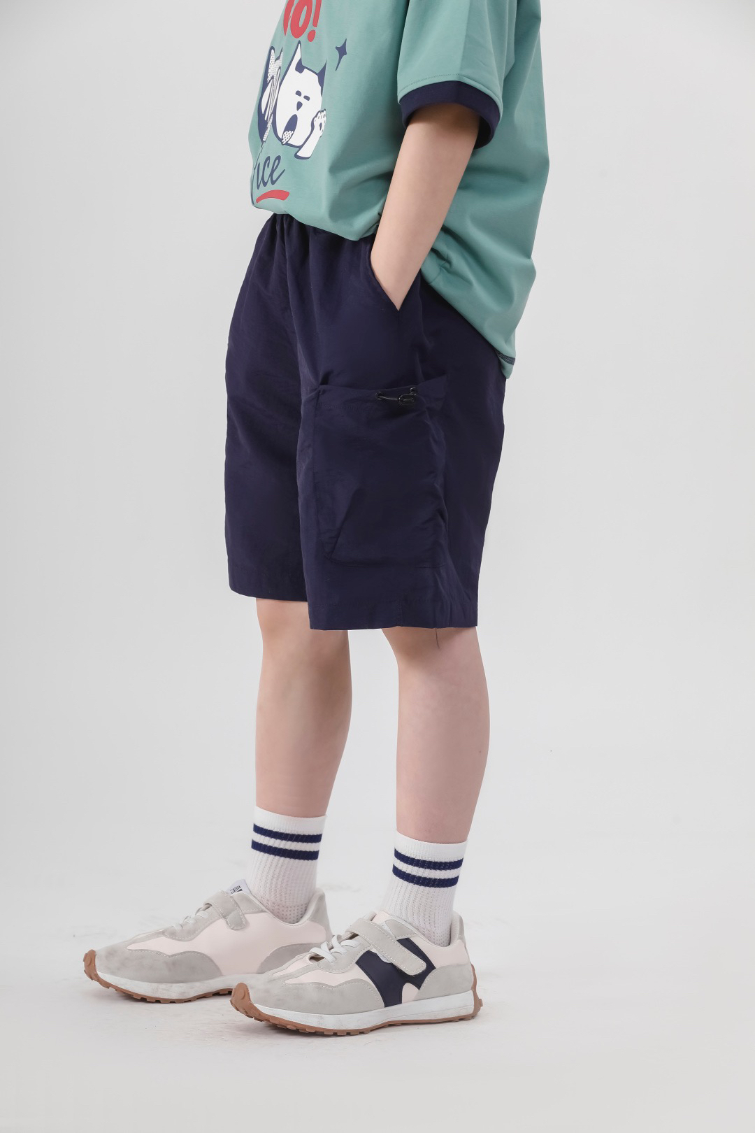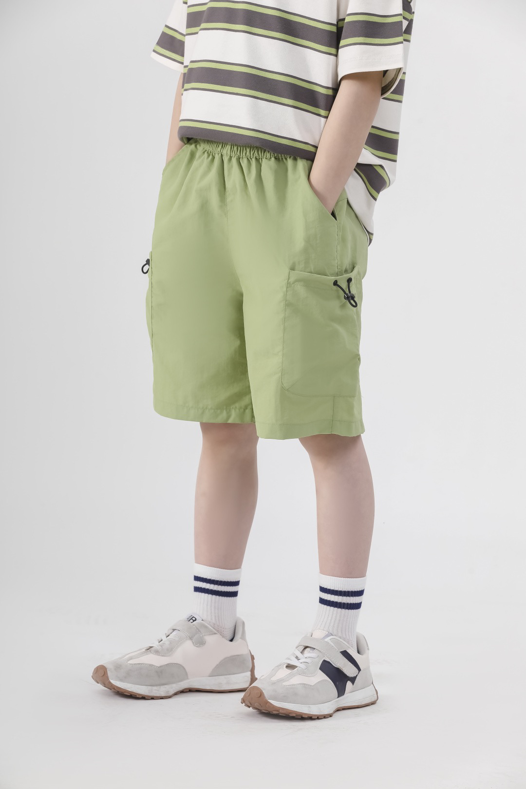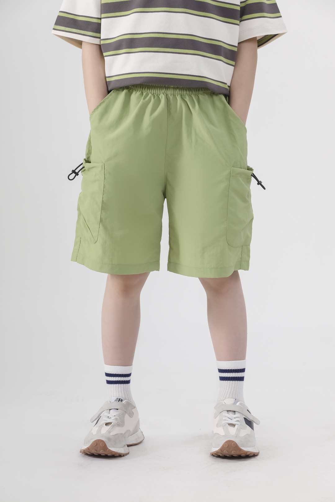 ✅舒适细节拉满,松紧腰头+大口袋设计,肉肉宝宝也能自在活动,小玩具、零食随手塞~