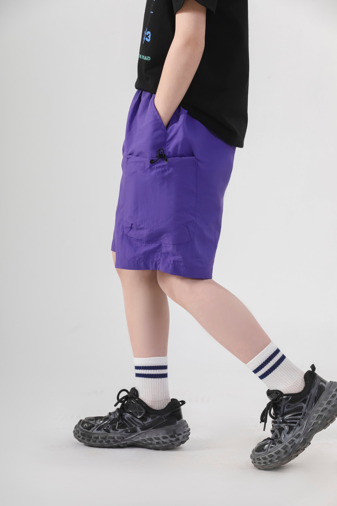 拼接剪裁修饰腿型,宽松直筒不挑身材,跑跳、运动、露营都超飒~尺码:120-170!