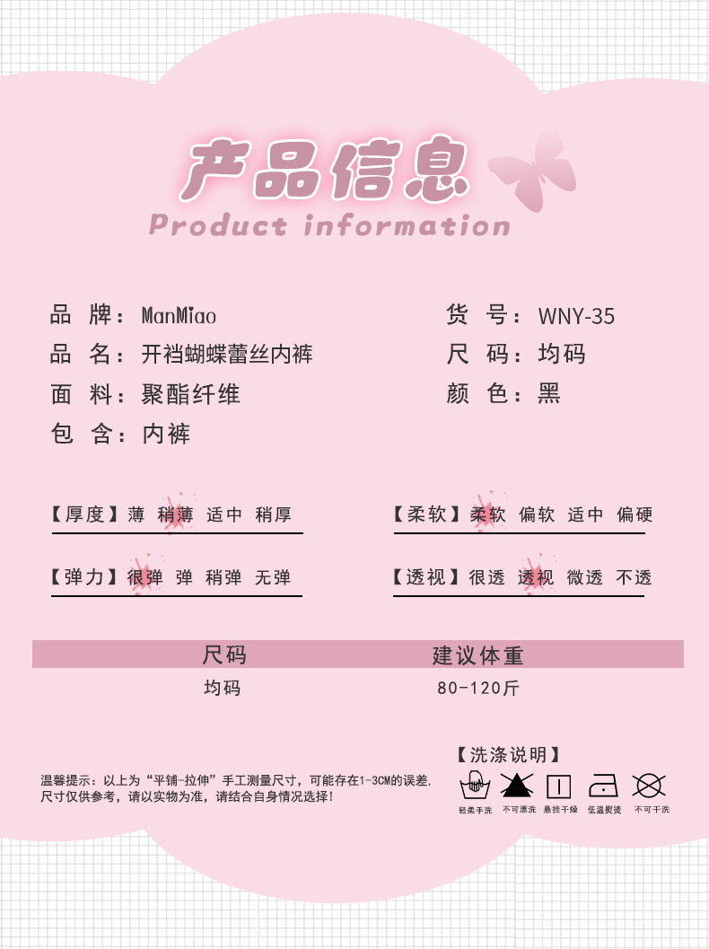 漫渺蝴蝶仙子低腰蕾丝内裤免脱轻扯纯欲风缕空蝴蝶结绑带情趣内裤