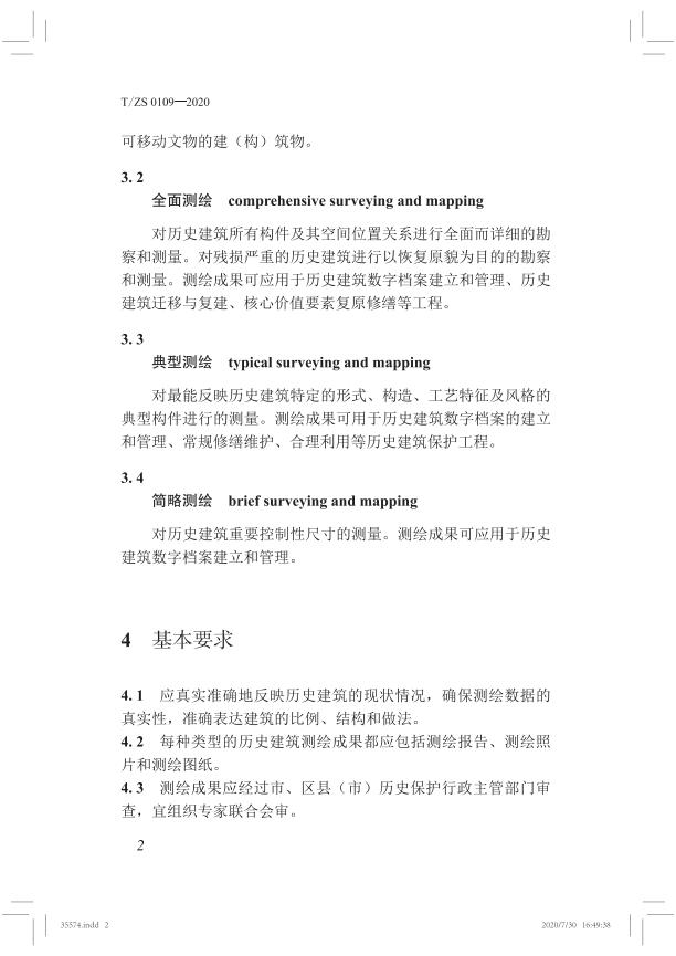 本标准起草单位:杭州市历史建筑保护管理中心、浙江大学建筑设计研究院有限公司、浙江风土工程设计有限公司、浙江省古建筑设计研究院、浙江省长三角标准技术研究院。本规范规定了历史建筑测绘成果的基本要求、测绘报告、测绘照片、测绘图纸、成果资料整理等基本内容。 本规范适用于历史建筑测绘成果质量的管理。