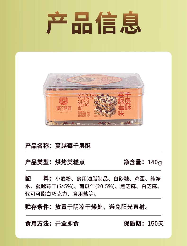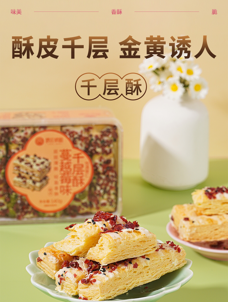 【樱花情酥】休闲追剧小零食蔓越莓千层酥140g/盒