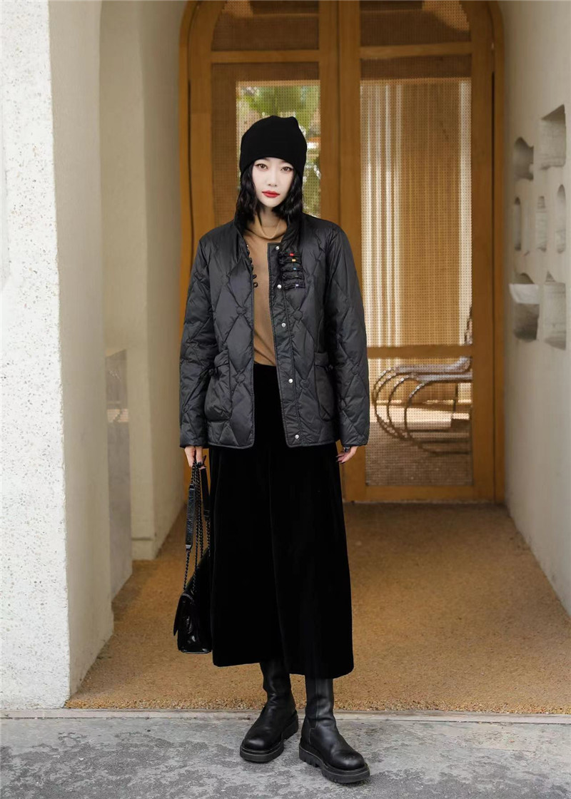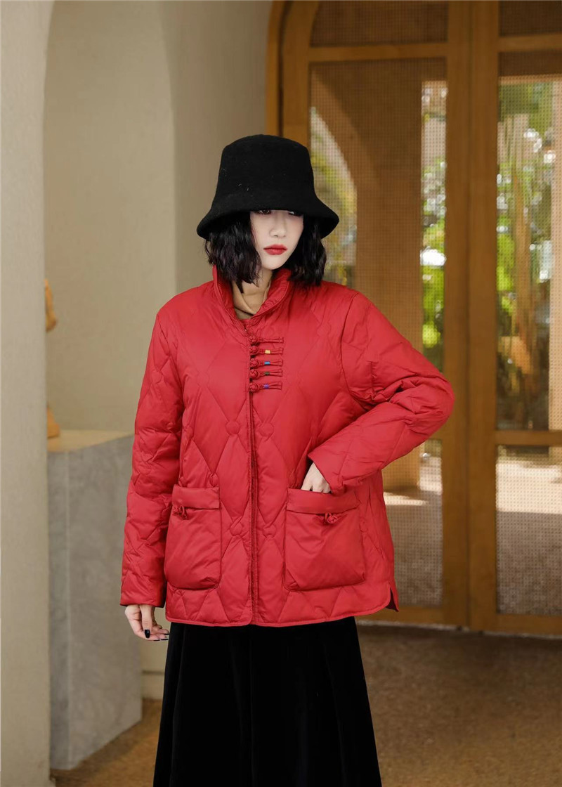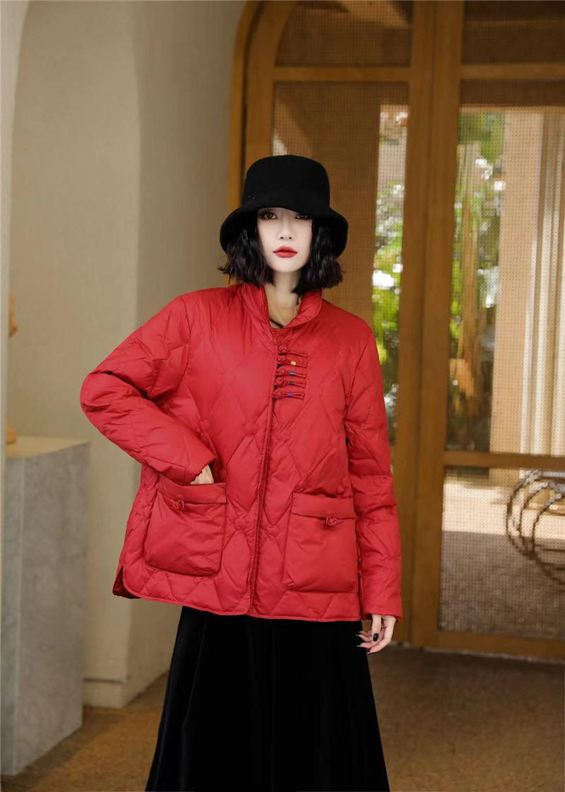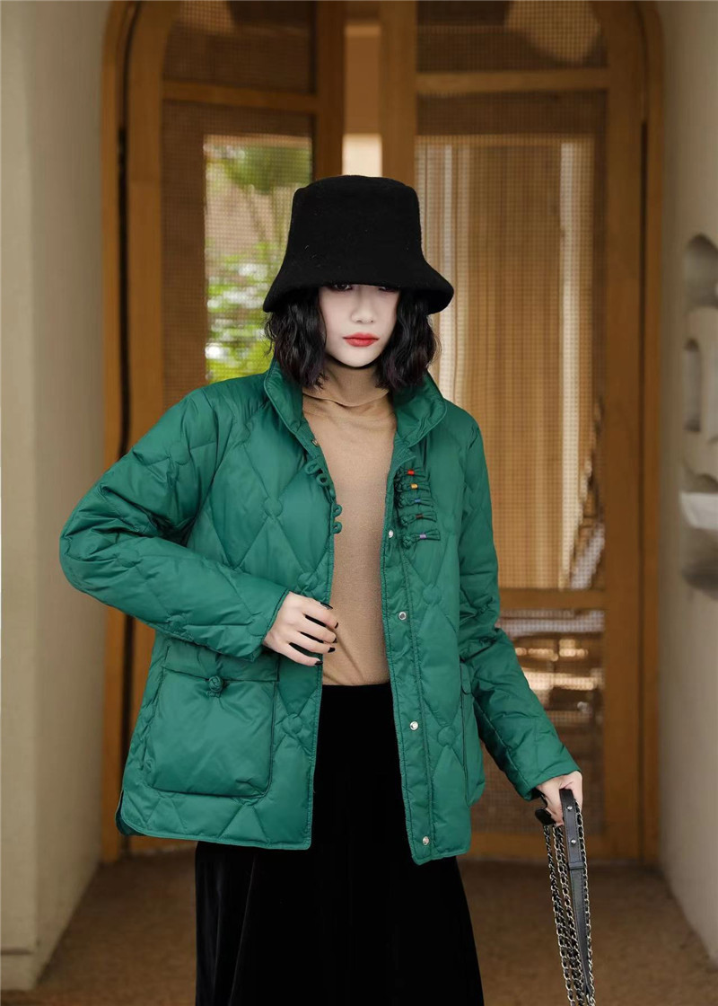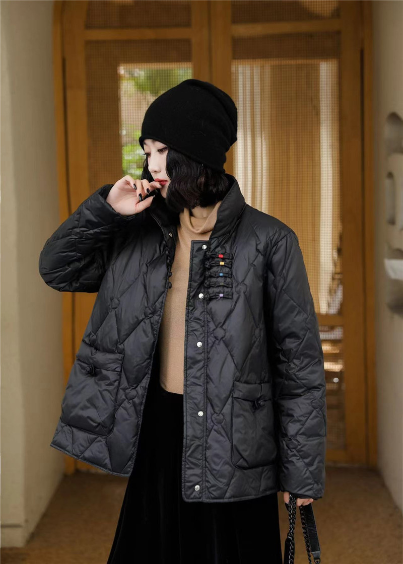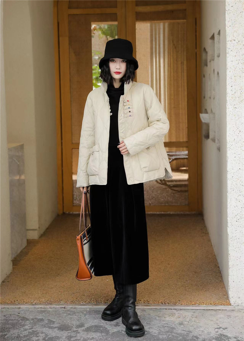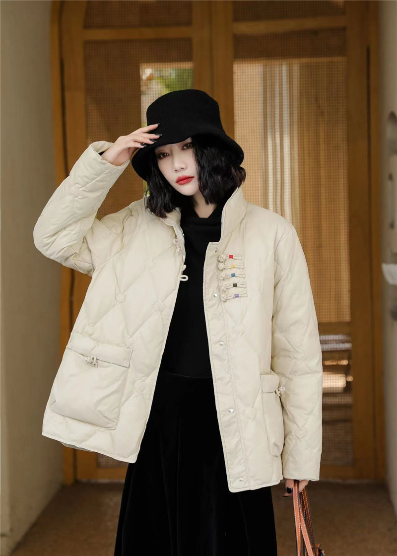 TZW-丝线盘扣设计感白鸭绒羽绒服女款2022年新款冬季保暖时尚短外套潮