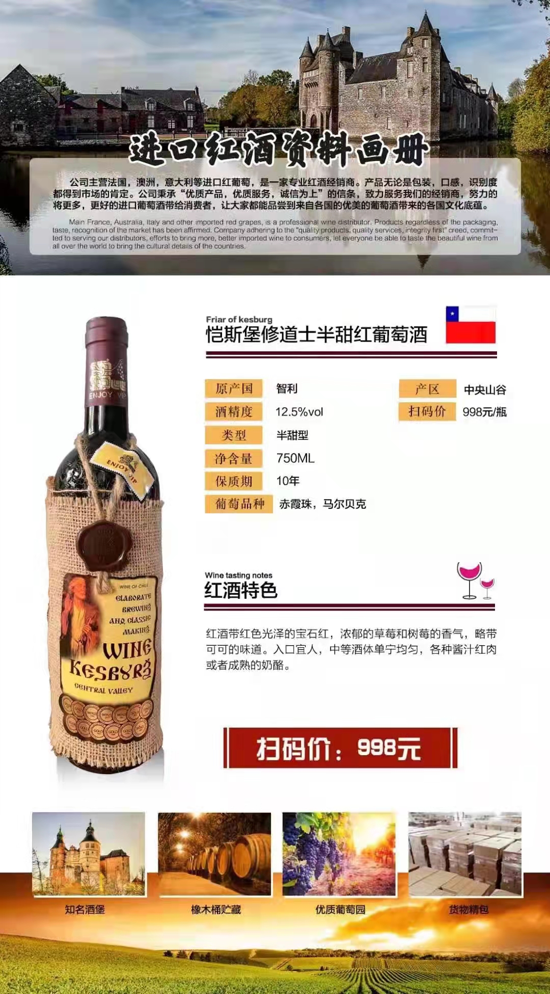[红酒]恺斯堡修道士半甜红葡萄酒12.5度750ml