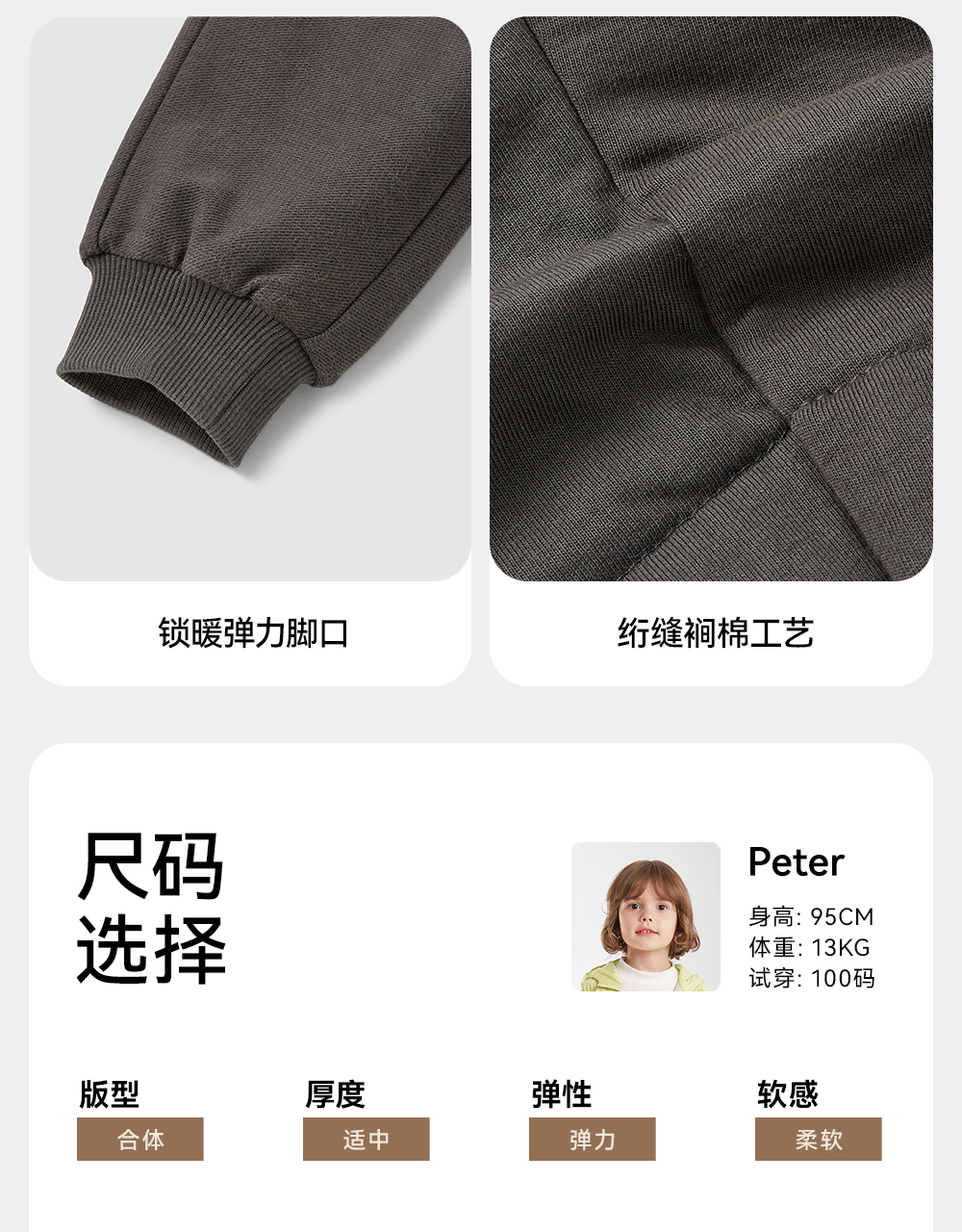 【商场同款】英氏男童裤子冬季夹棉长裤保暖百搭儿童休闲裤新款