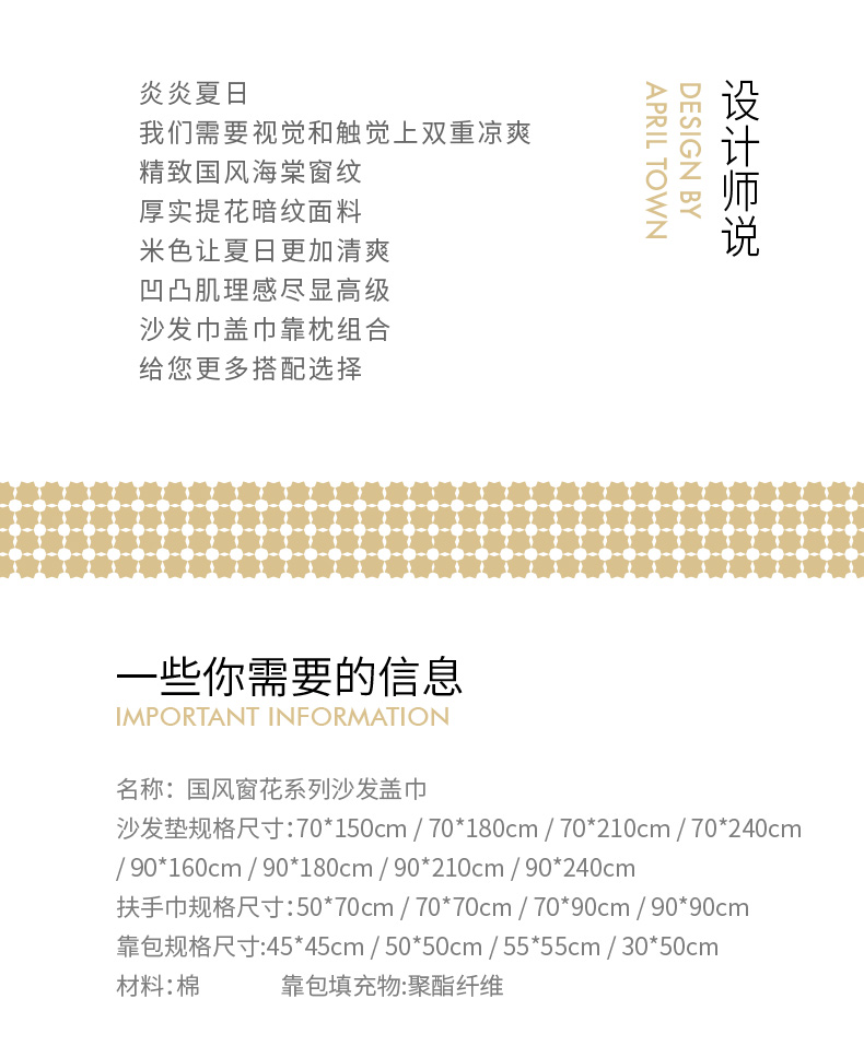 窗花系列沙发盖巾靠背巾扶手巾四季通用高级感轻奢奶油风