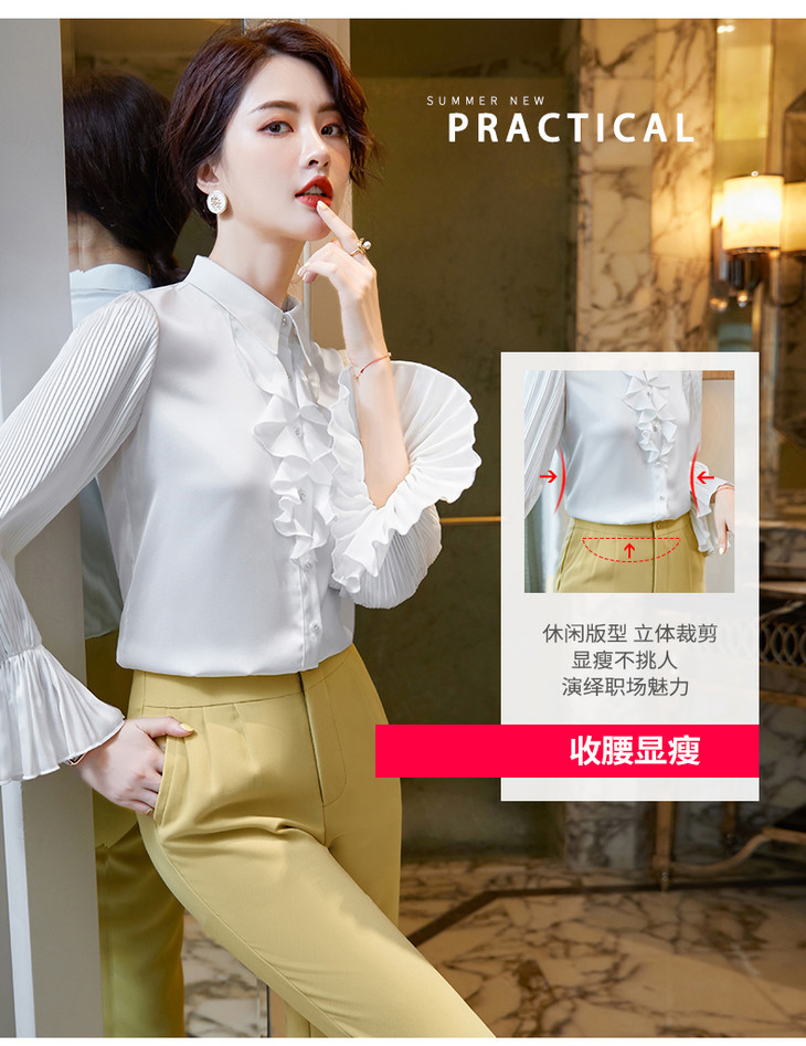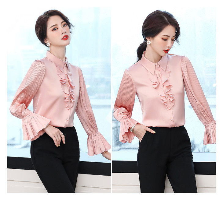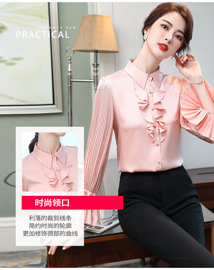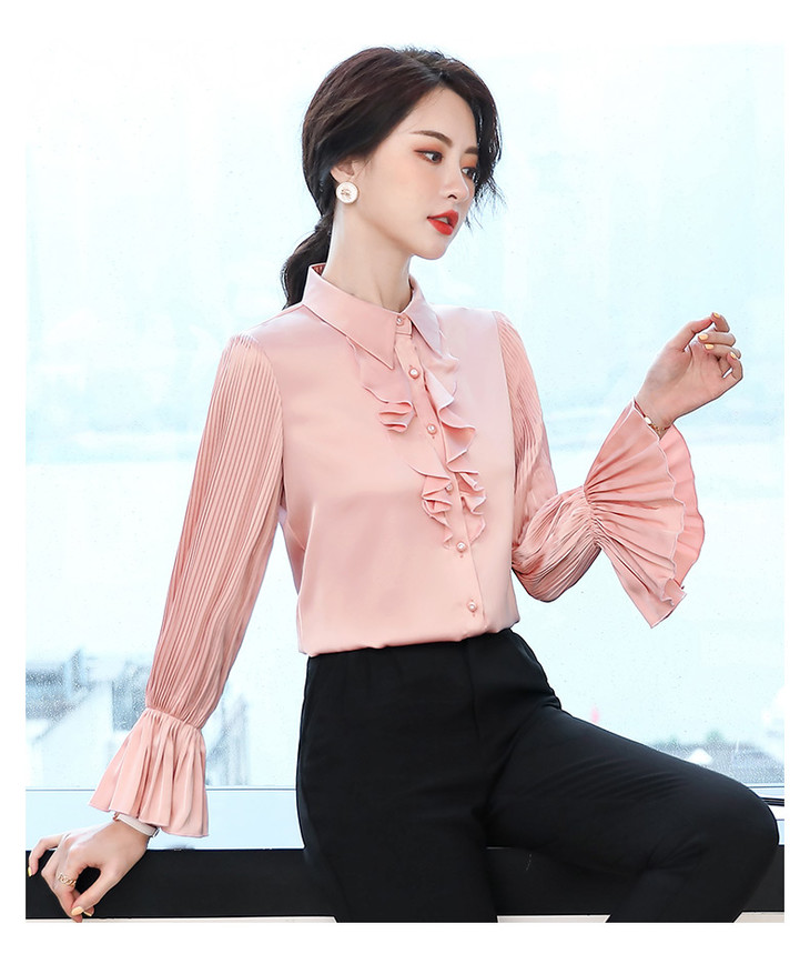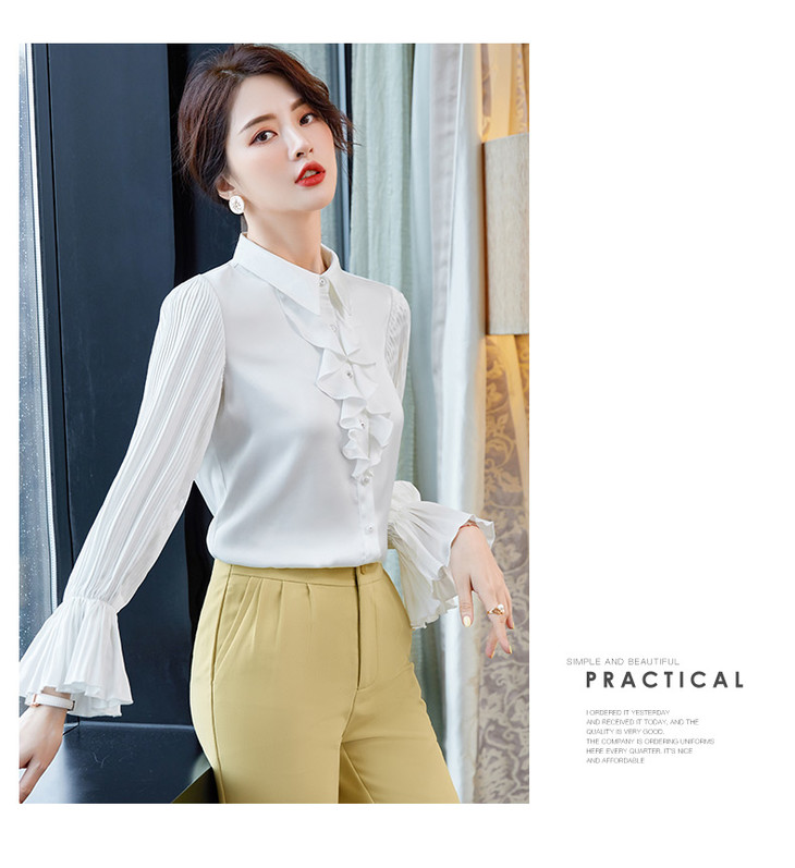 ZY-KY678新款时尚风琴褶灯笼袖雪纺职业衬衫