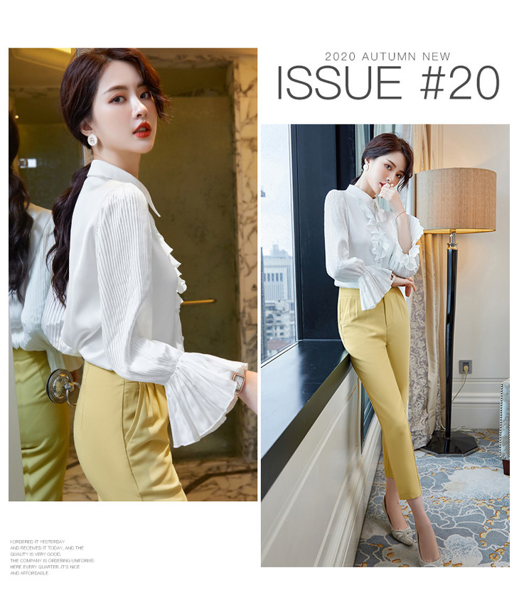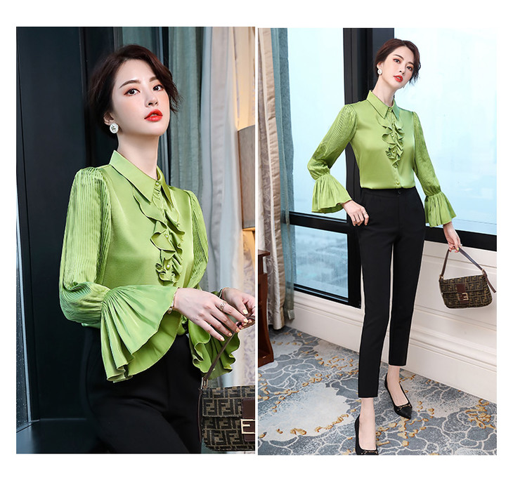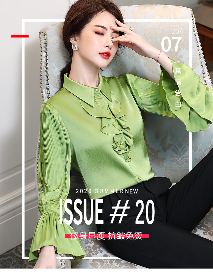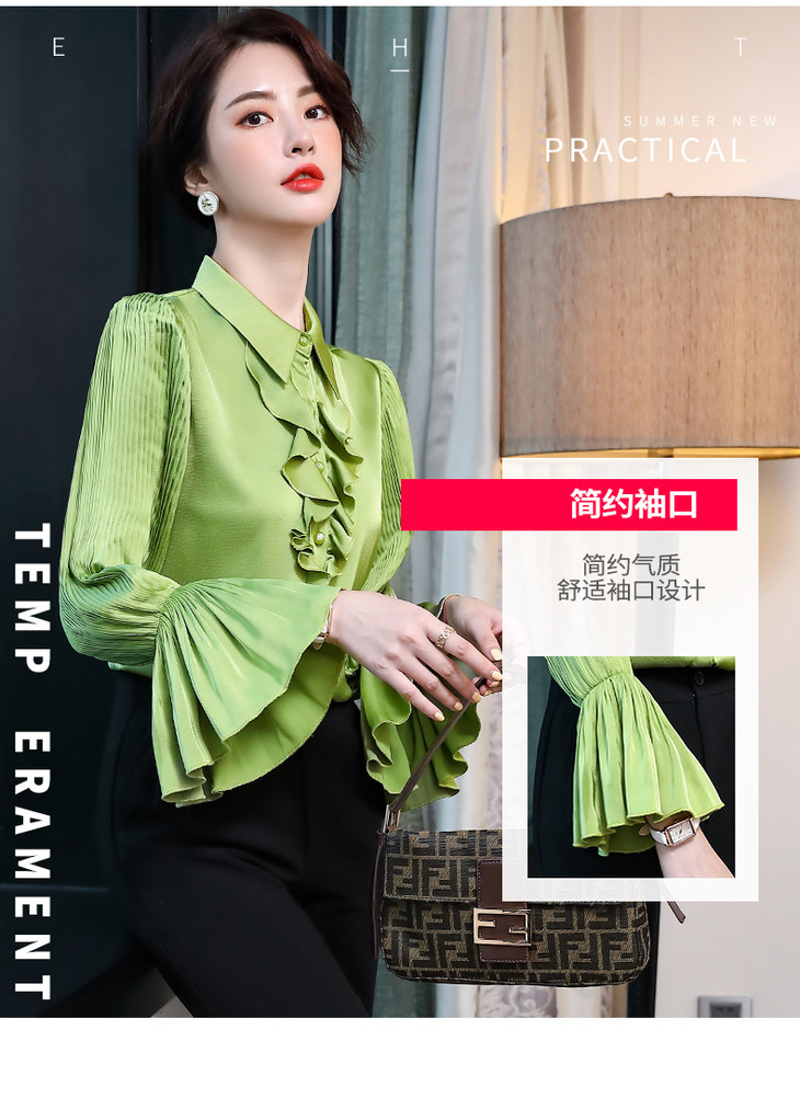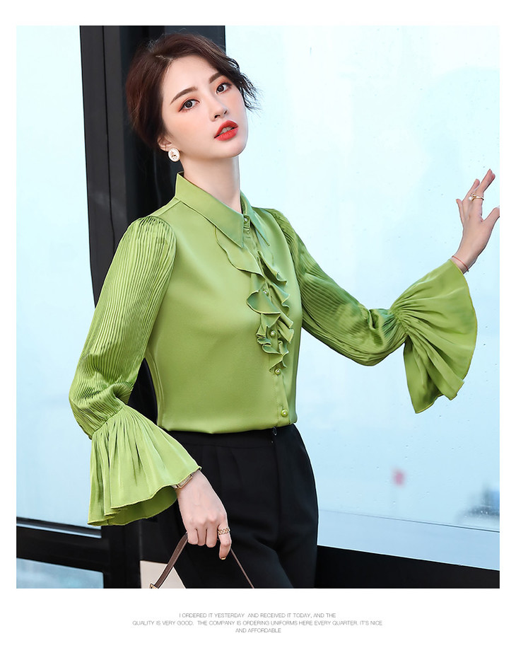 ZY-KY678新款时尚风琴褶灯笼袖雪纺职业衬衫