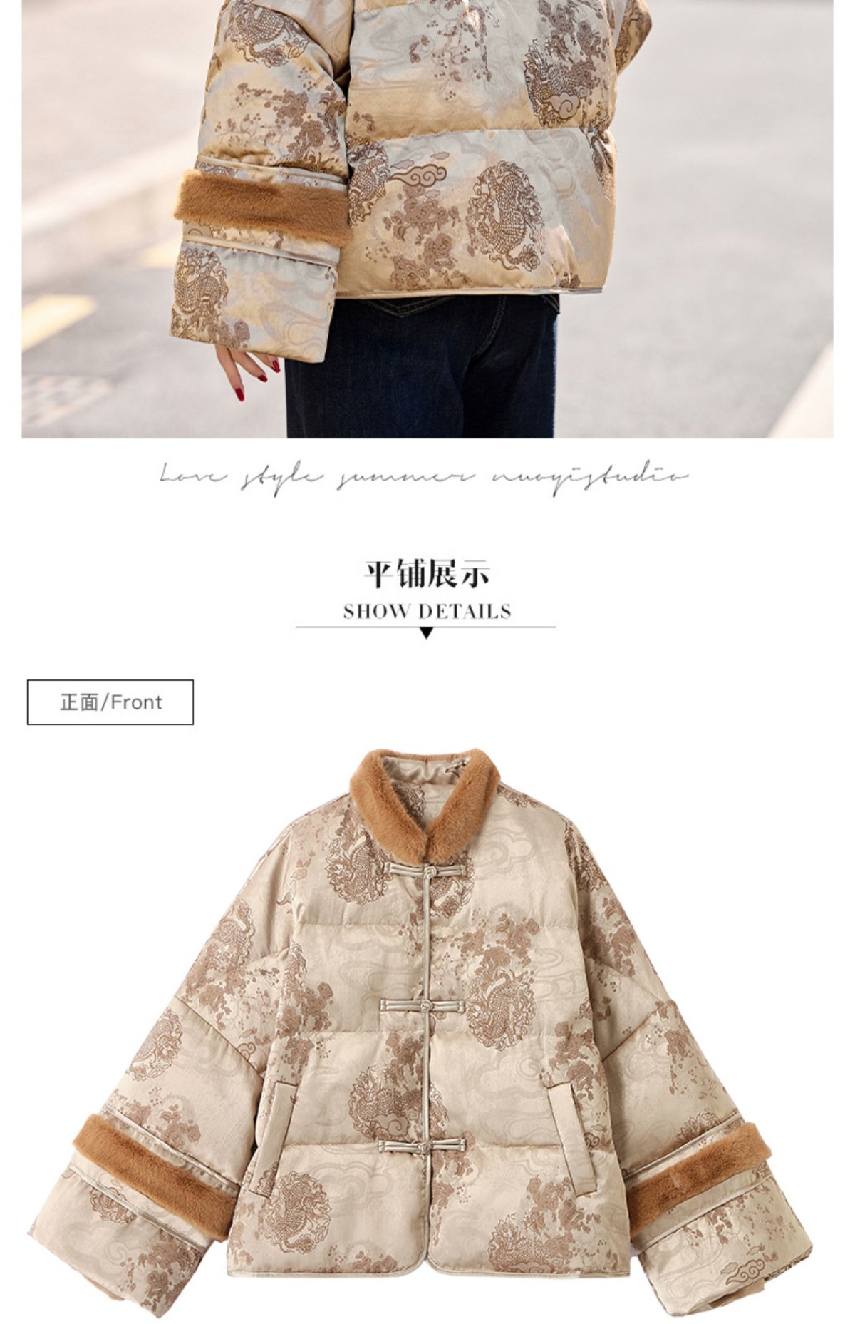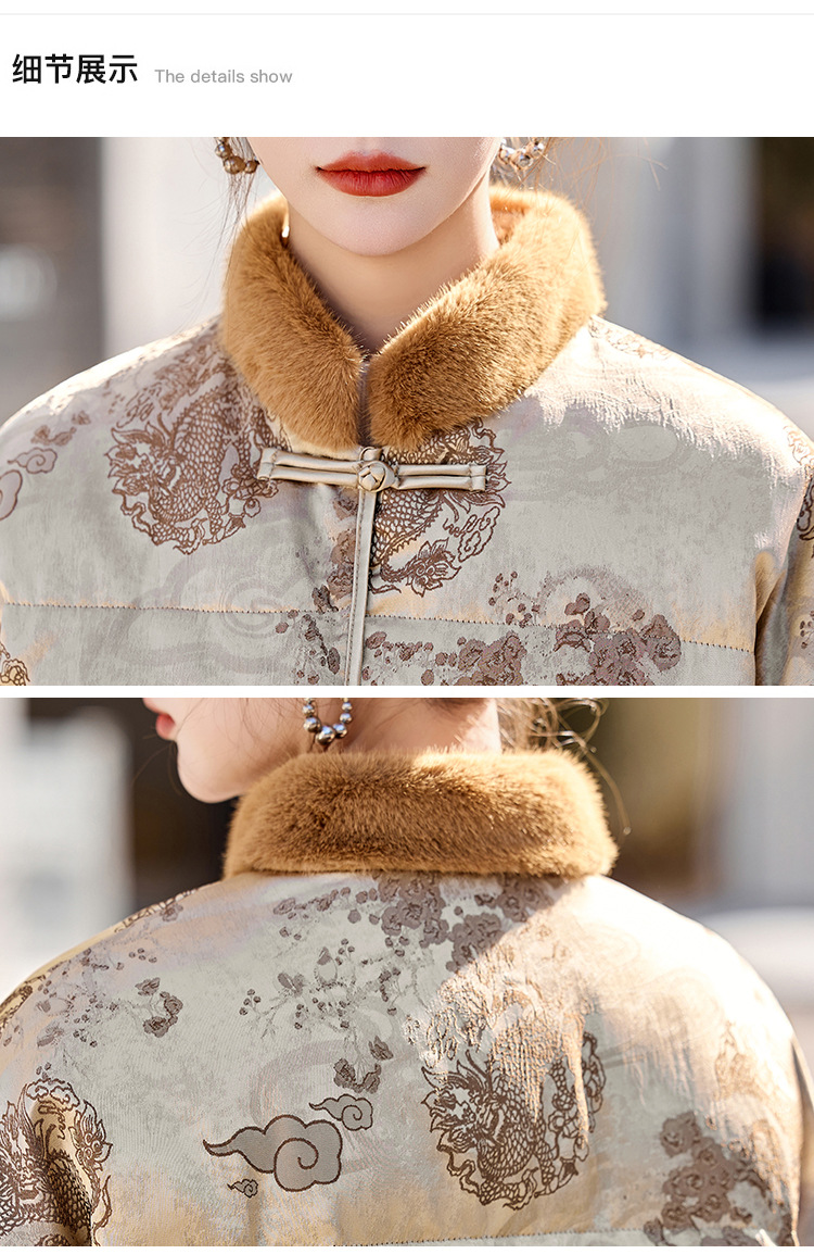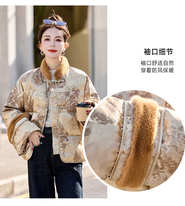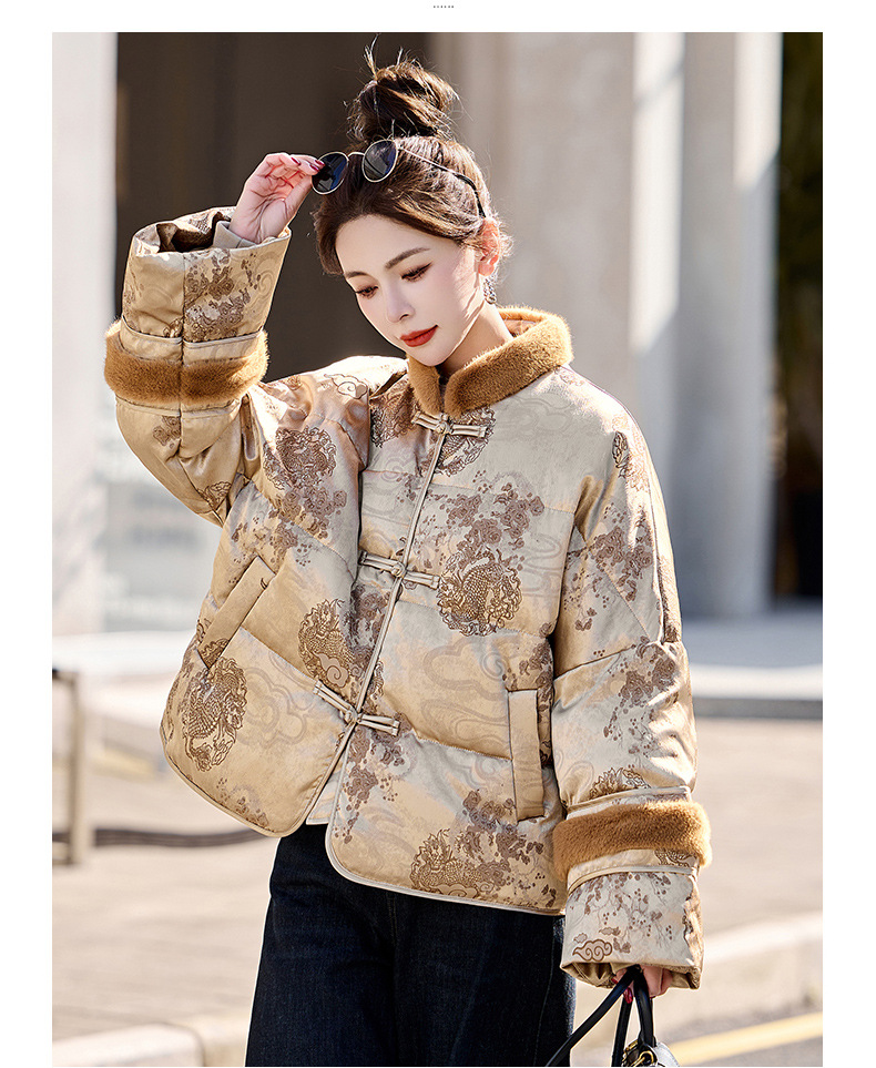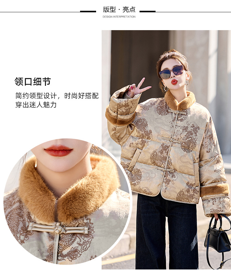 新中式国风羽绒服,时尚洋气复古盘扣刺绣白鸭绒立领外套YQH88857