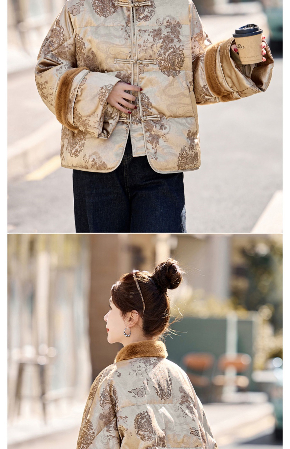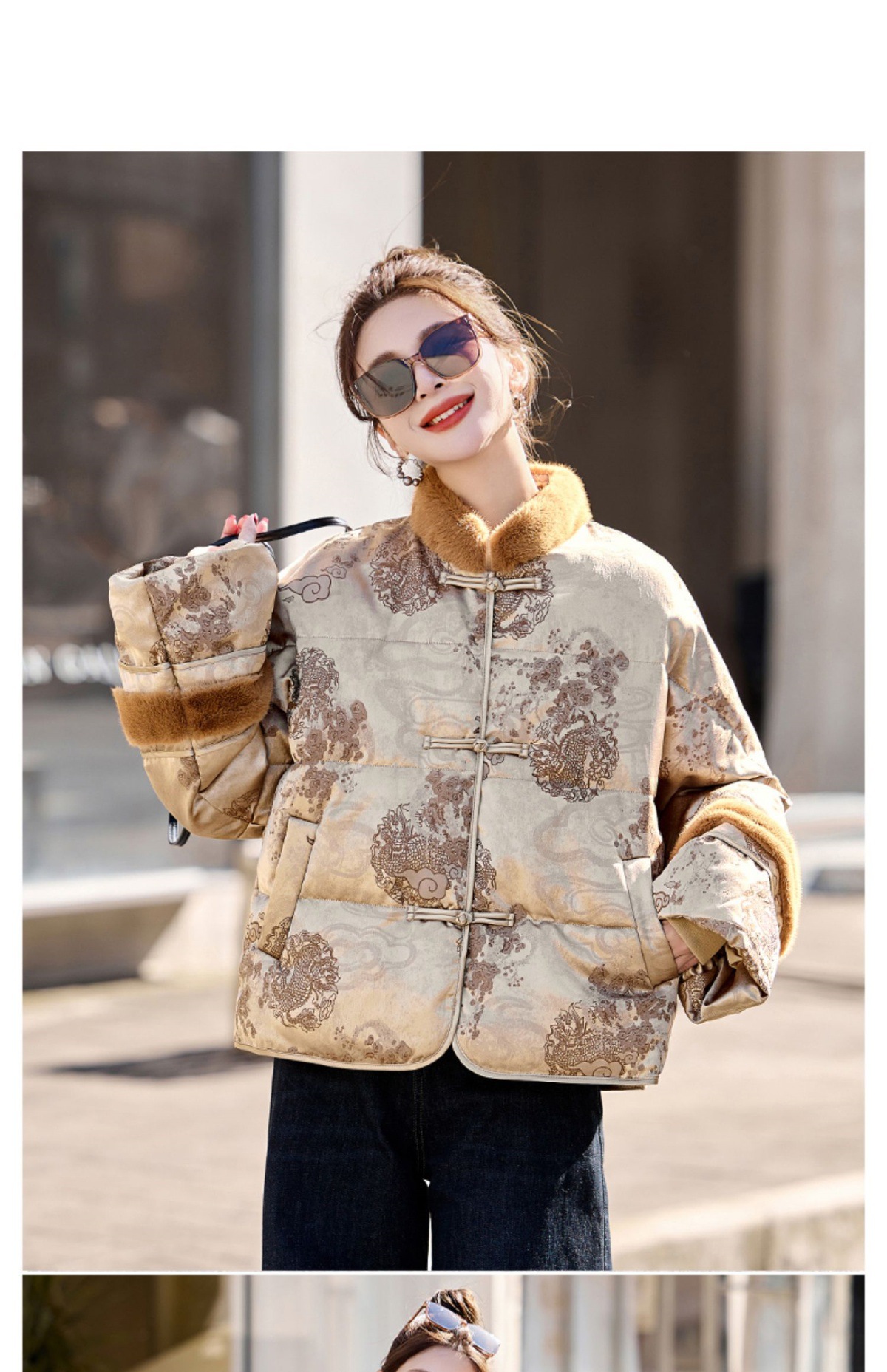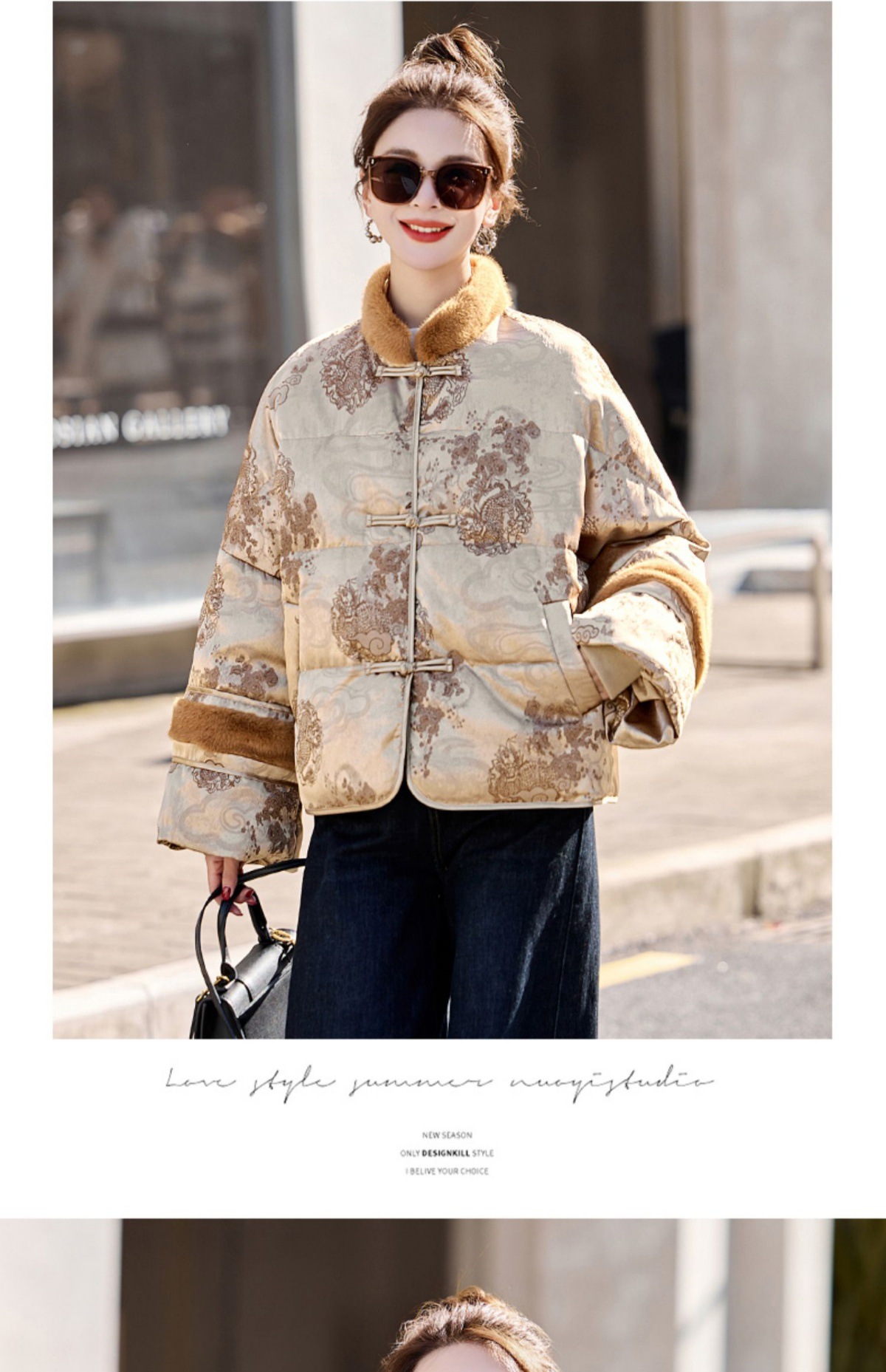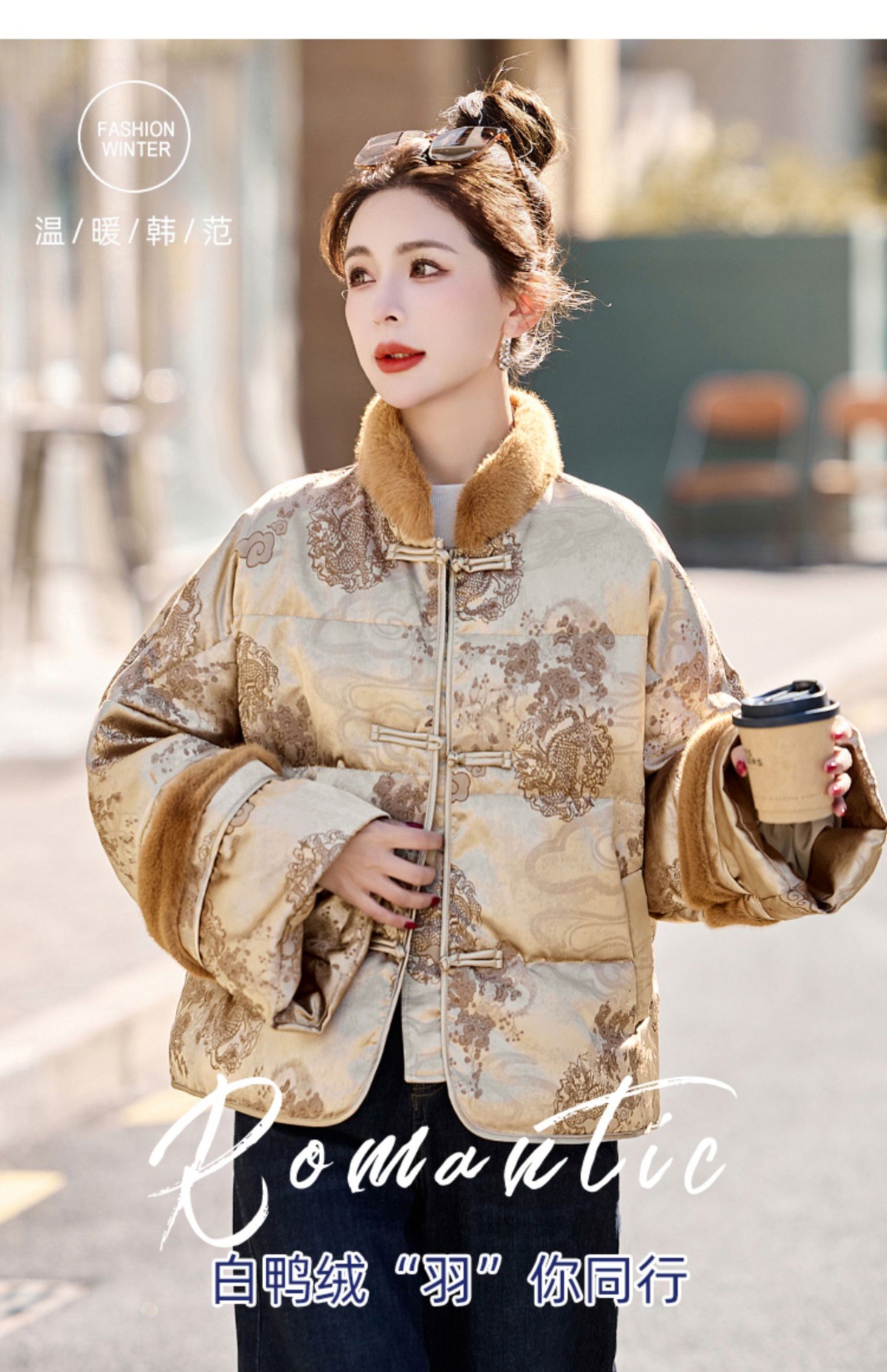 新中式国风羽绒服,时尚洋气复古盘扣刺绣白鸭绒立领外套YQH88857