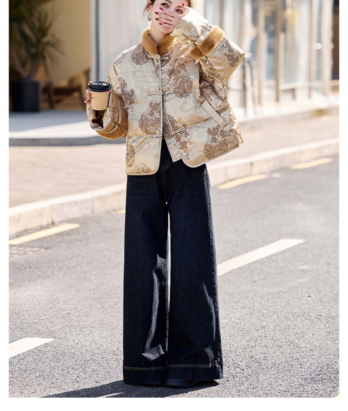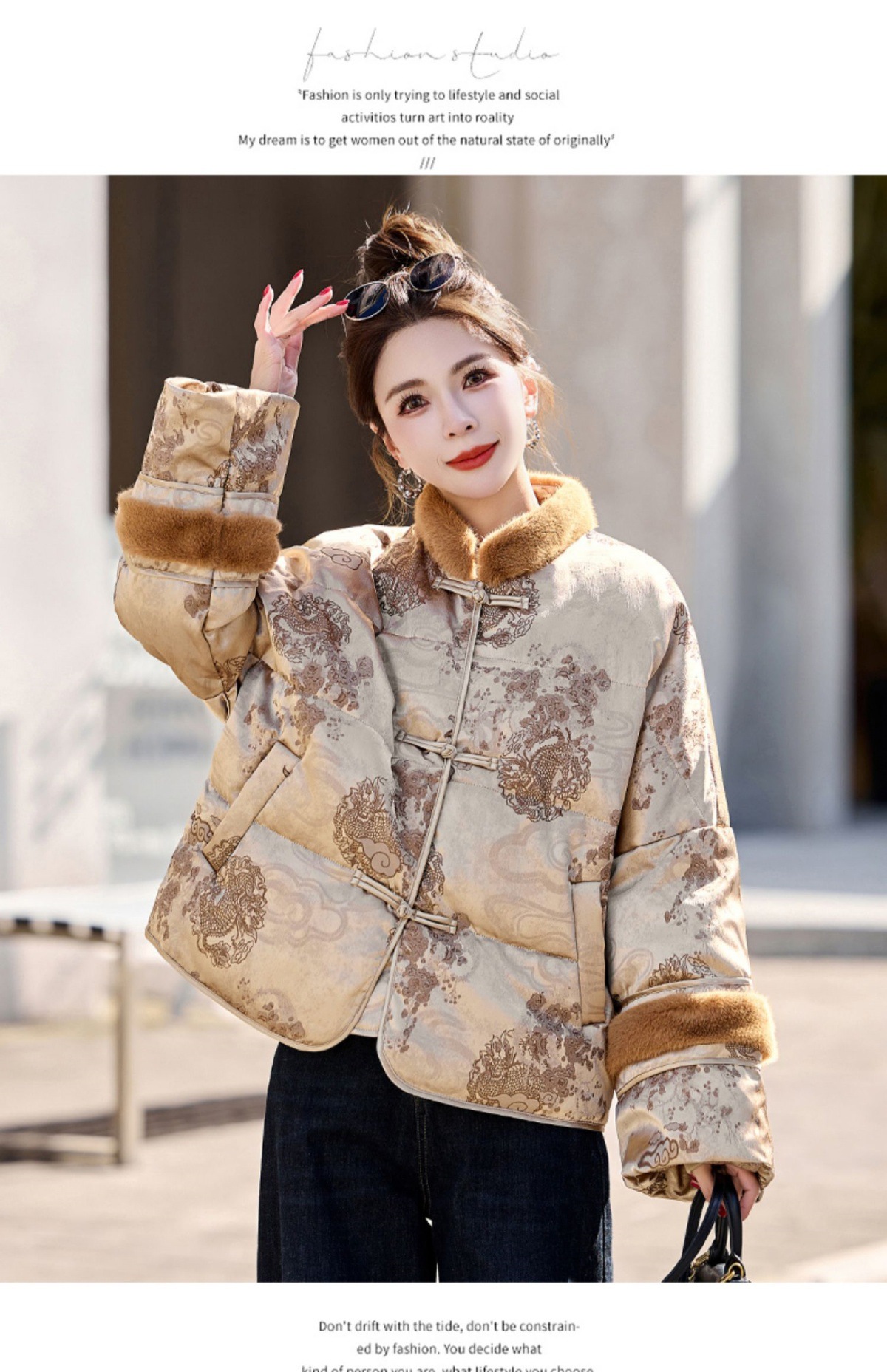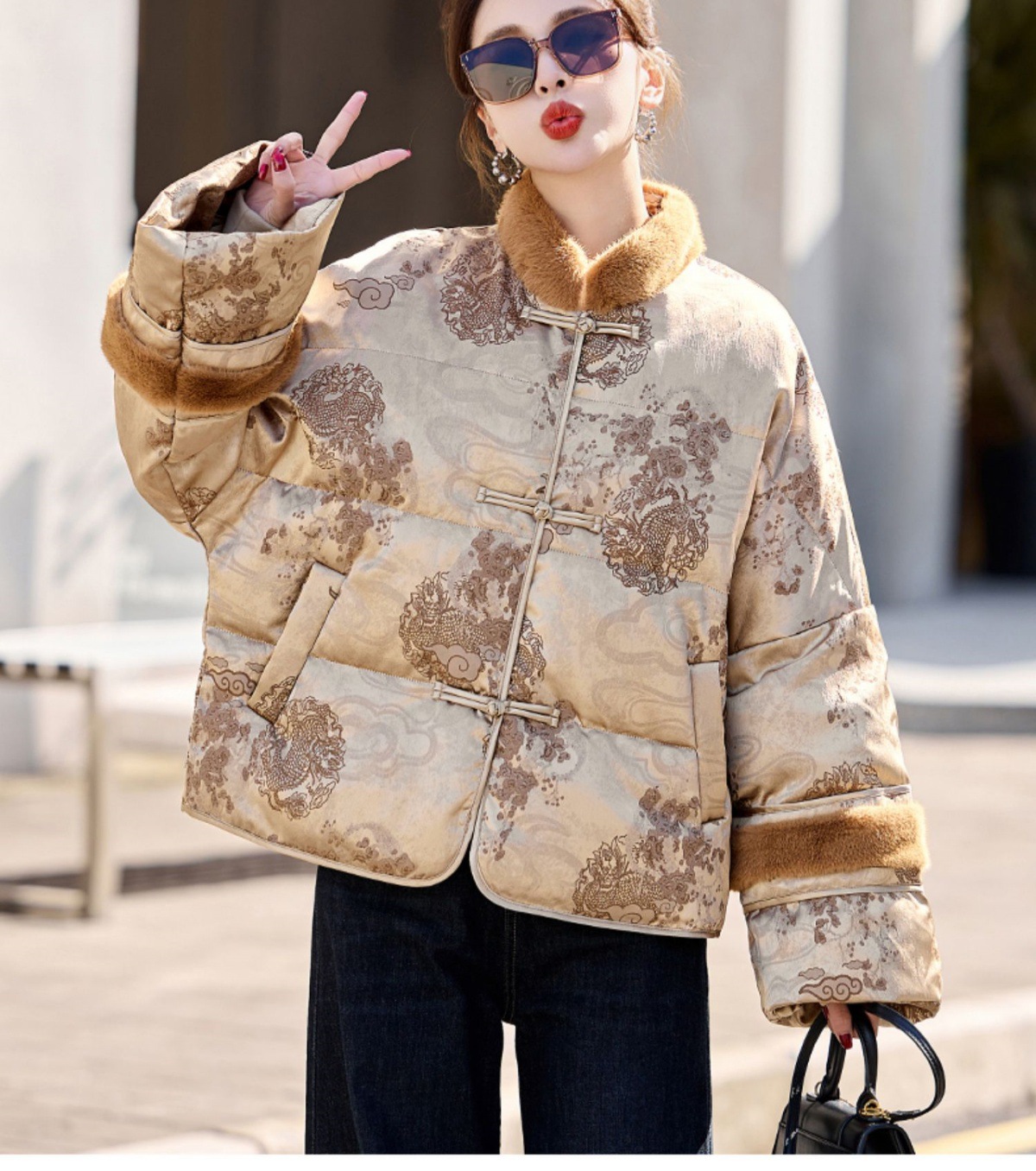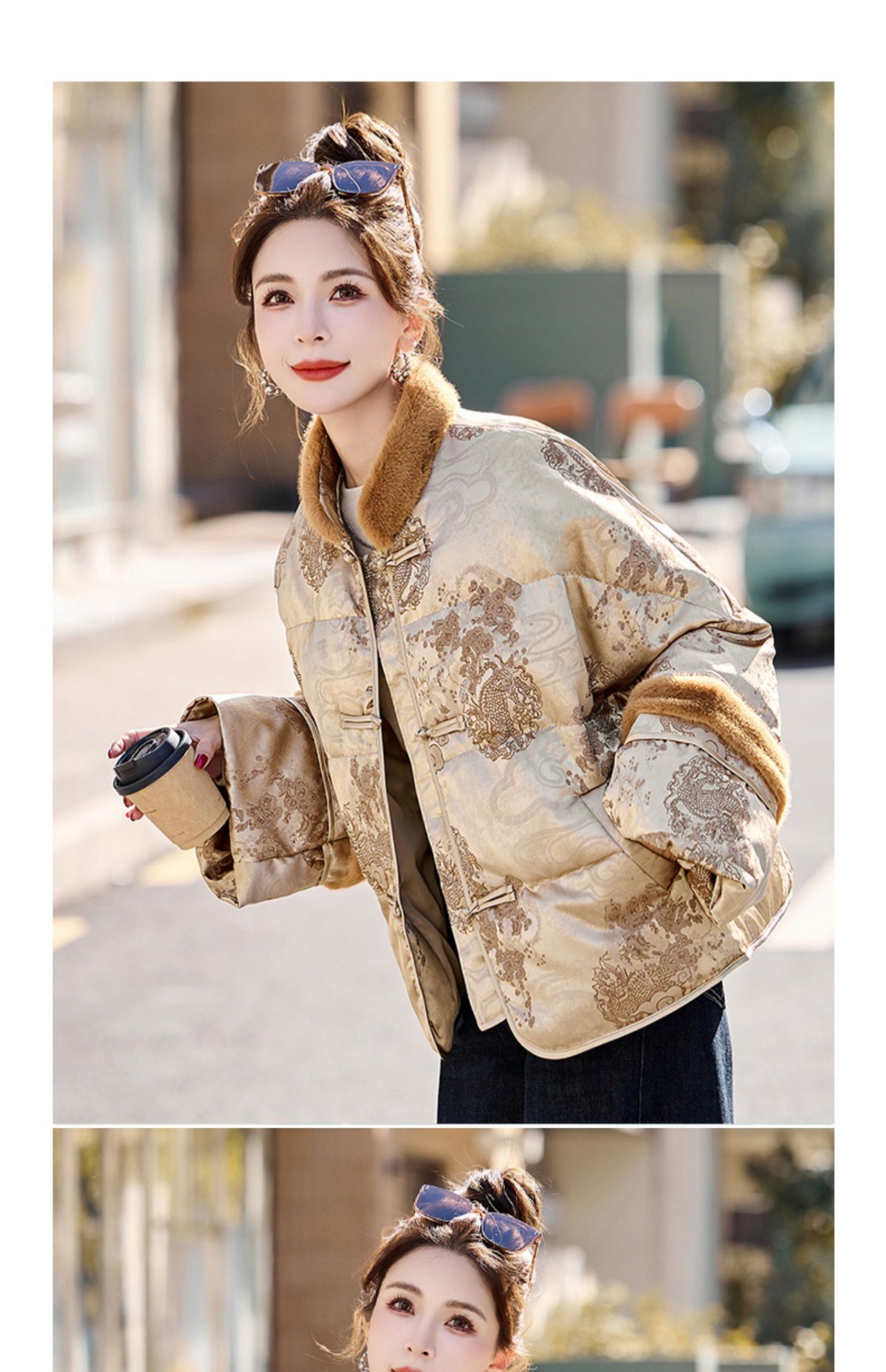 新中式国风羽绒服,时尚洋气复古盘扣刺绣白鸭绒立领外套YQH88857