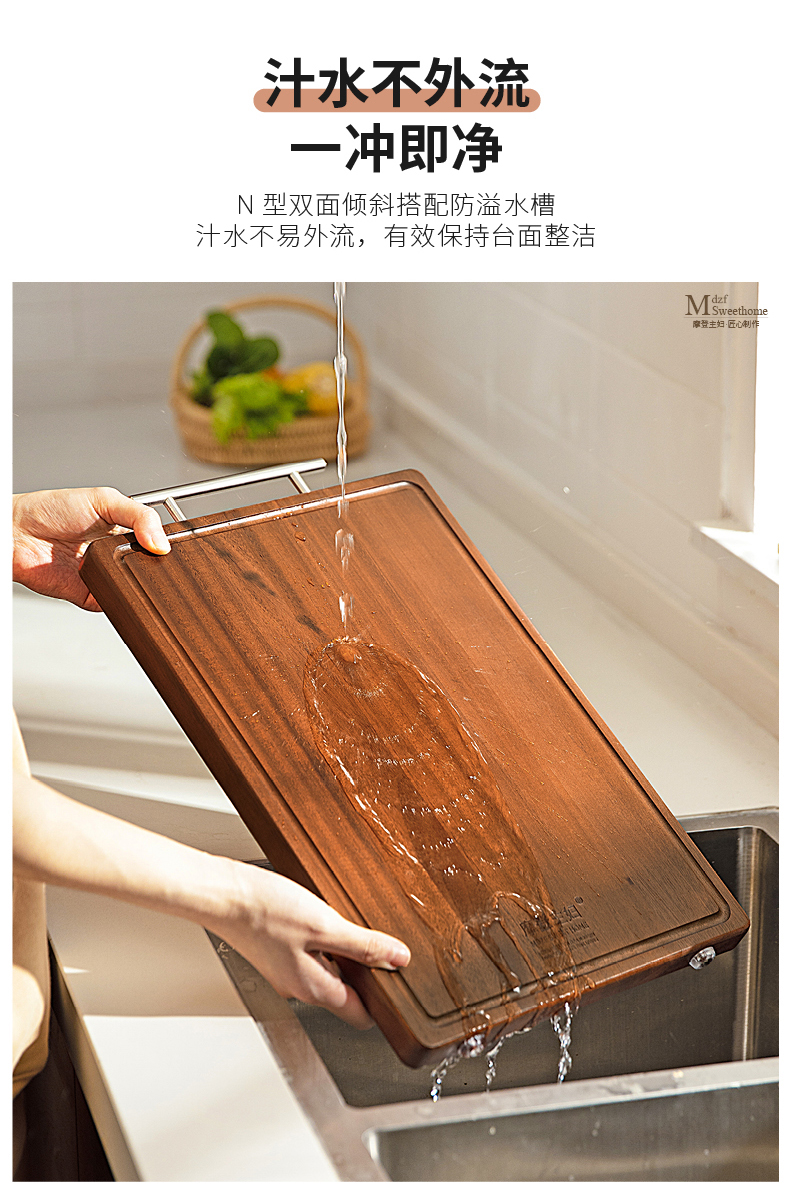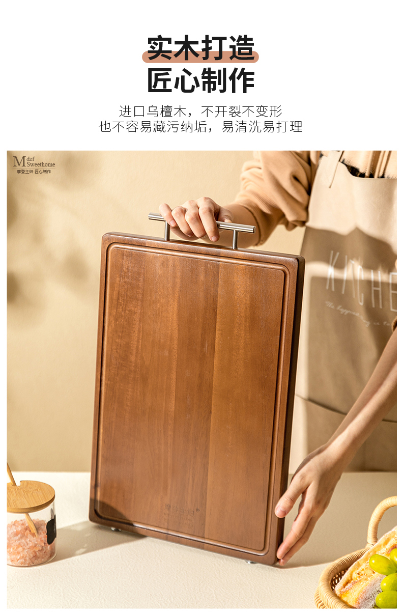 摩登主妇乌檀木菜板防霉家用实木粘板案板切菜板刀板水果砧板 商品图4