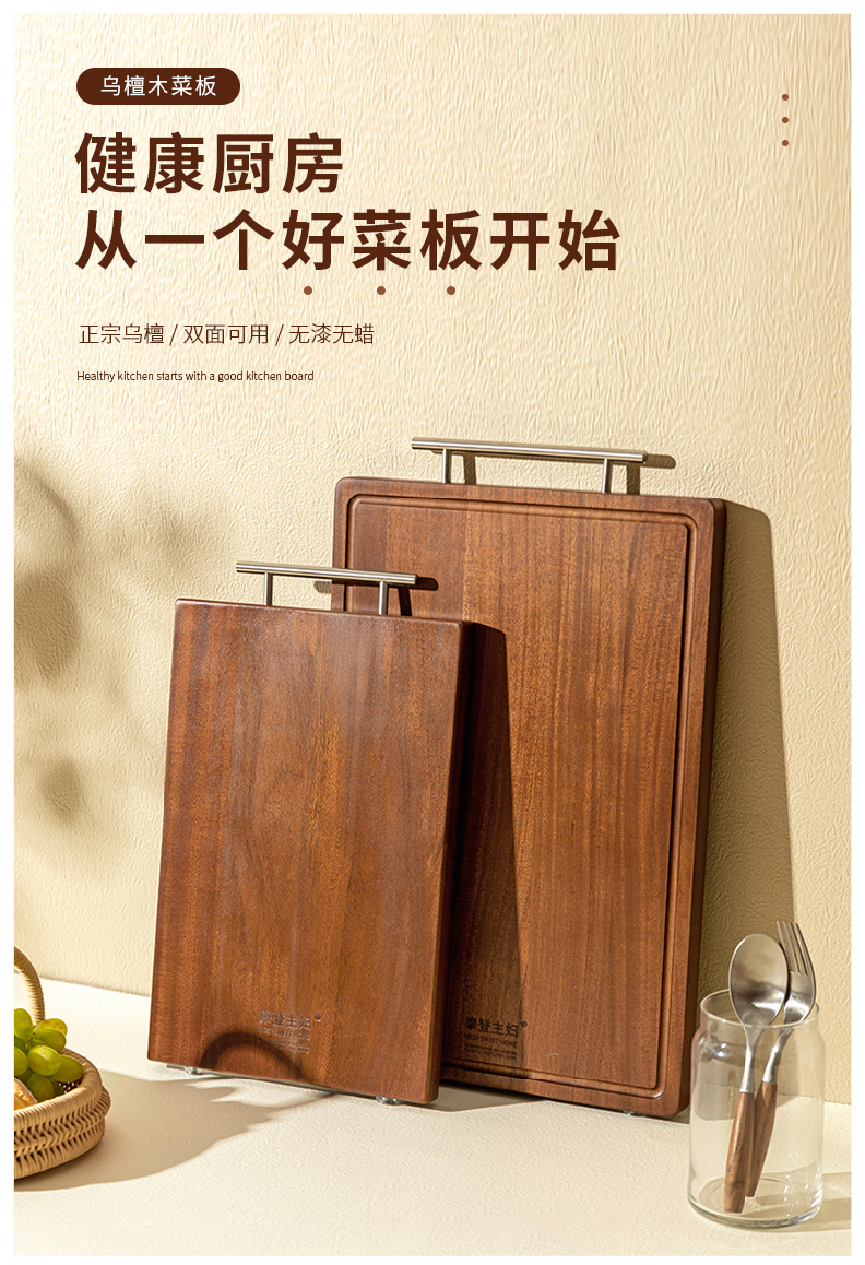 摩登主妇乌檀木菜板防霉家用实木粘板案板切菜板刀板水果砧板 商品图2