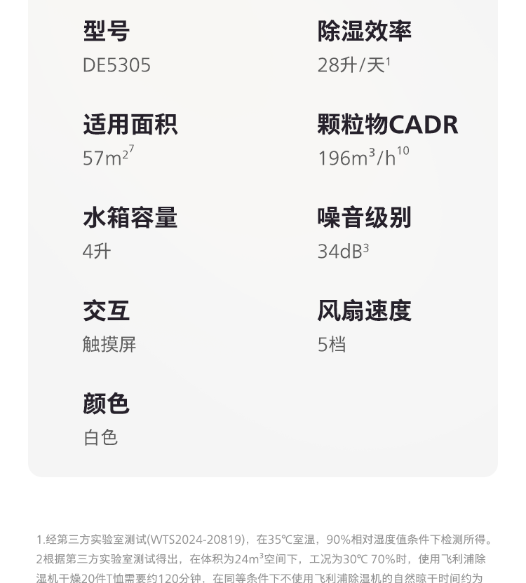 PHILIPS飞利浦家用智能3合1空气除湿机(DE5305)