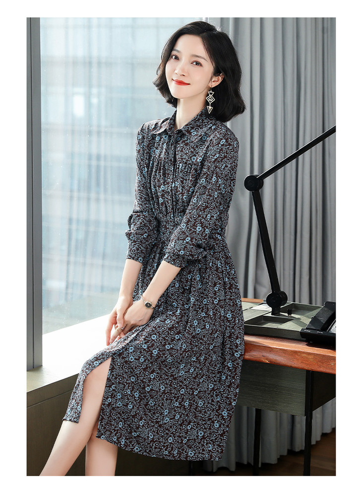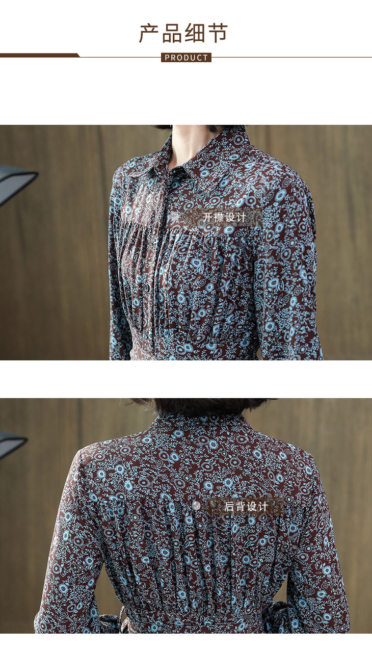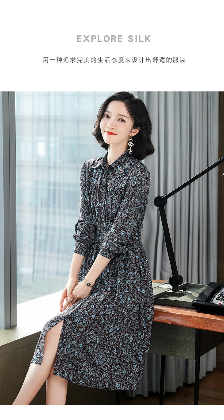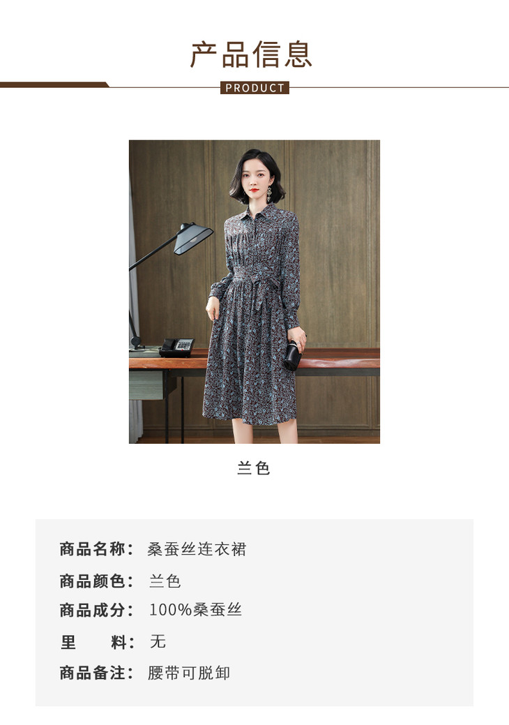 HR 7027-2真丝连衣裙桑蚕丝小碎花连衣裙