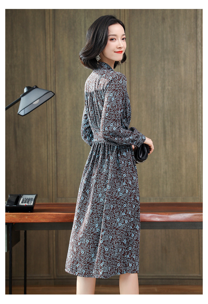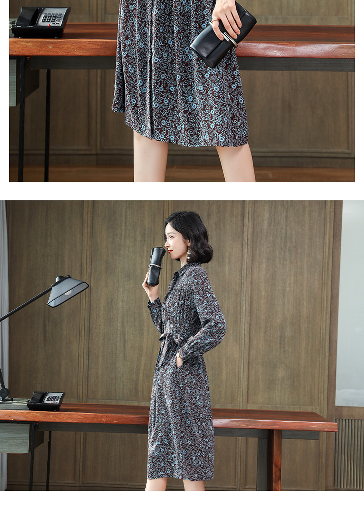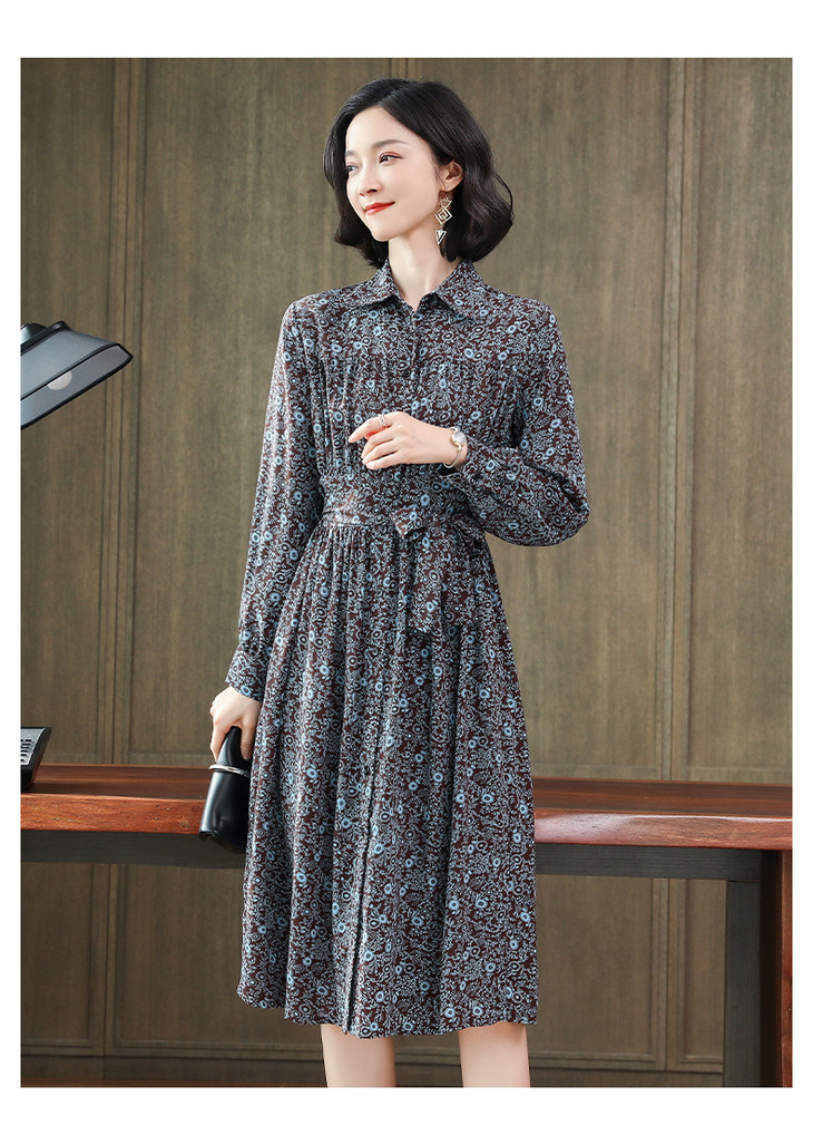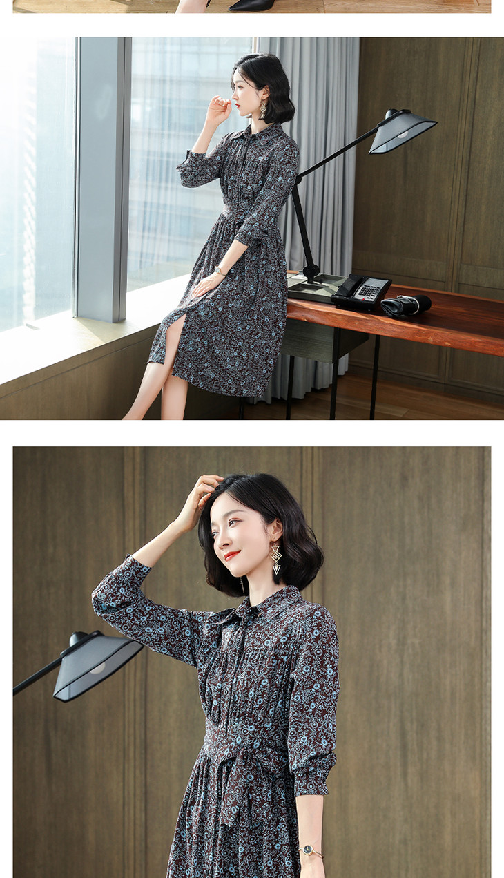 HR 7027-2真丝连衣裙桑蚕丝小碎花连衣裙