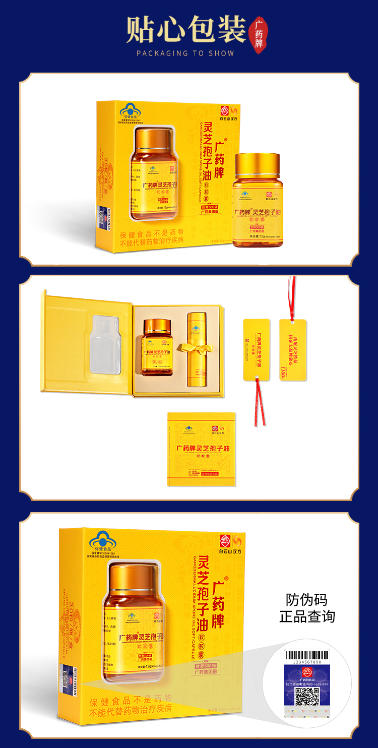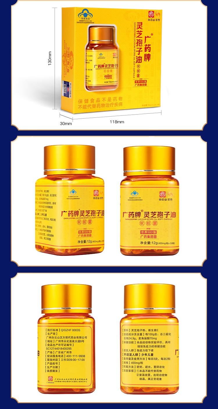 白云山汉方广药牌灵芝孢子油软胶囊400mg/粒*30粒/盒