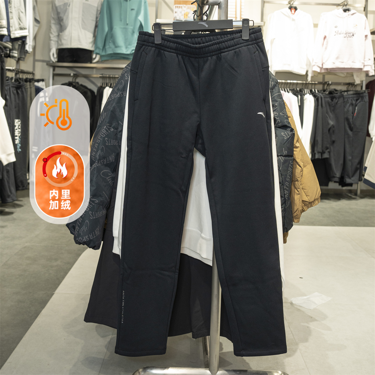 安踏运动长裤女2025冬季新款加绒保暖针织裤直筒裤卫裤162547313N