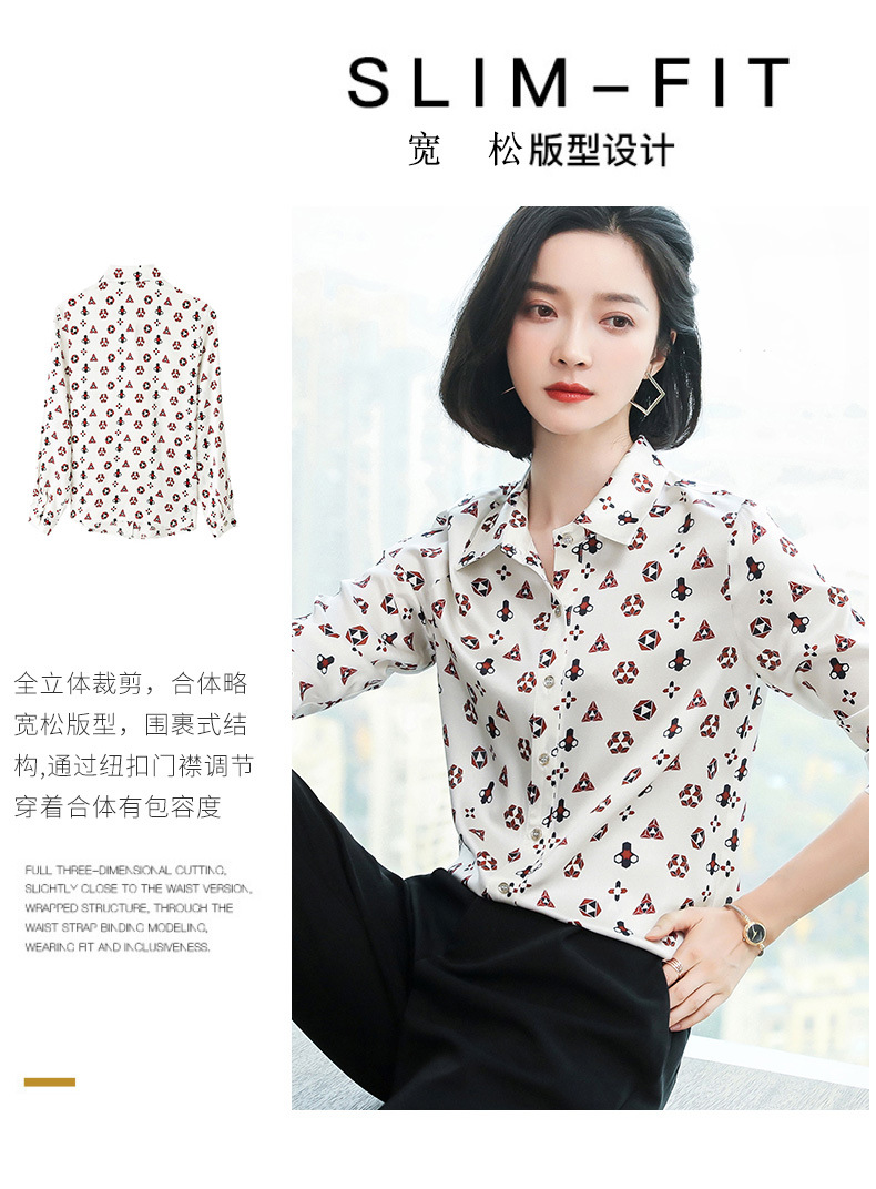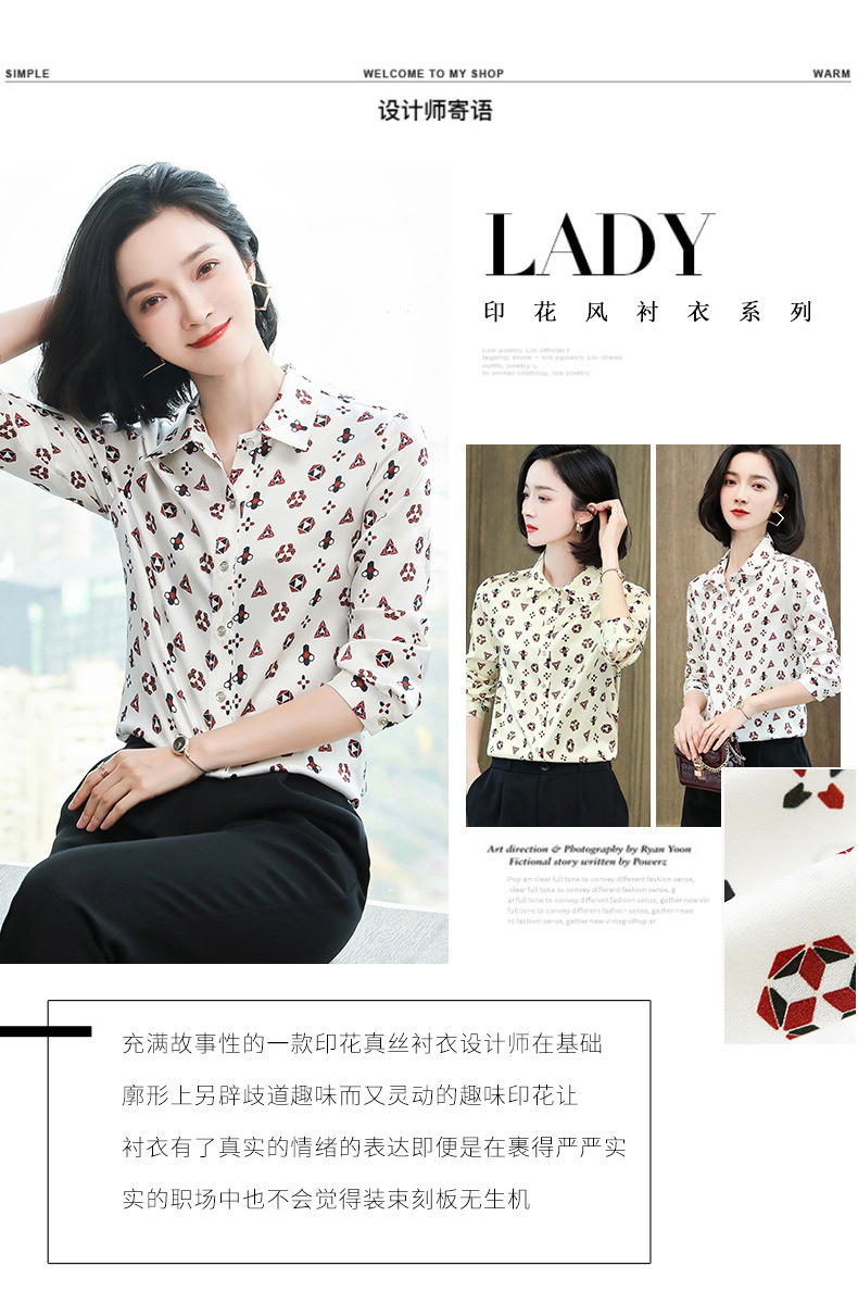 上海旗袍厂ASE-9086立领印花气质真丝衬衫