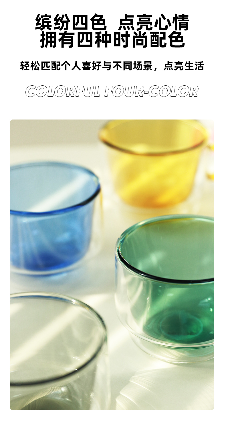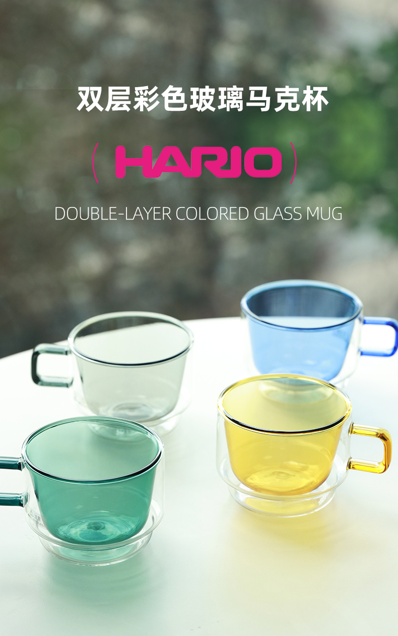 【HARIO】双层彩色玻璃马克杯居家用ins高颜值办公室杯HCDM