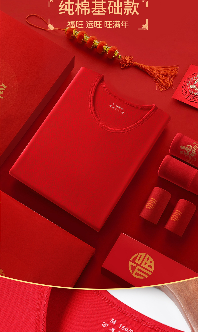 JY-102-107秋冬新本命年大红色结婚男士纯棉保暖内衣套装全棉毛衫秋衣秋裤女
