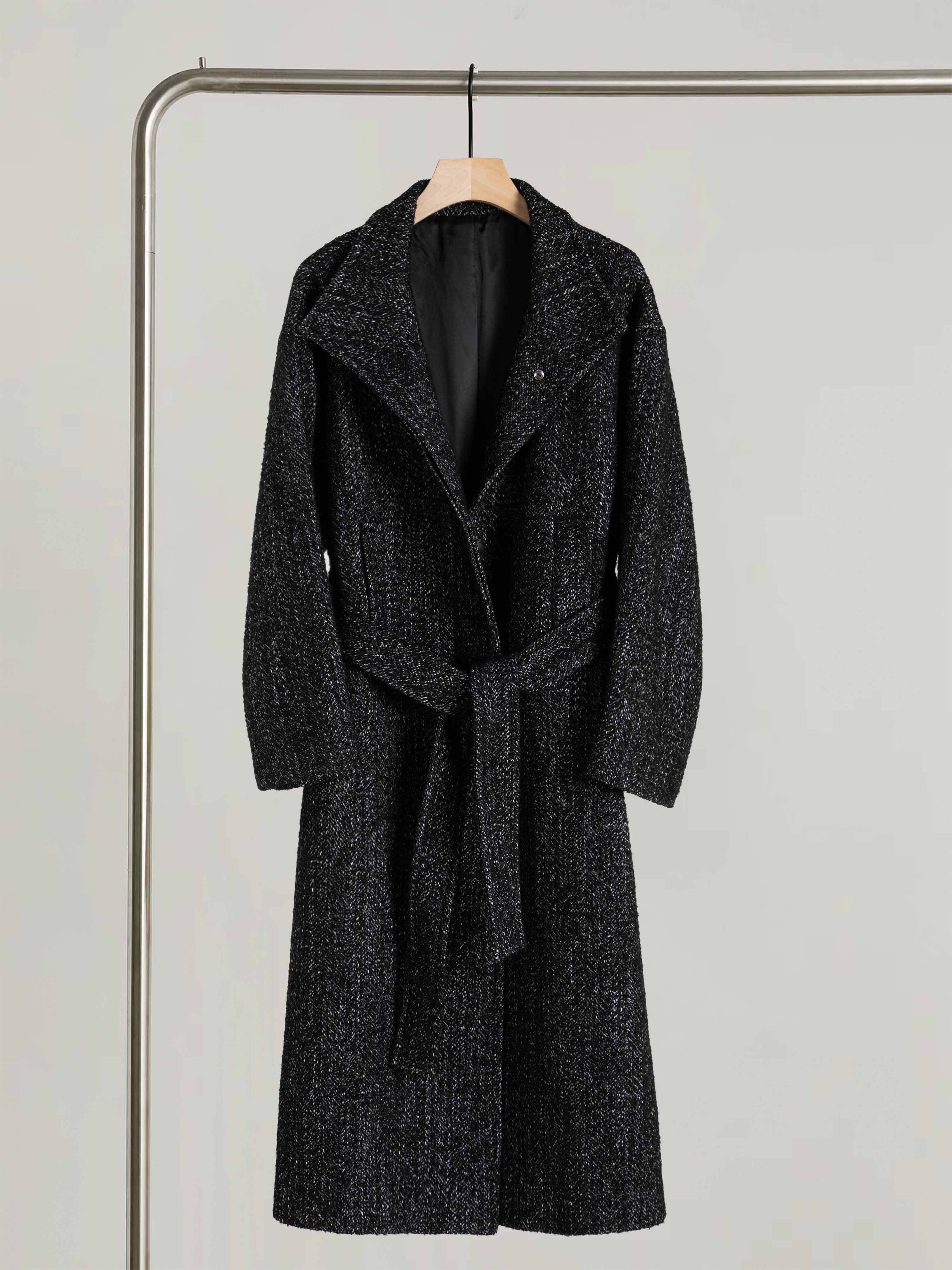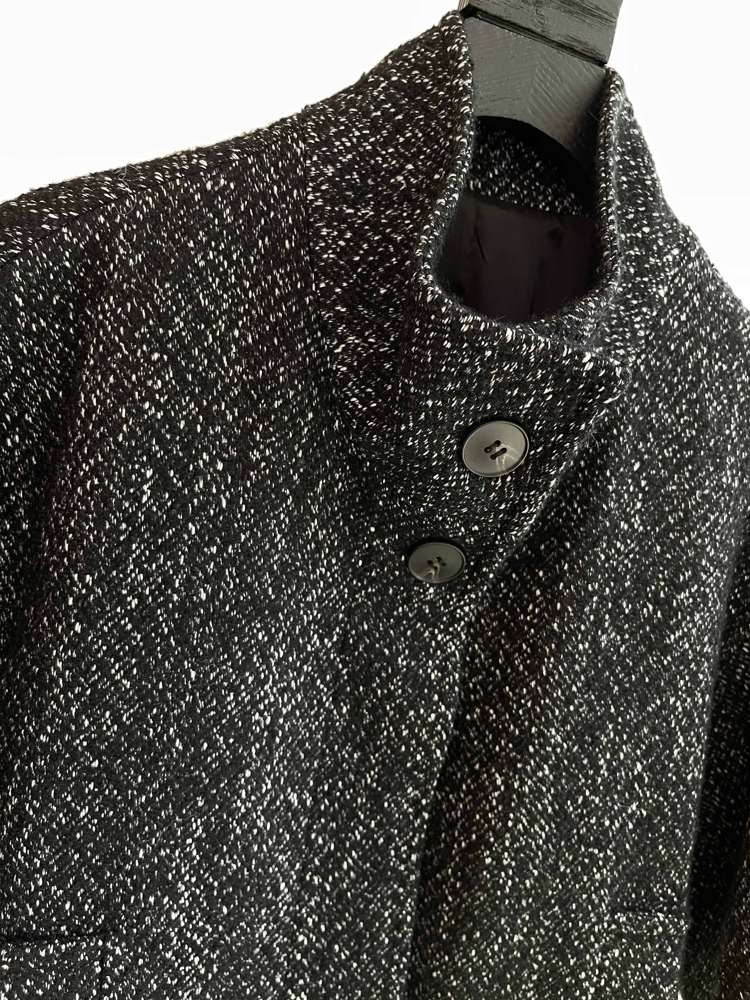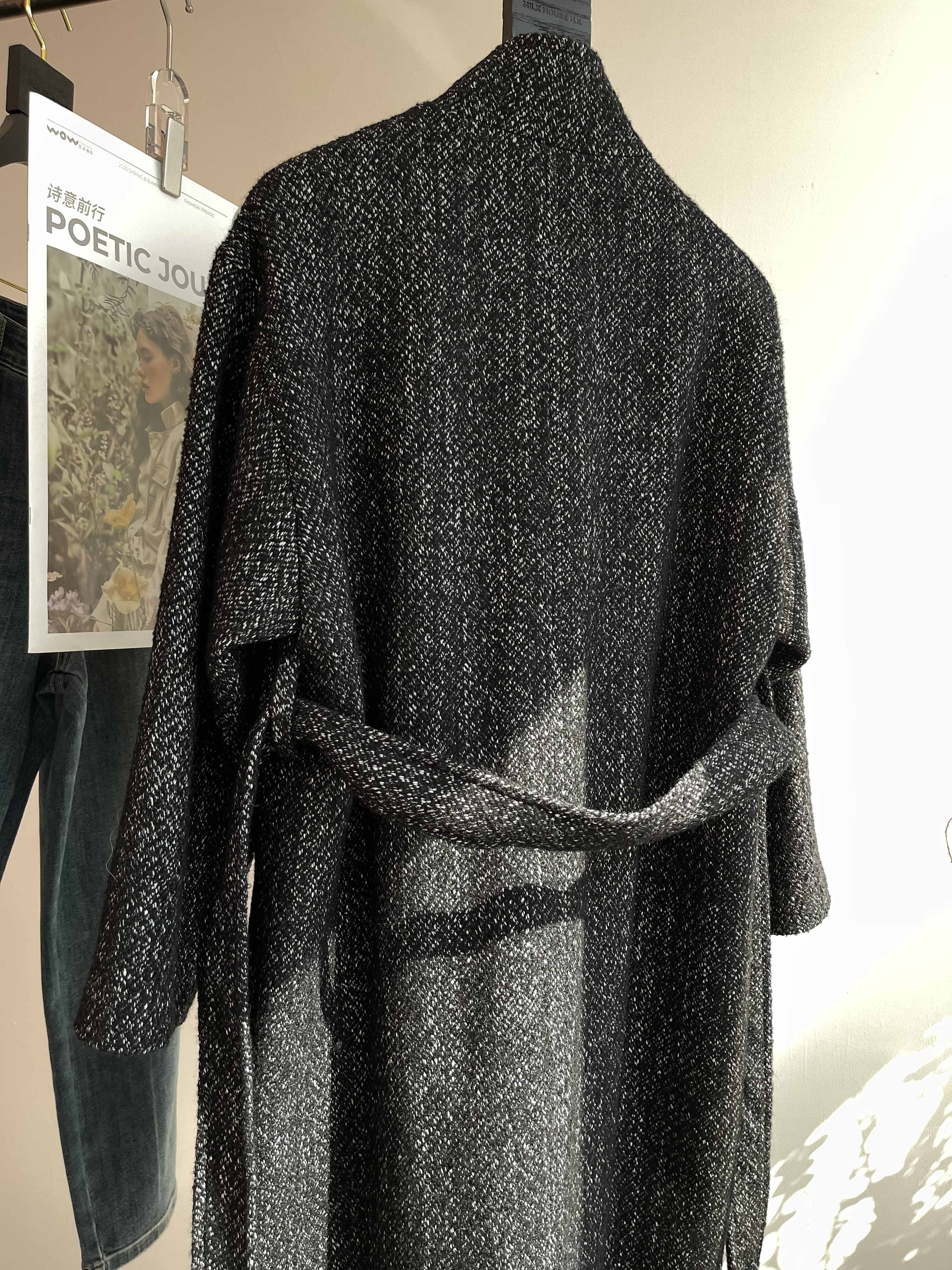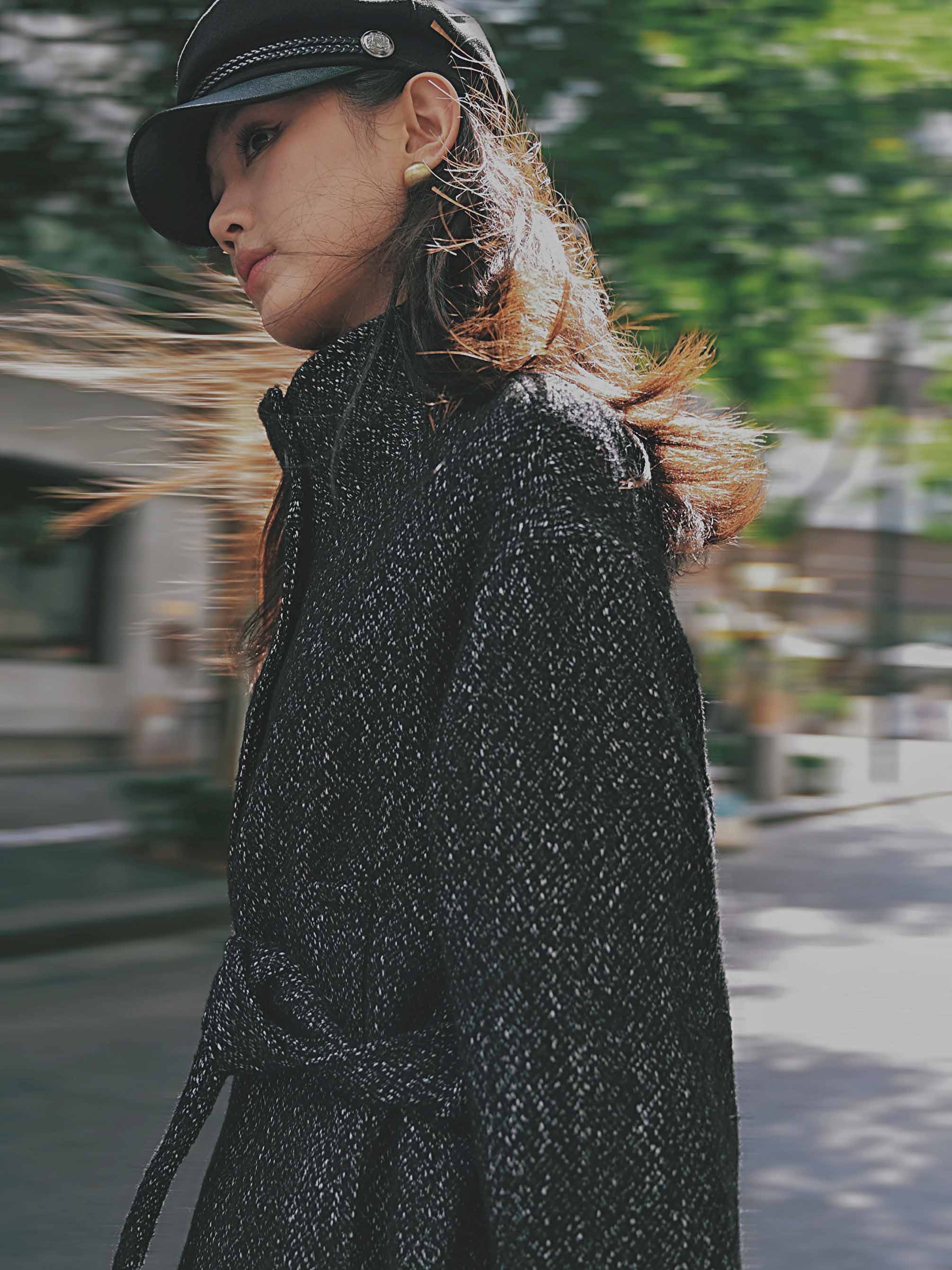 经典百搭的灰黑杂色风衣,立领帅气高级,直线门襟的穿搭更显修长