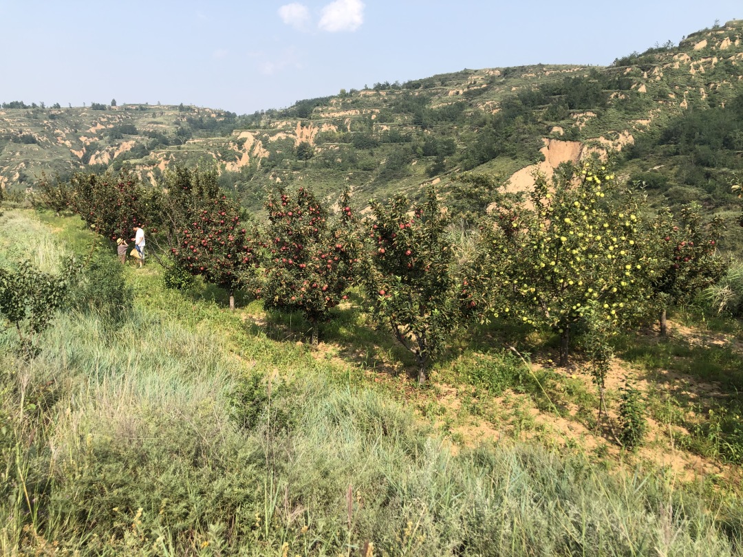 果园内靠人工除草,或者间种豆子跟玉米充当绿肥,村民们因地制宜,发展无水农业,不使用地膜覆盖,保留杂草或者间种作物保水并改良土壤。