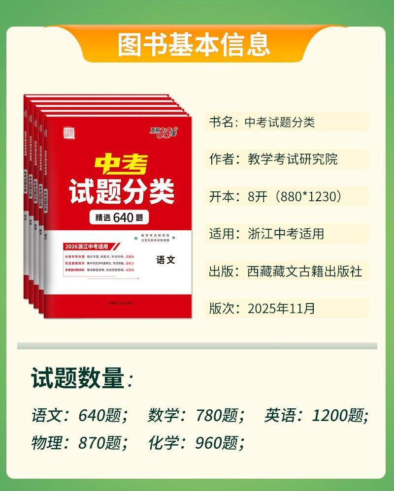 2026中考试题分类天利38套语文数学英语社会浙江中考适用九年级中考总复习必刷卷试题