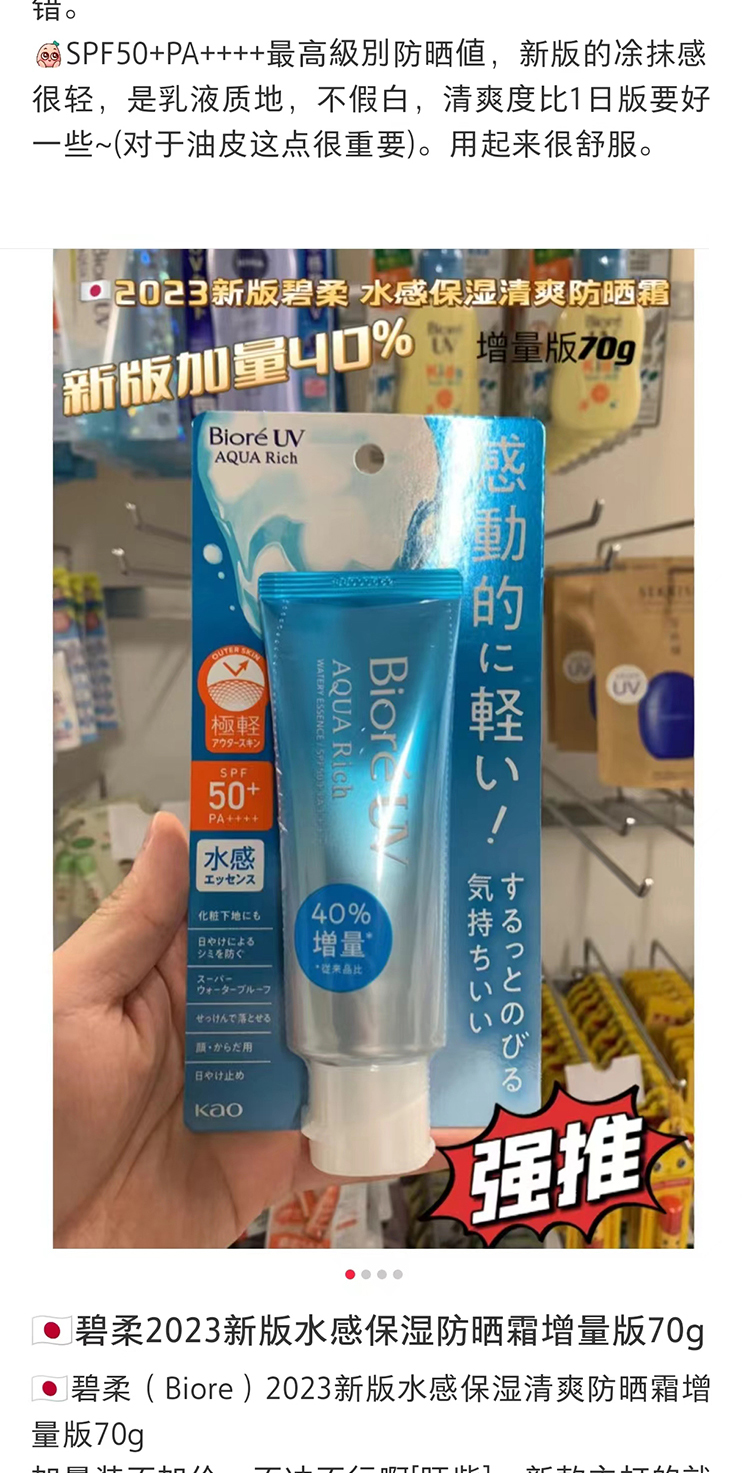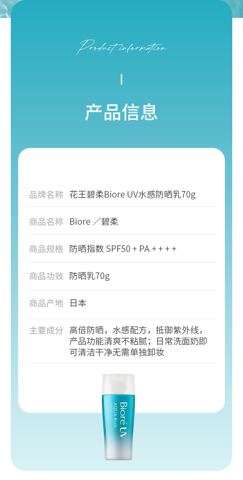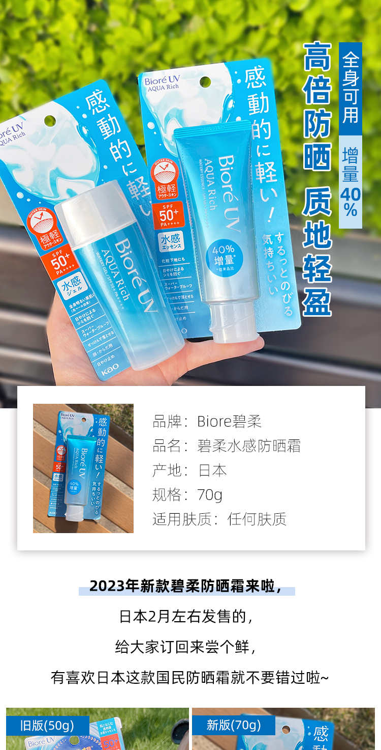 新版Biore/碧柔水感防晒霜 70g/70ml 清爽水润