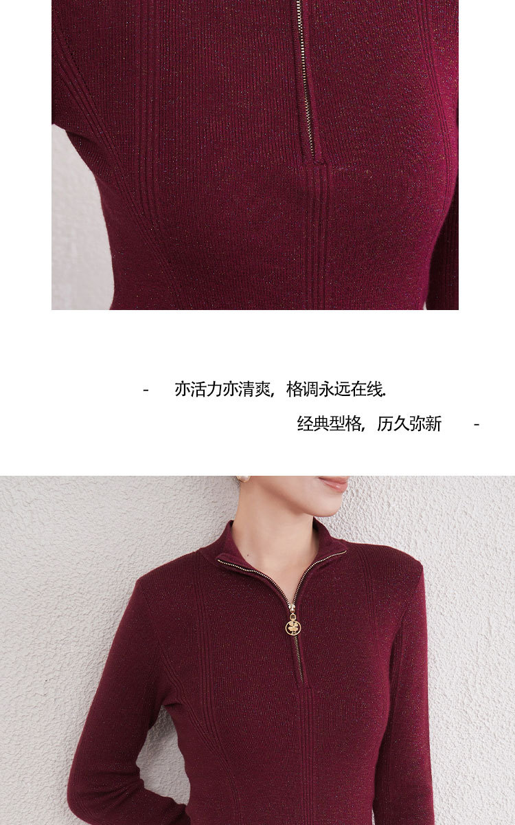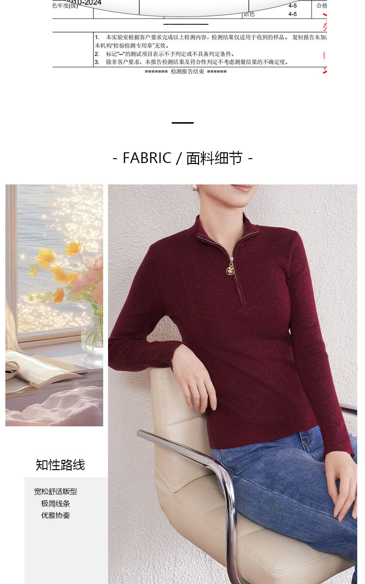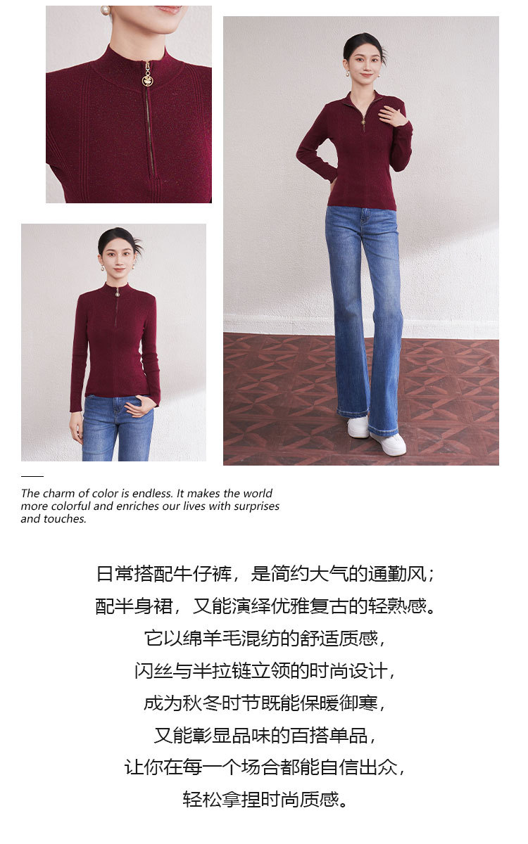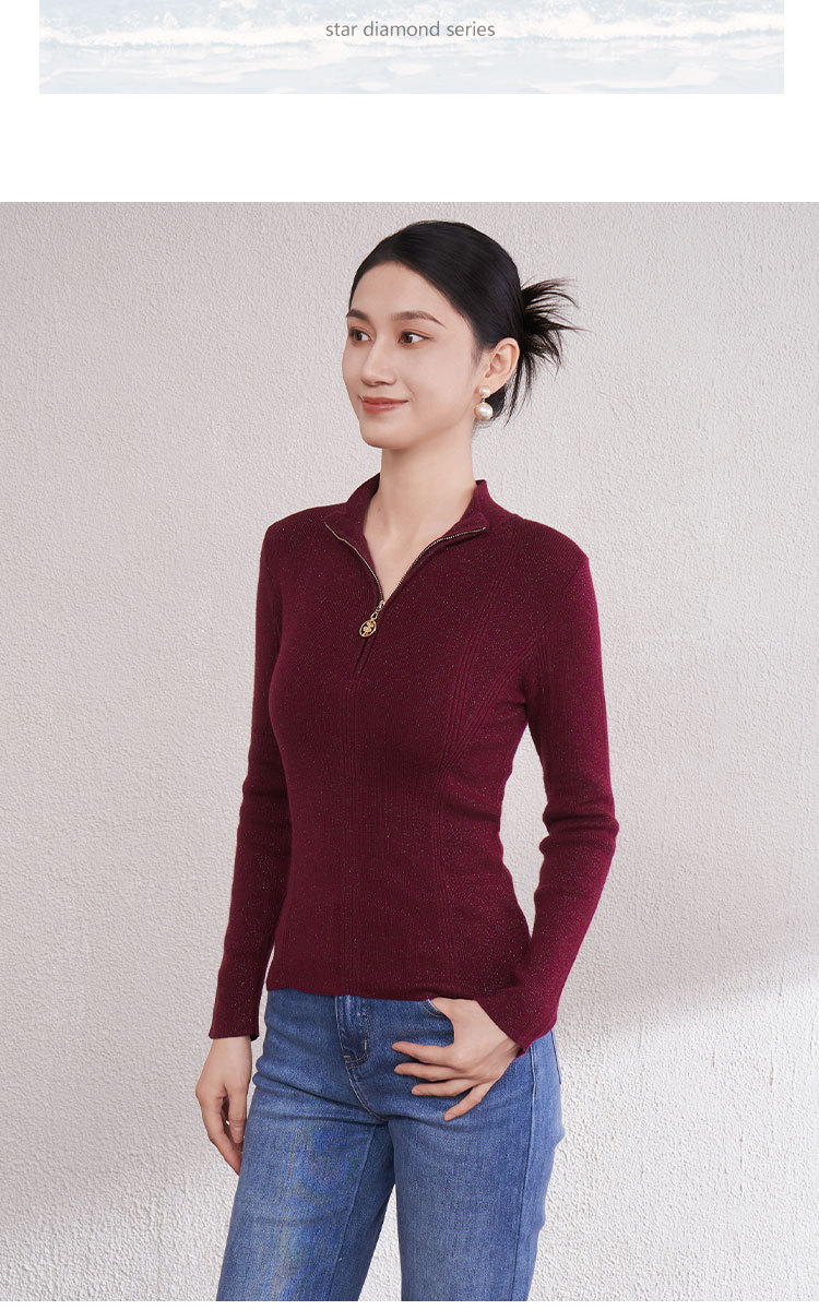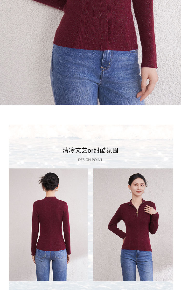 「自」全新升级【铂金会员293/天猫399/差价106】(04912)洛诗琳新款半拉链羊毛针织衫2025秋冬气质修身显瘦百搭上衣