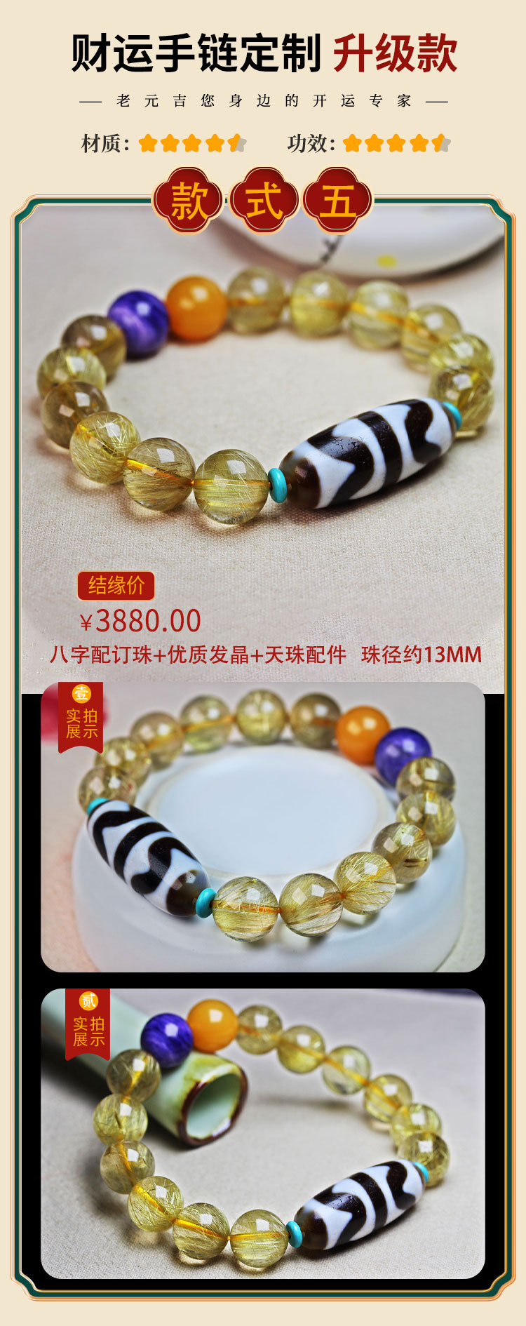 【元吉星辰cai运手链男款】单圈多圈手串