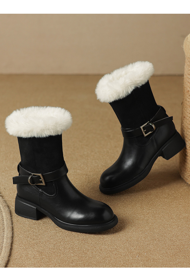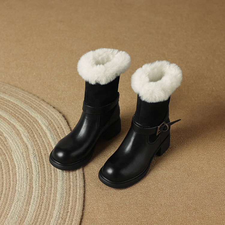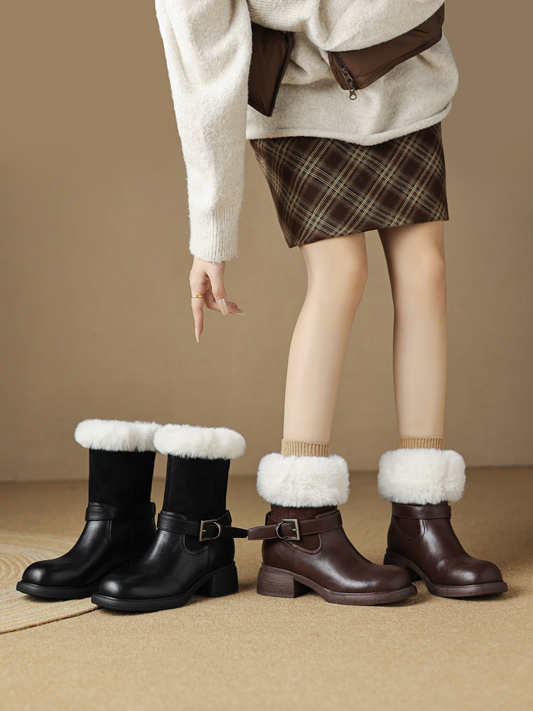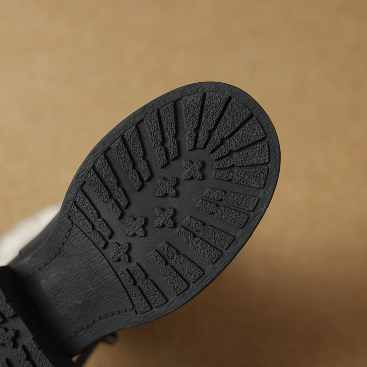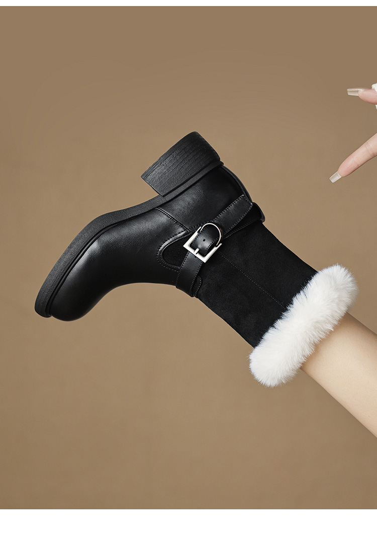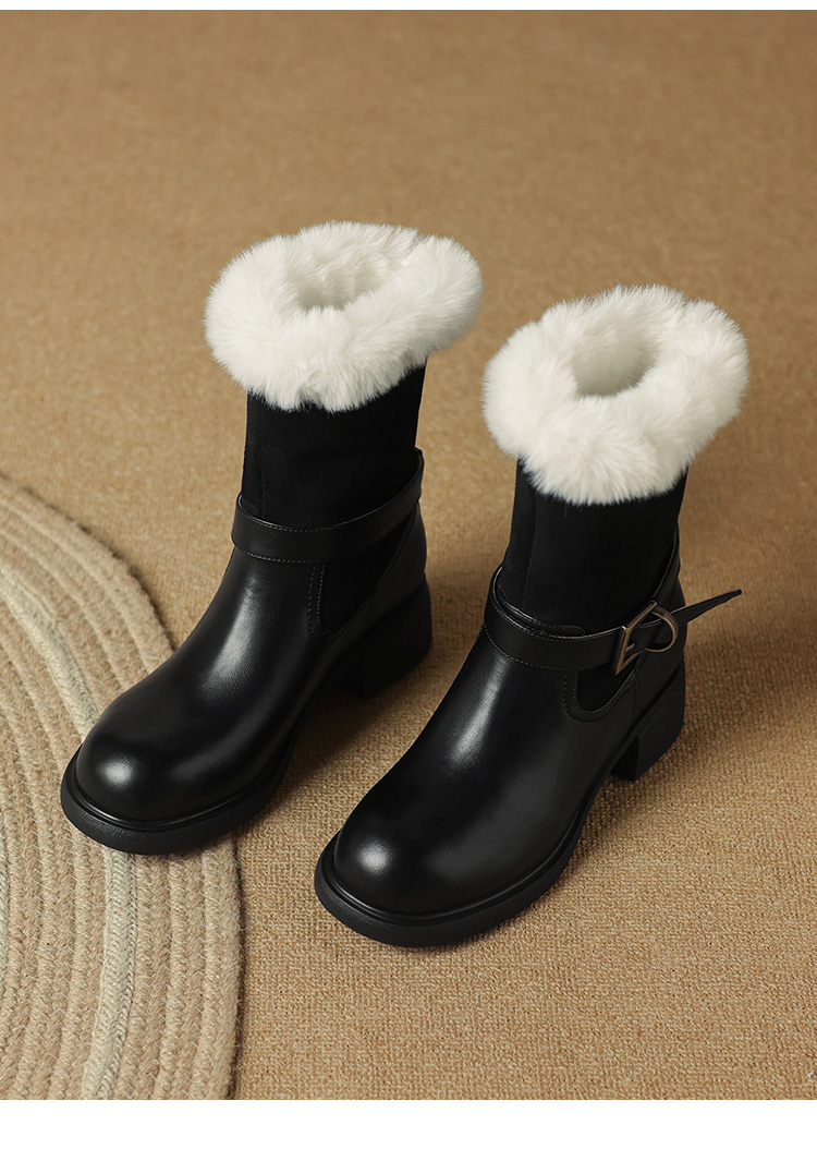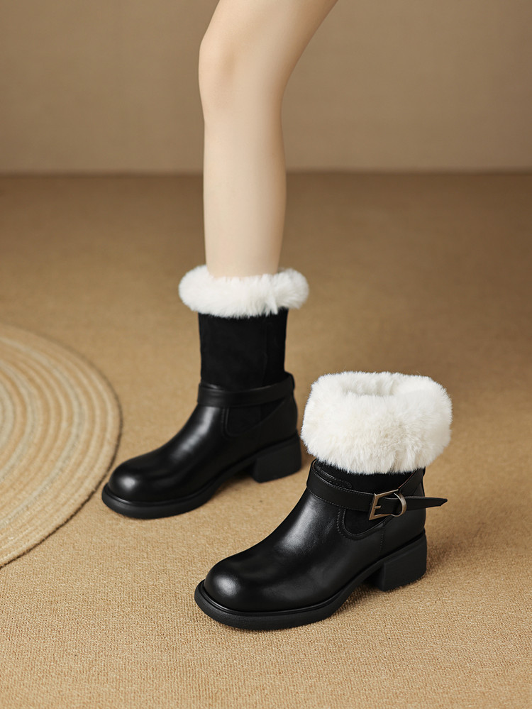 【预售5天】真皮厚底加绒马丁靴女新款冬中跟真皮黑色翻毛保暖短靴雪地靴LD&7526