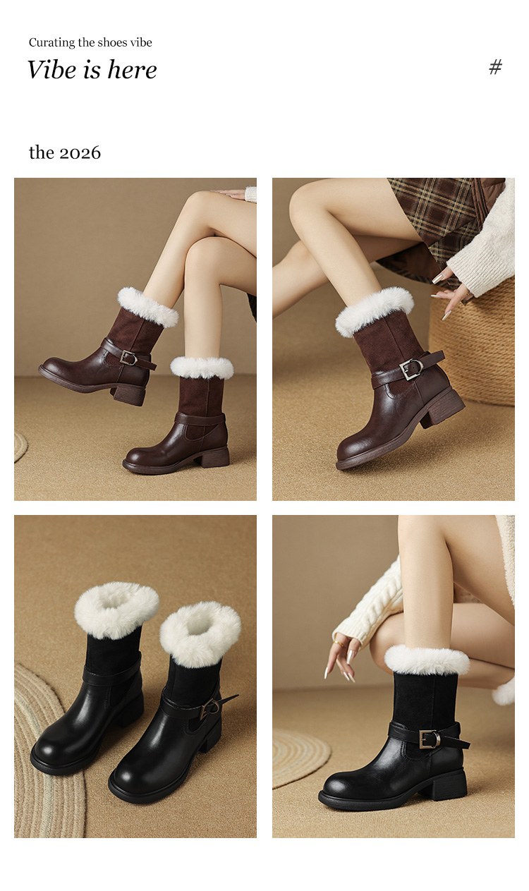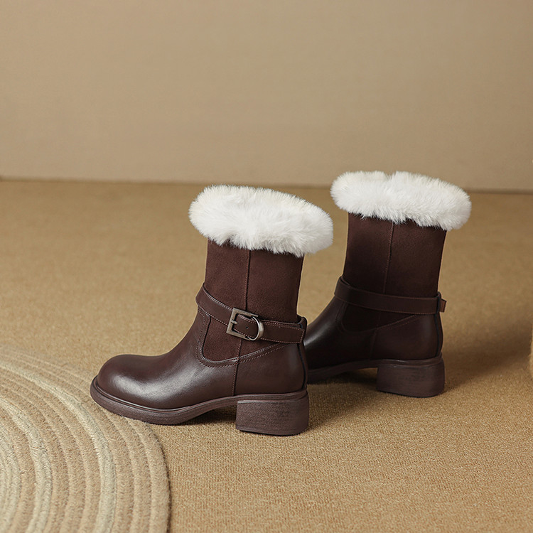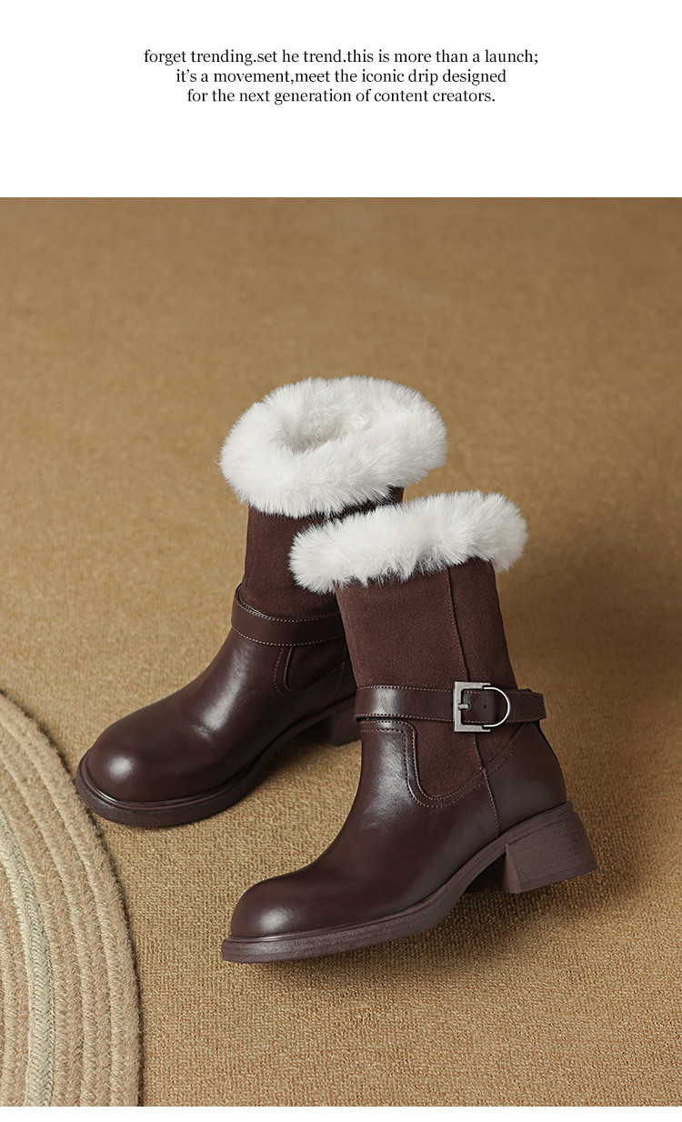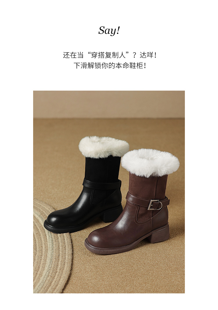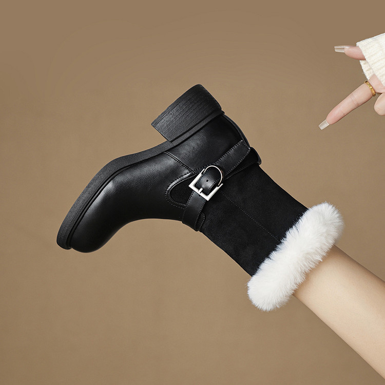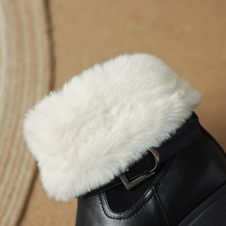 【预售5天】真皮厚底加绒马丁靴女新款冬中跟真皮黑色翻毛保暖短靴雪地靴LD&7526