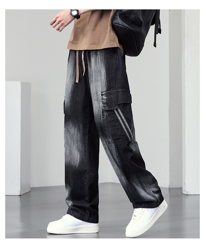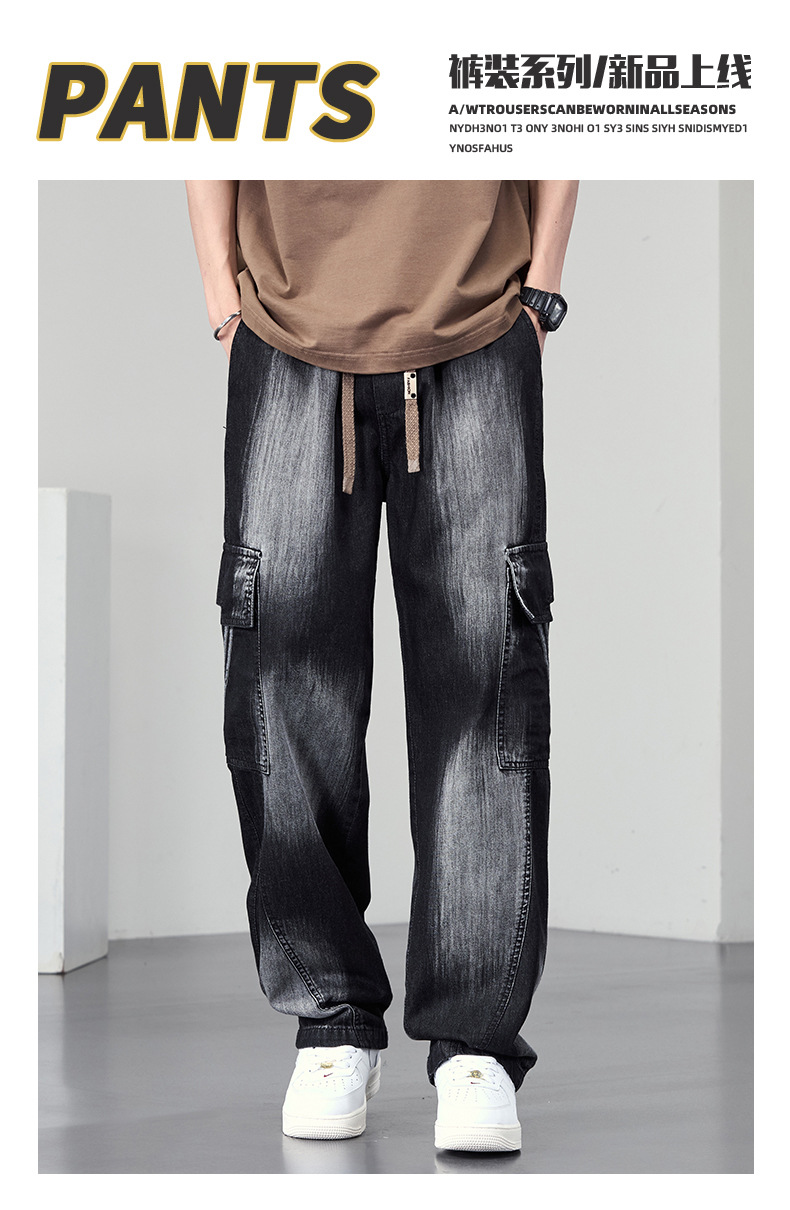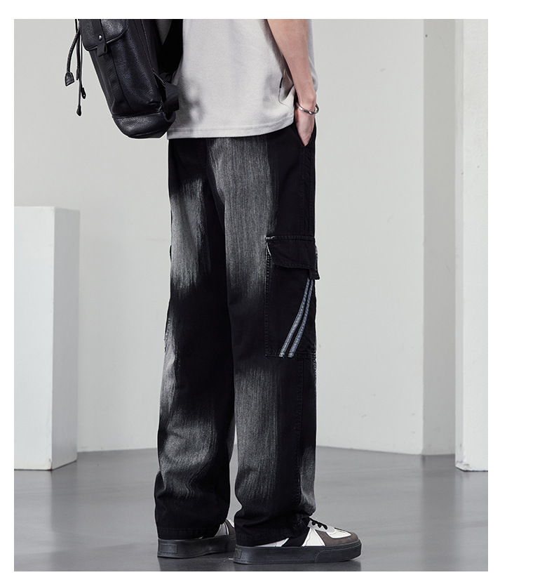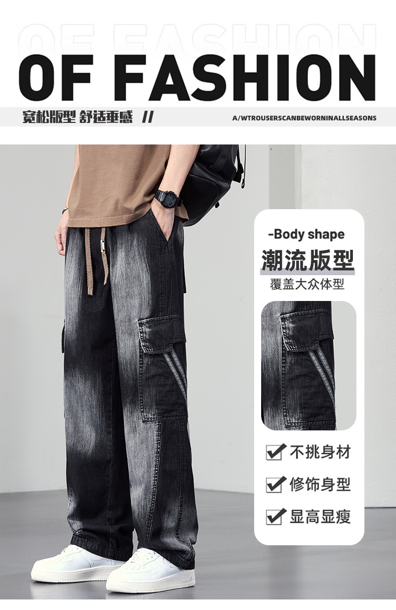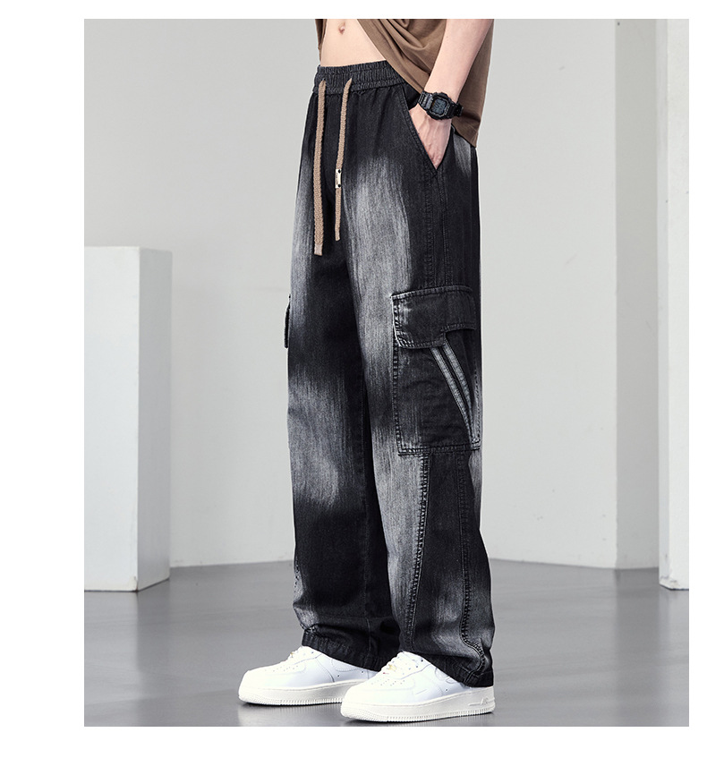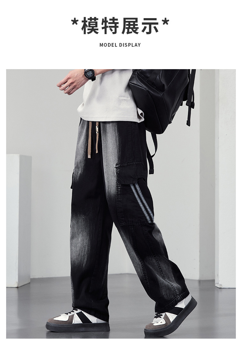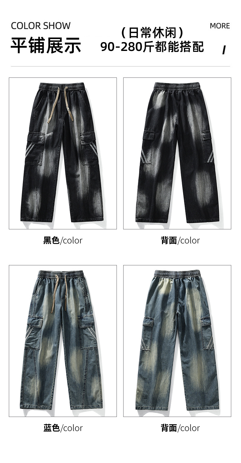 【DYF】大依优型大码直筒牛仔裤水洗渐变宽松大码男美式胖子裤子