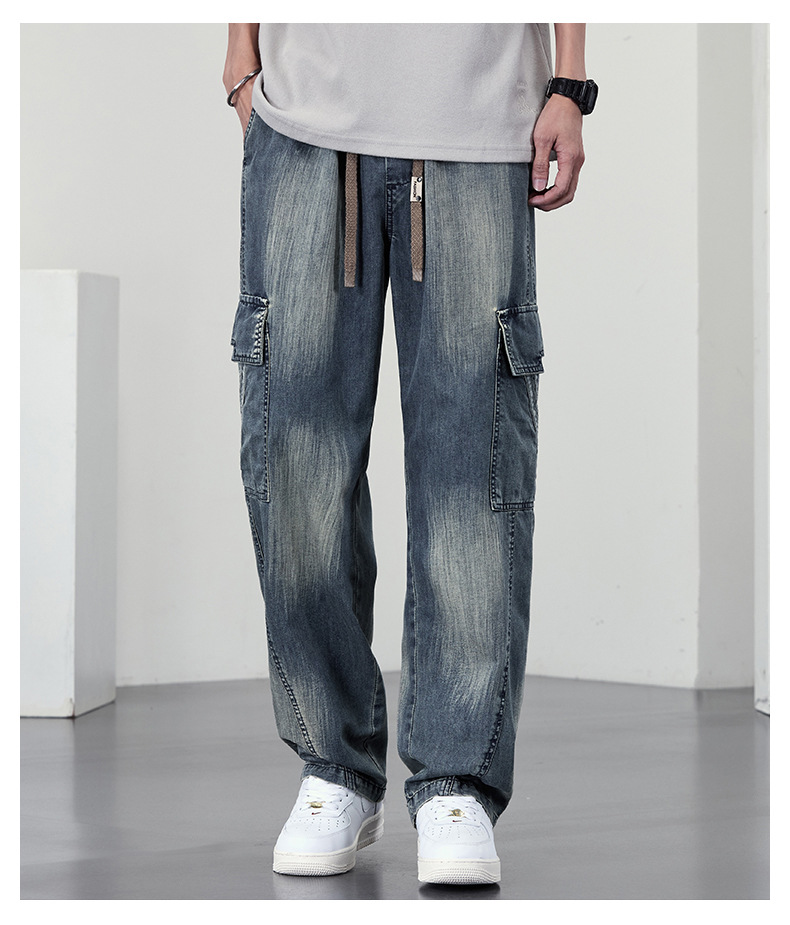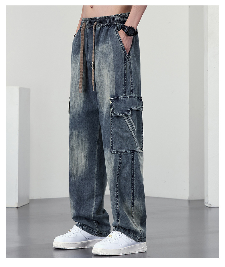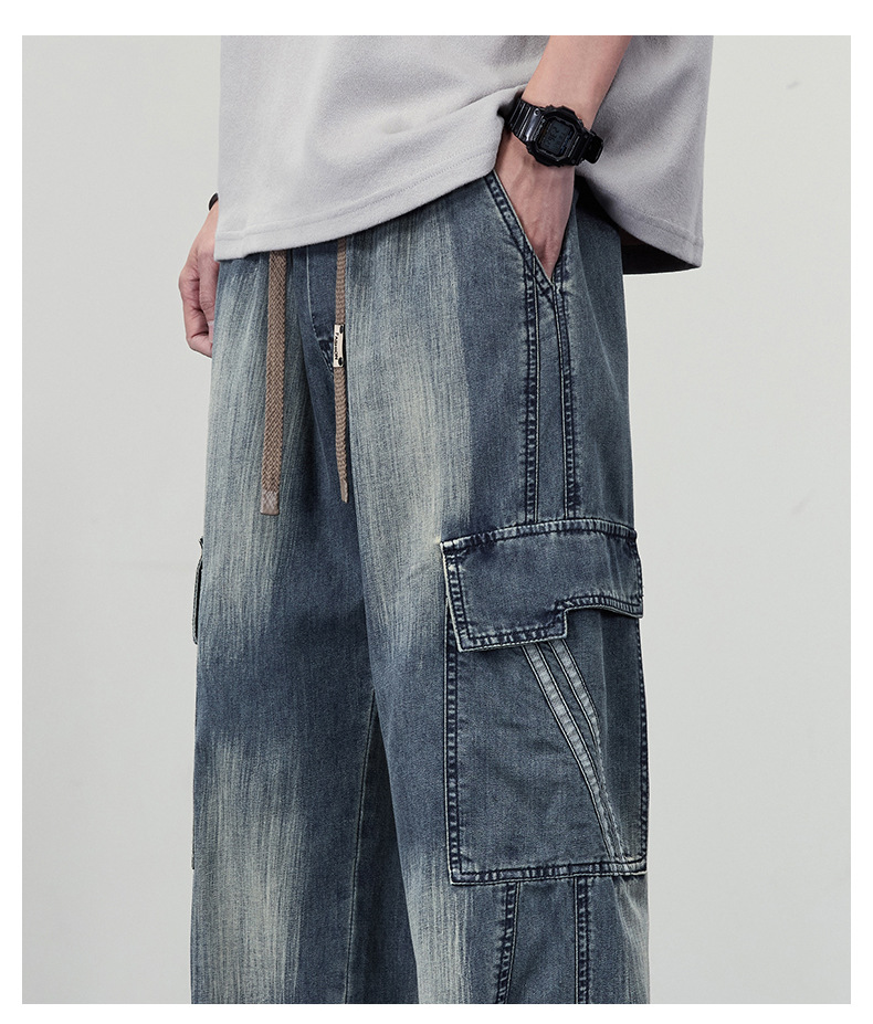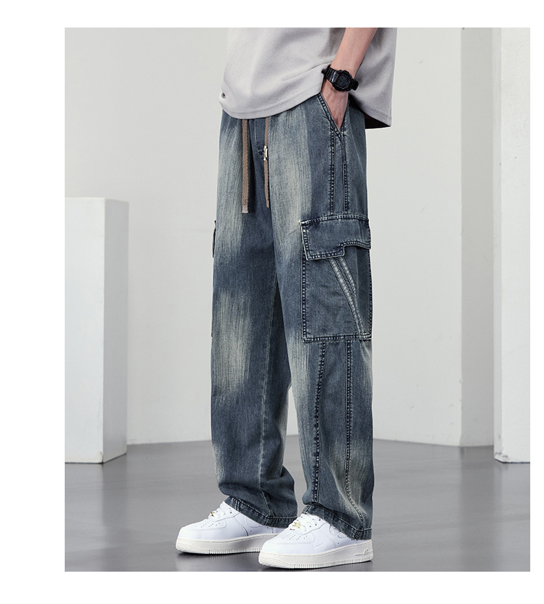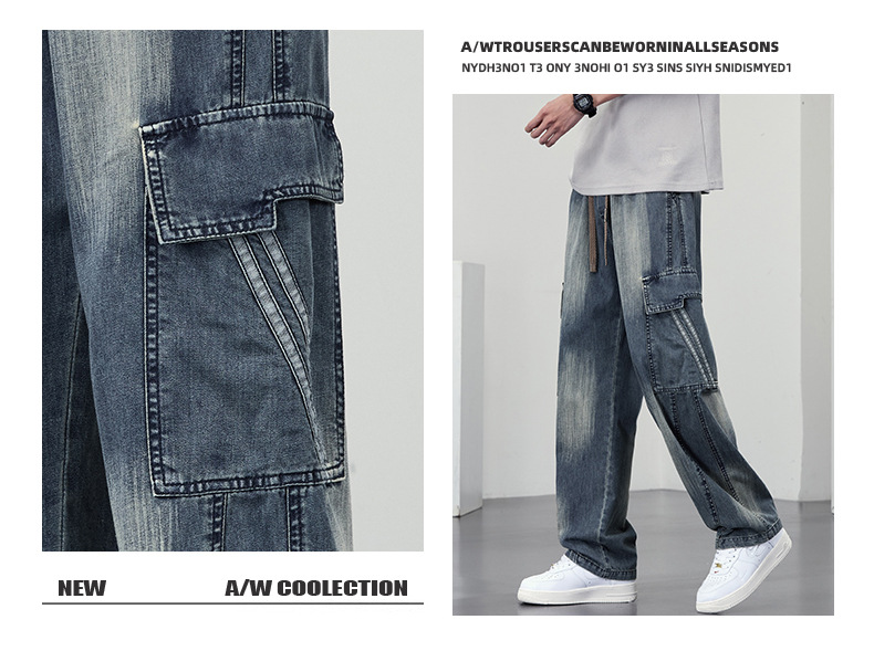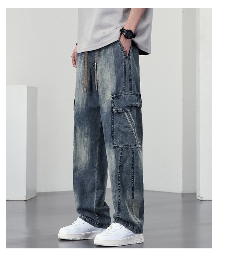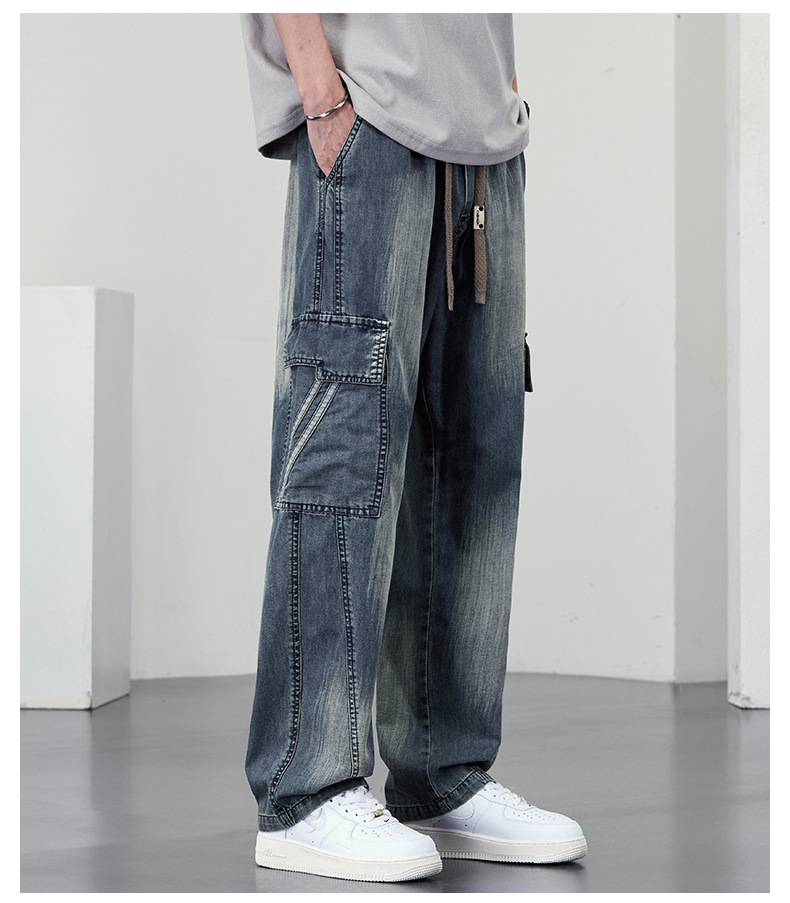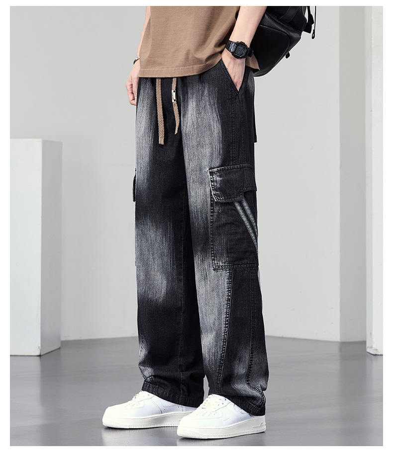 【DYF】大依优型大码直筒牛仔裤水洗渐变宽松大码男美式胖子裤子