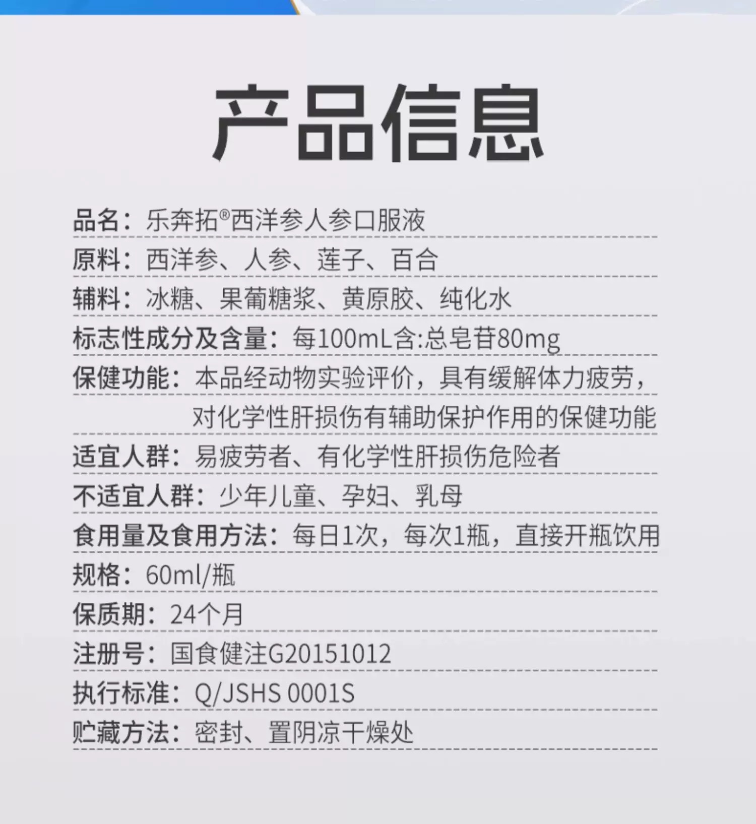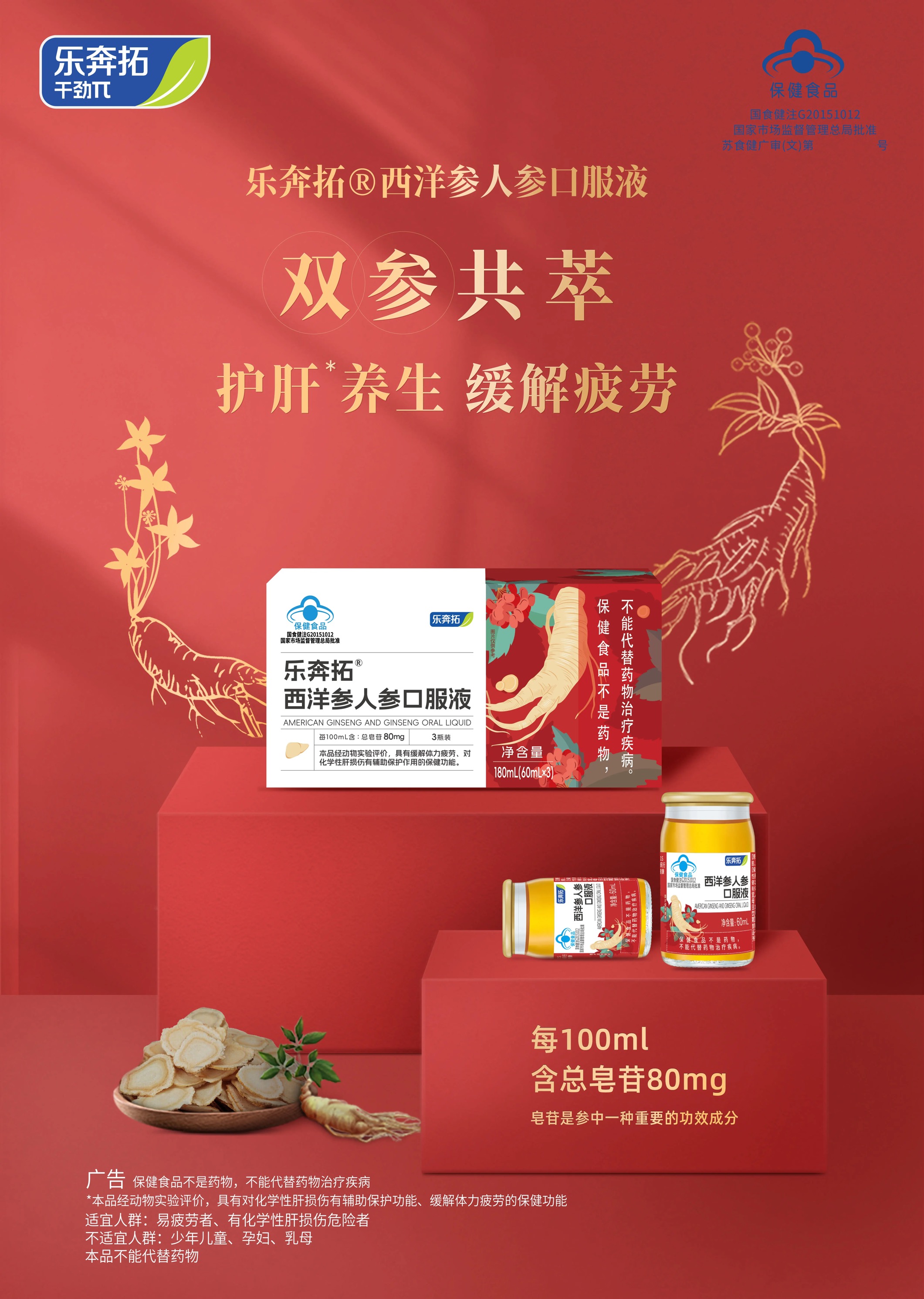 乐奔拓西洋参人参饮加班熬夜缓解疲劳养肝喝酒应酬护肝