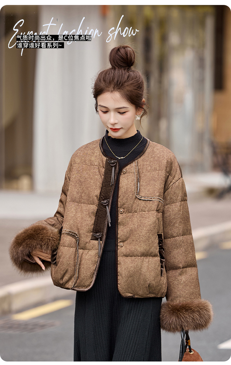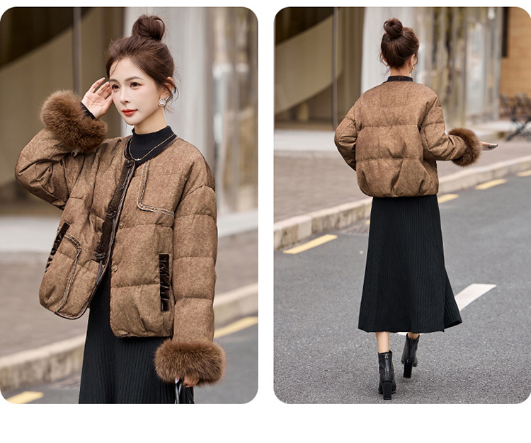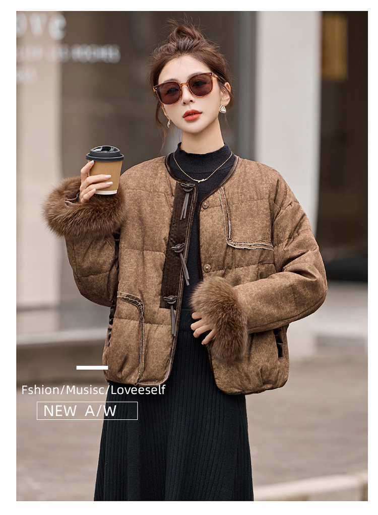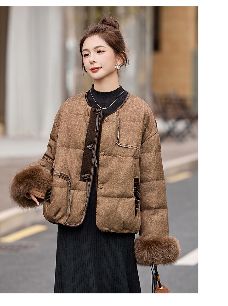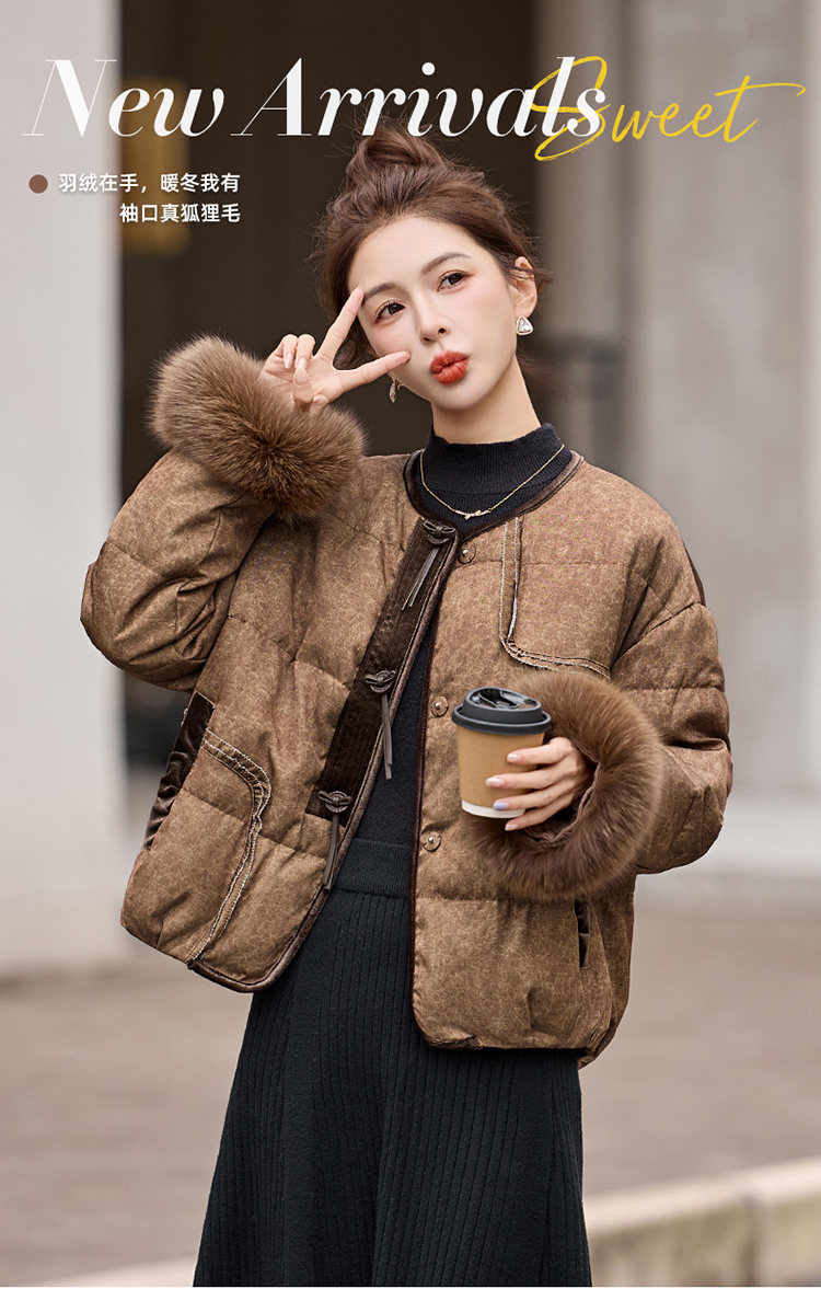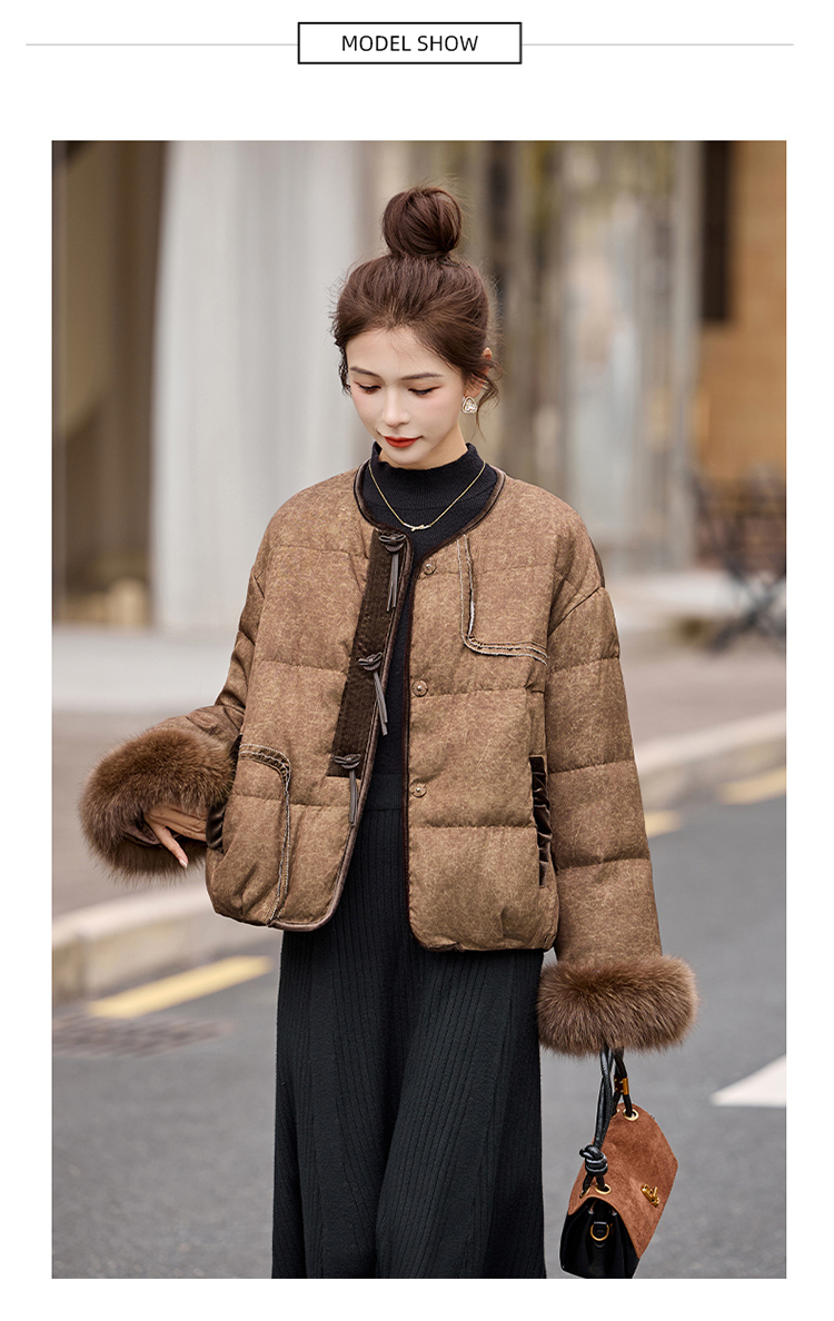 新中式可脱卸真狐狸毛袖口羽绒服,显瘦轻奢国风气质外套HR-AQHUI8139