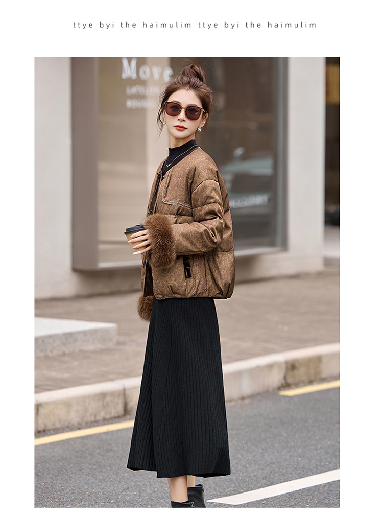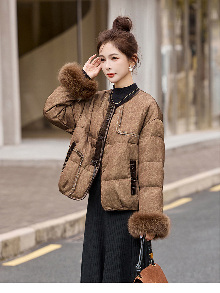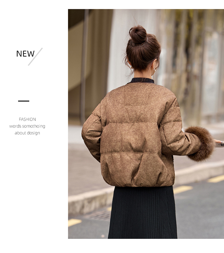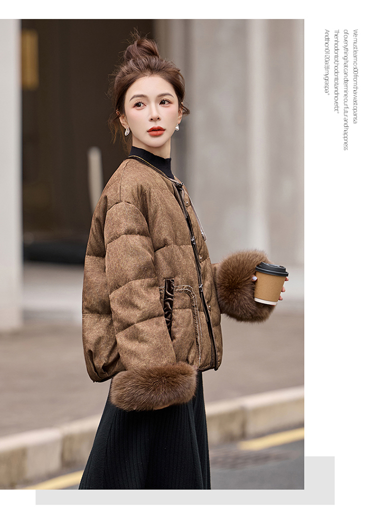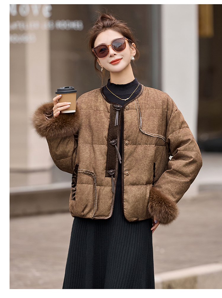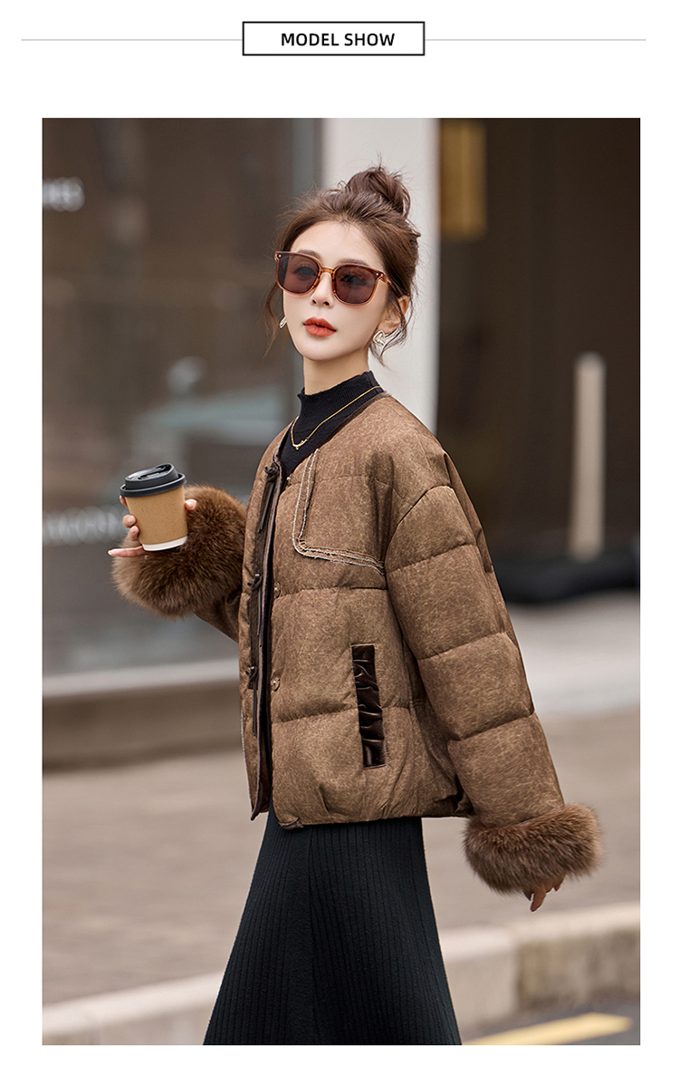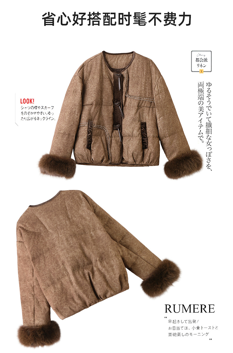 新中式可脱卸真狐狸毛袖口羽绒服,显瘦轻奢国风气质外套HR-AQHUI8139