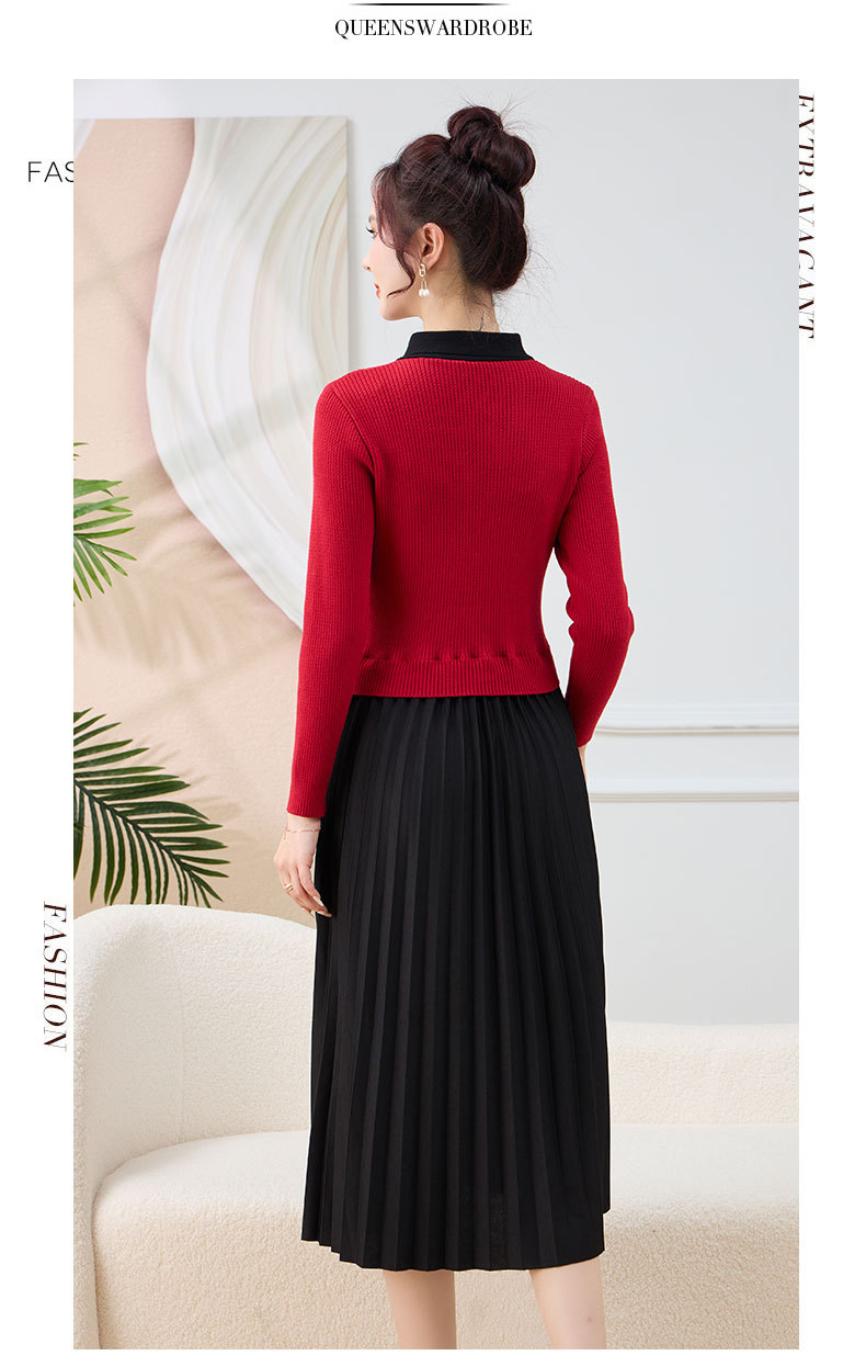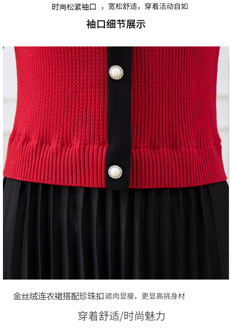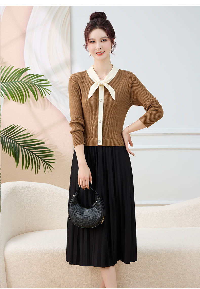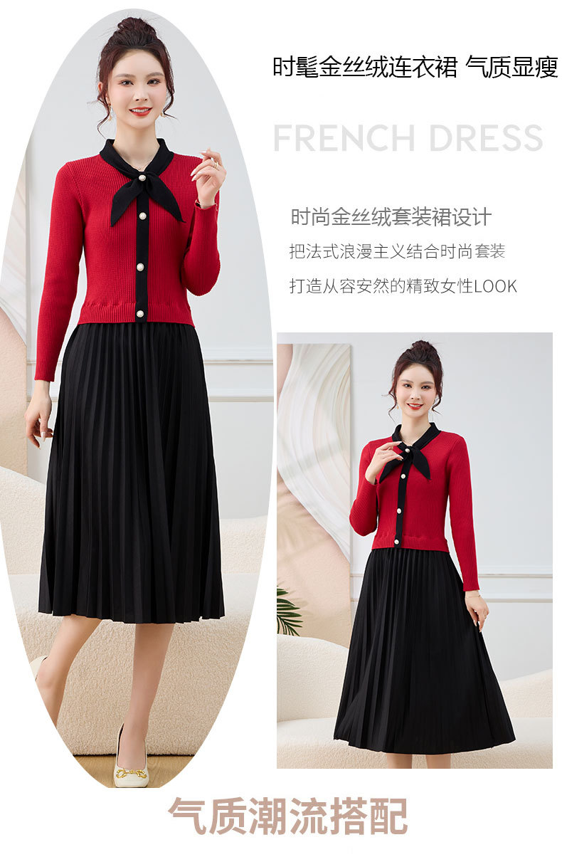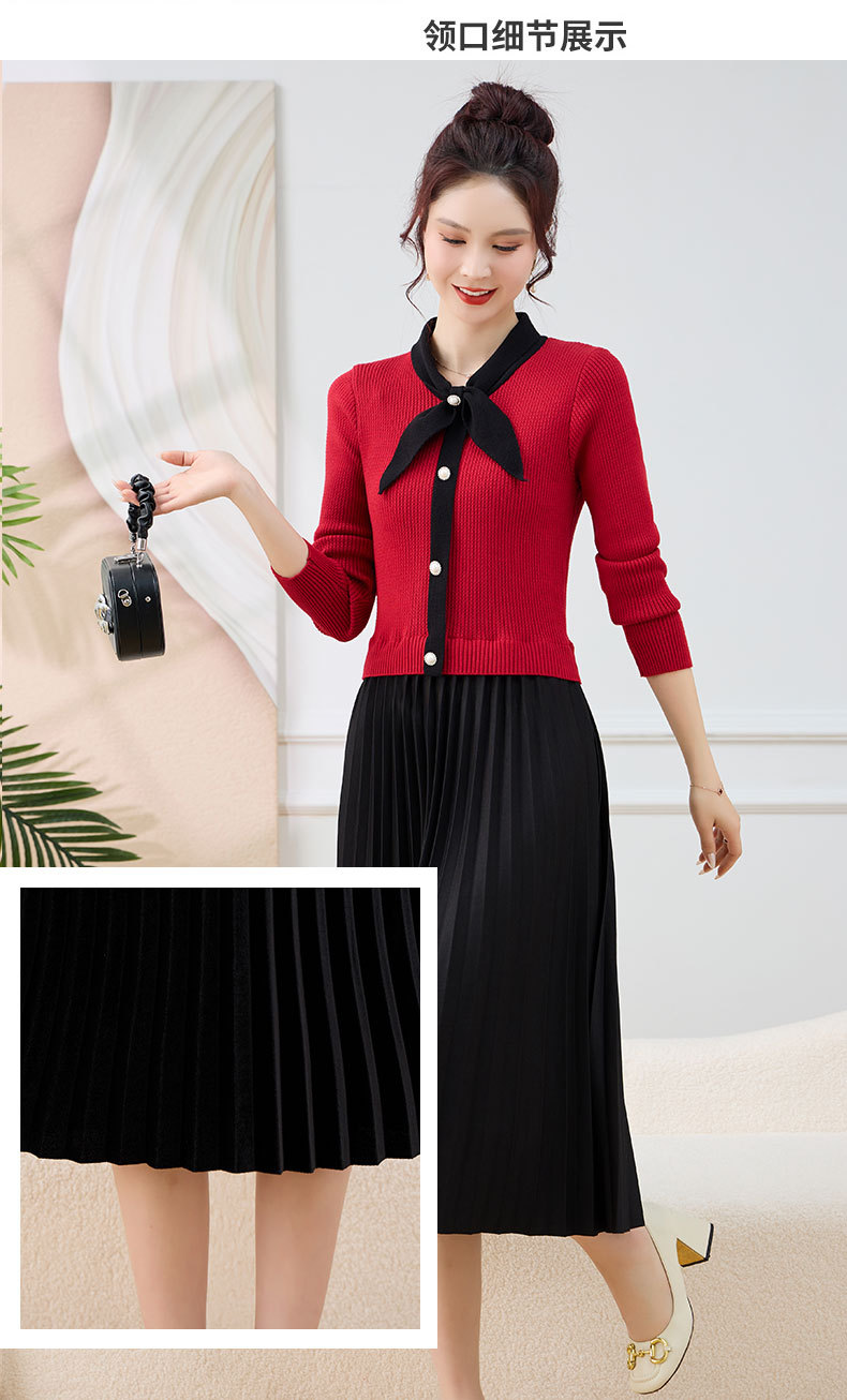 针织拼接假两件连衣裙