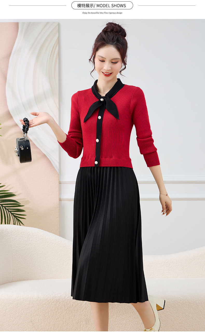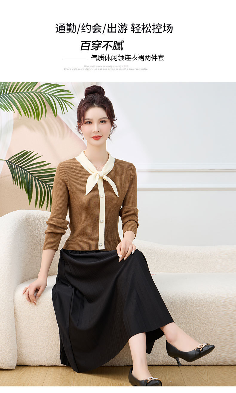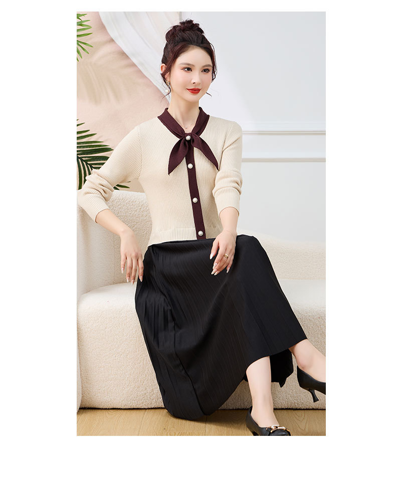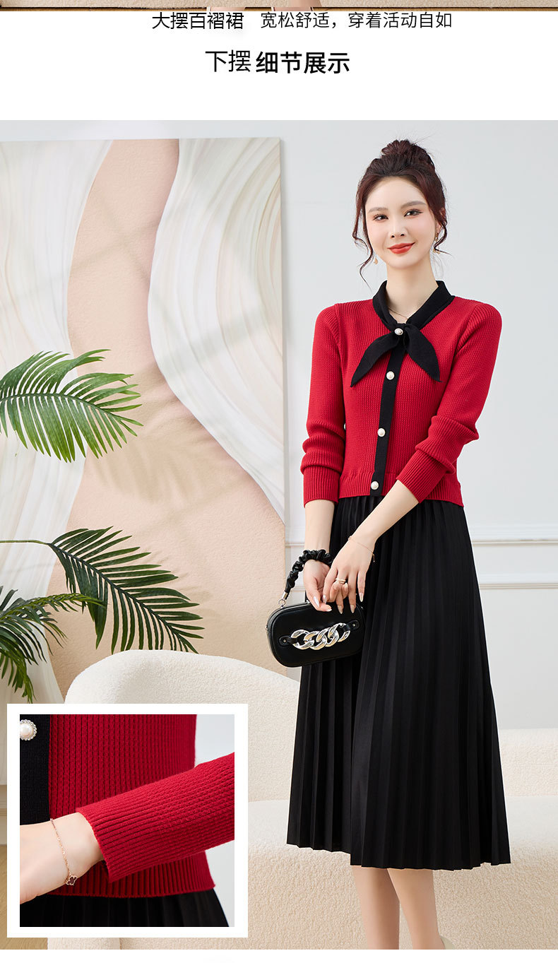 针织拼接假两件连衣裙