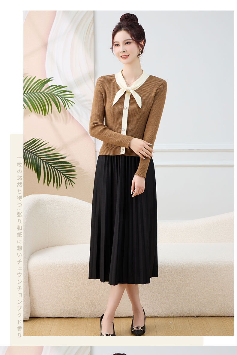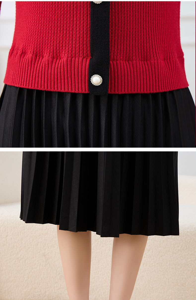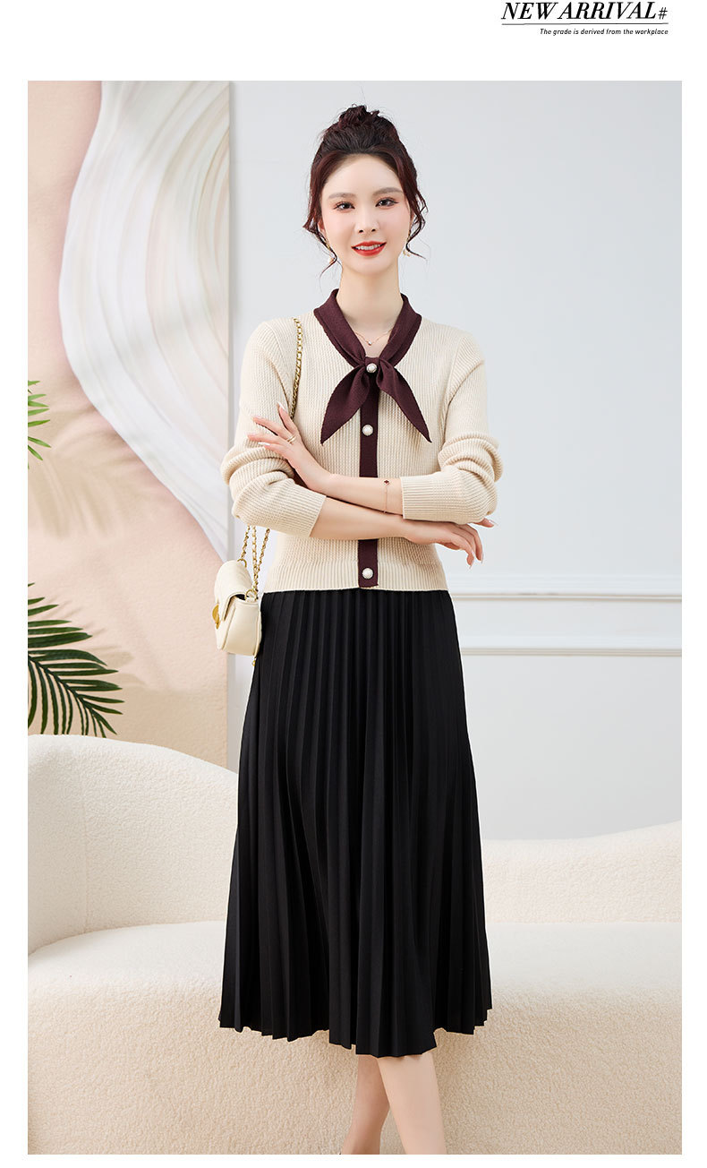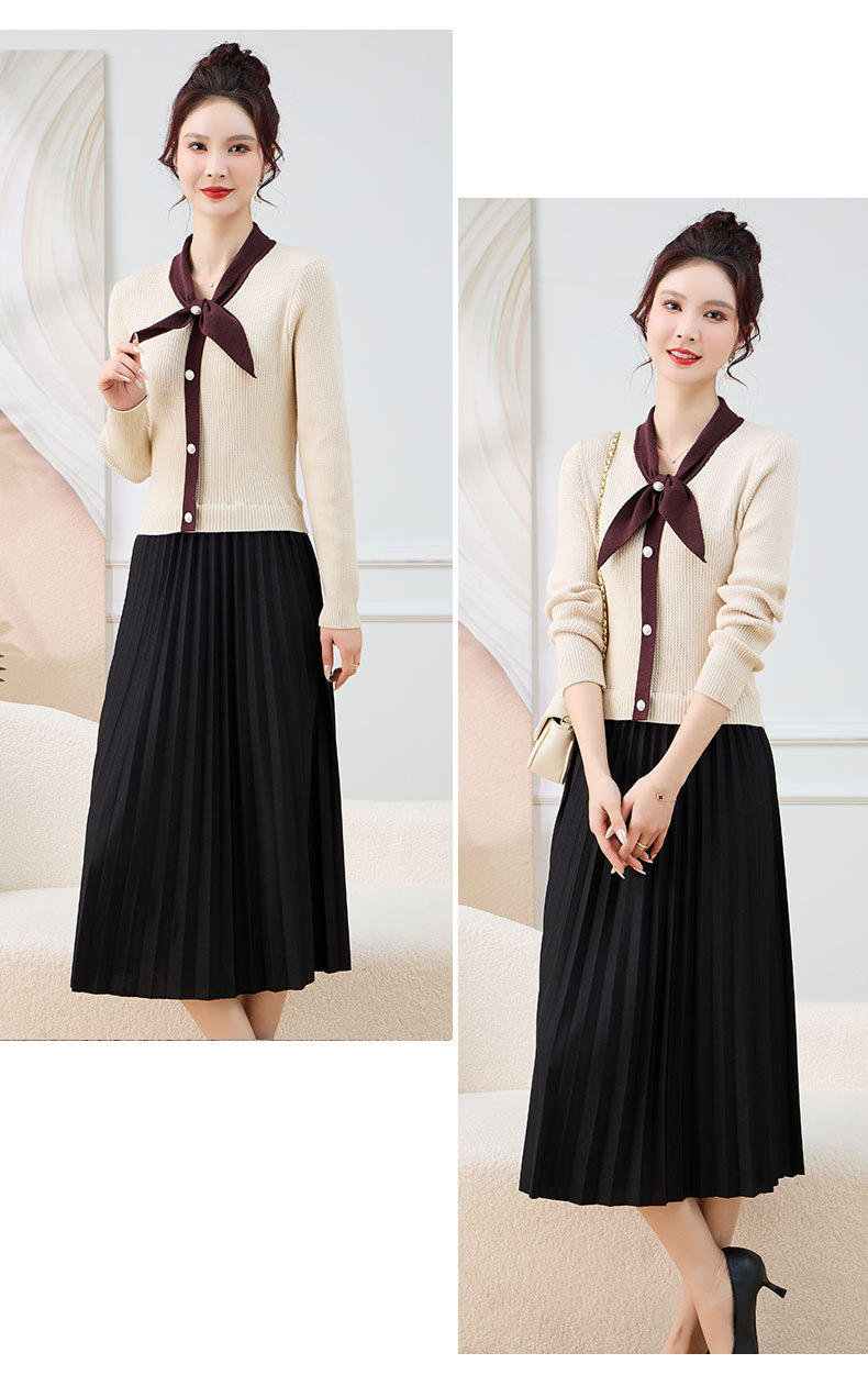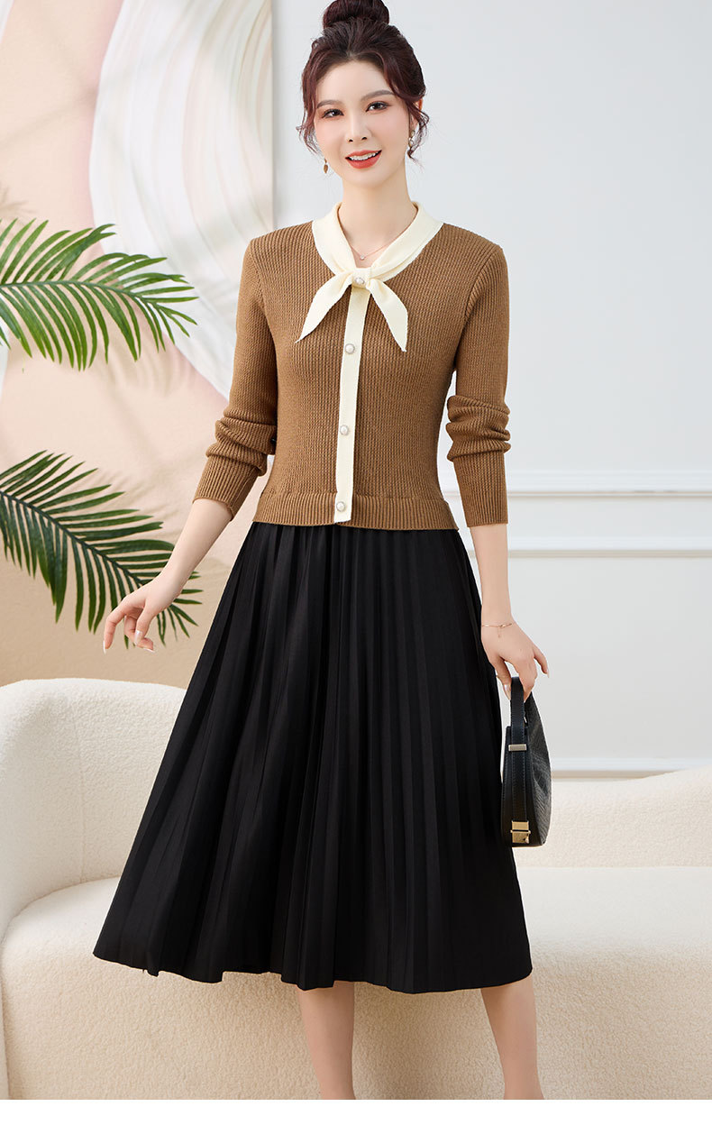 针织拼接假两件连衣裙